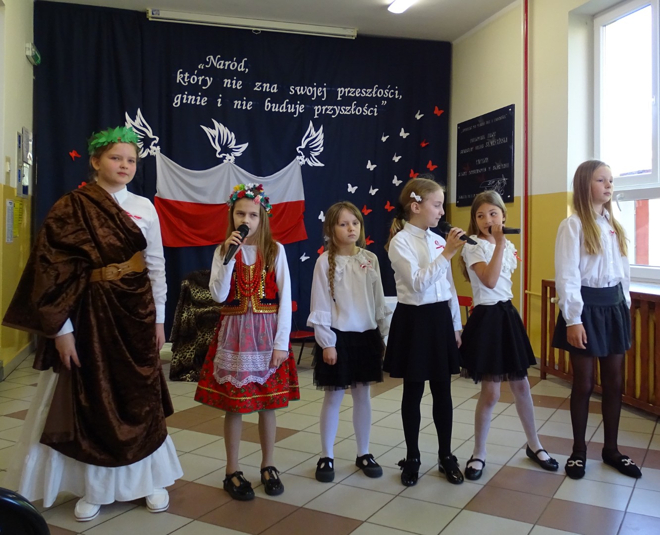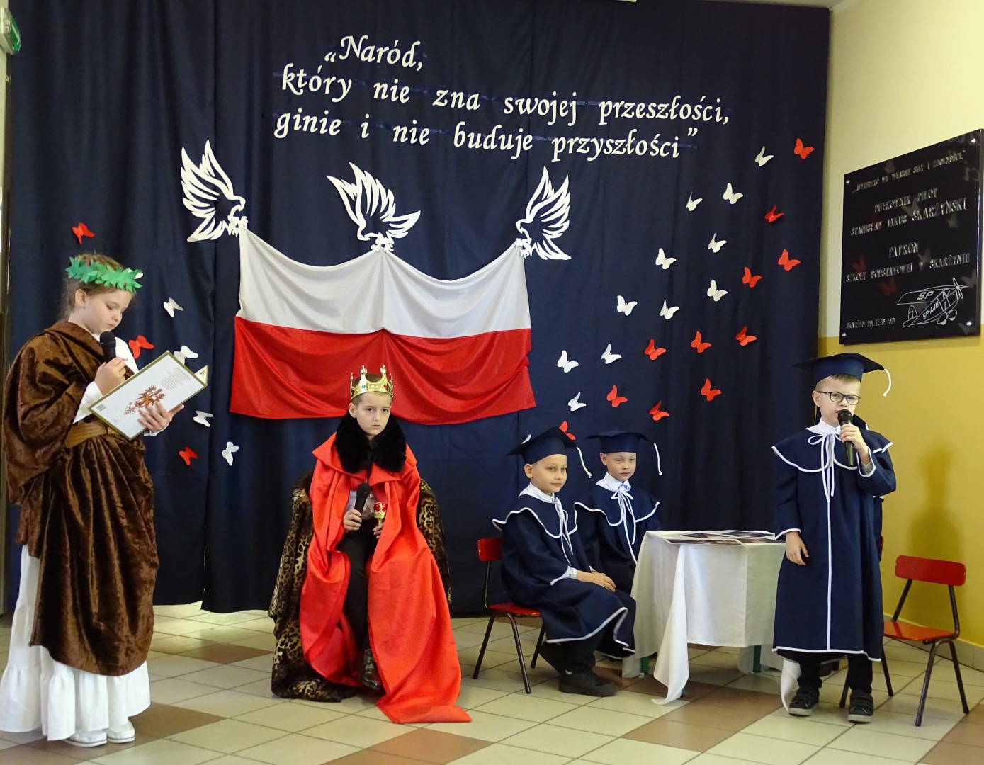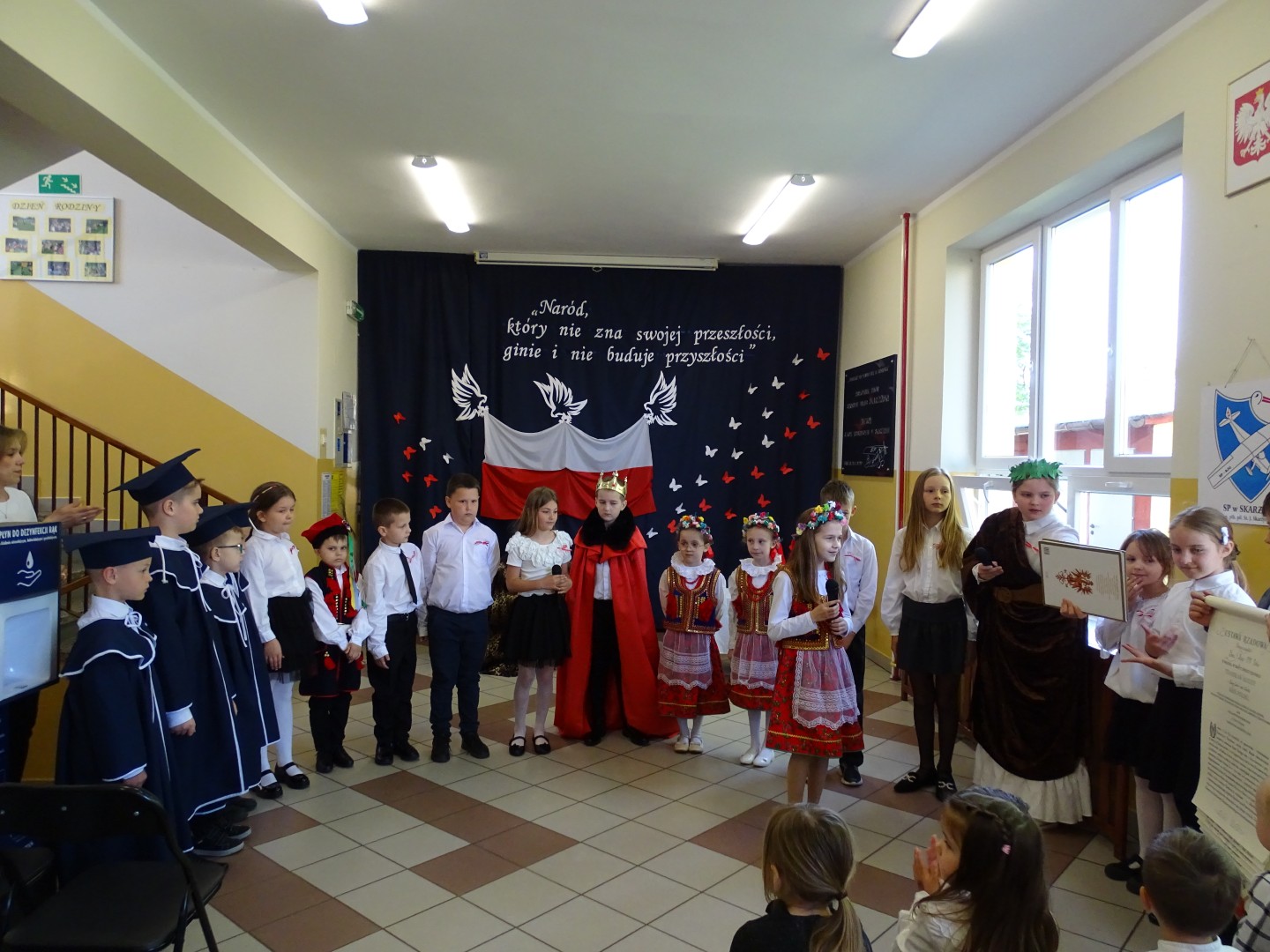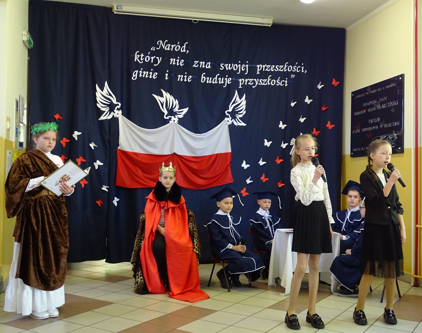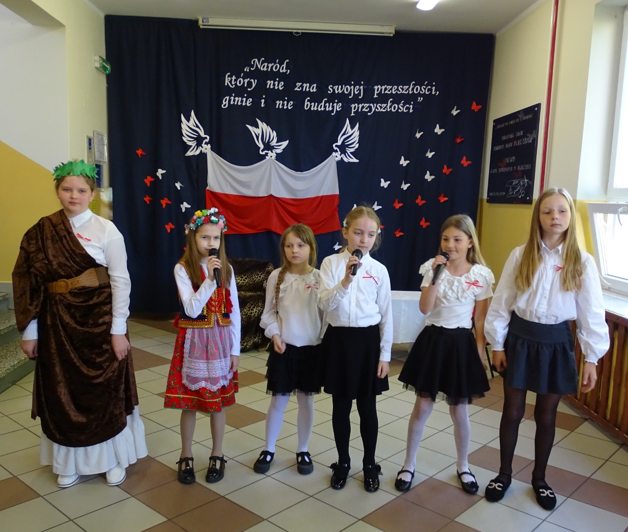 Podczas uroczystości uczniowie klas I – IV przenieśli zebranych do czasów panowania króla Stanisława Augusta Poniatowskiego i obrad Sejmu Wielkiego podczas którego uchwalono polską konstytucję. Młodzi artyści przypomnieli również polskie symbole narodowe, wyjaśnili czym jest patriotyzm, a także jak ważna jest dbałość o mowę ojczystą i tradycje. Najważniejsze informacje dotyczące tak ważnego wydarzenia dla naszej ojczyzny jakim było uchwalenie konstytucji przekazali w przystępny i atrakcyjny sposób szczególnie dla najmłodszych uczniów naszej szkoły. Akademia była okazją do refleksji i przypomnienia ważnych wydarzeń dotyczących naszego kraju, bo przecież naród, który nie zna swojej przeszłości, umiera i nie buduje przyszłości. Jest to także okazja do pielęgnowania naszych wartości narodowych i uzmysłowienia uczniom znaczenie takich słów jak: patriotyzm, wolność, naród, ojczyzna i tradycja.