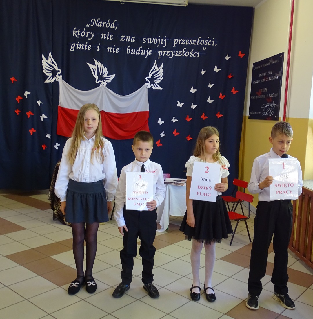30 kwietnia społeczność naszej szkoły uczciła rocznicę uchwalenia Konstytucji 3 Maja oraz Dzień Flagi Rzeczpospolitej Polskiej.