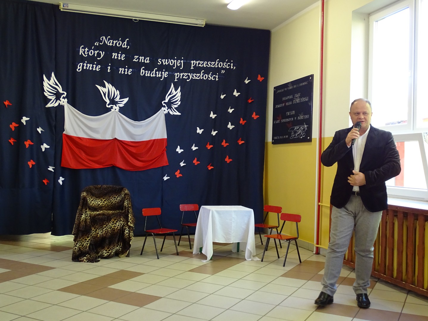 Po występie uczniów głos zabrał dyrektor szkoły p. Krzysztof Jesionek, który w swoim przemówieniu odniósł się do minionych wydarzeń.