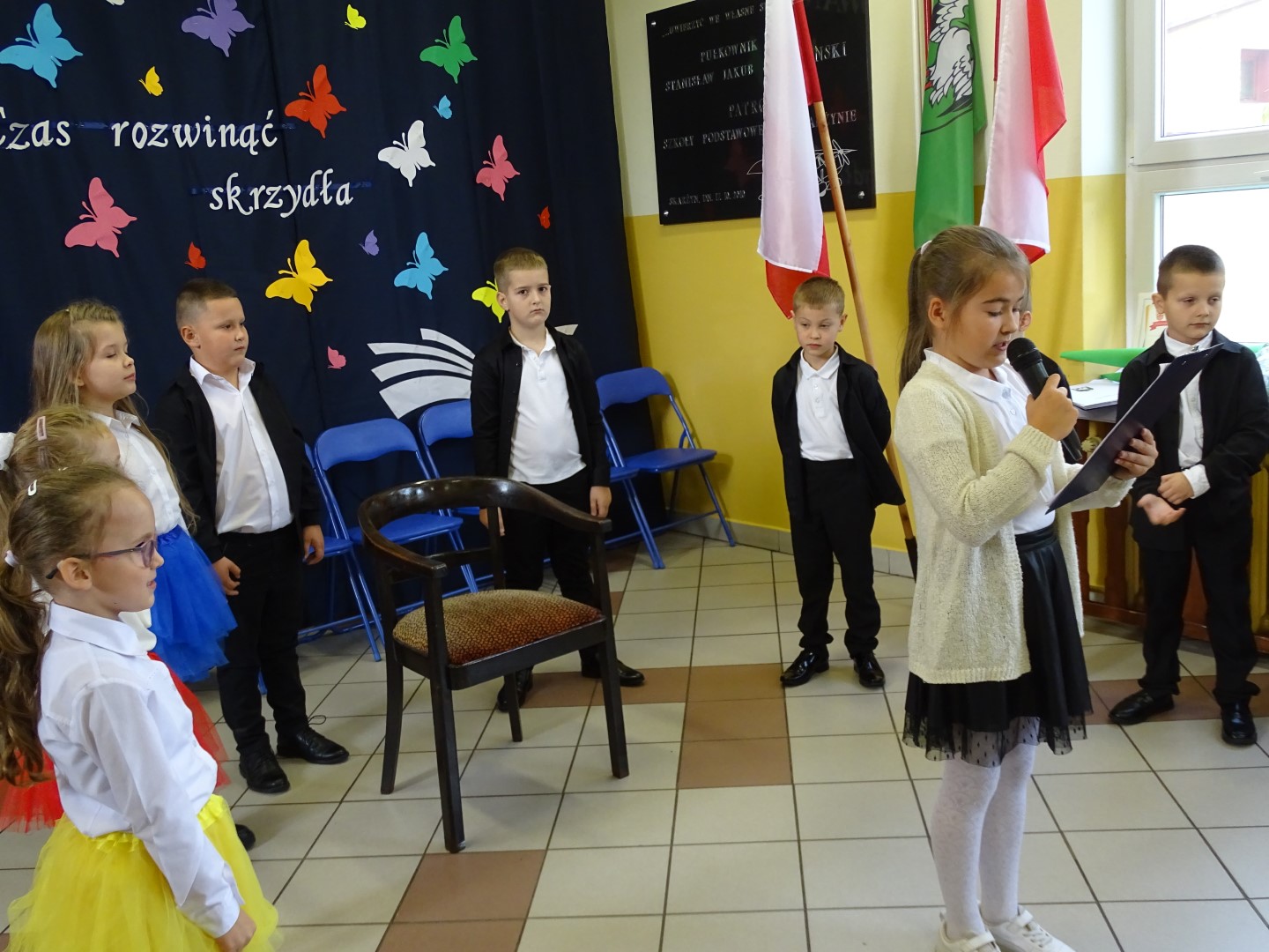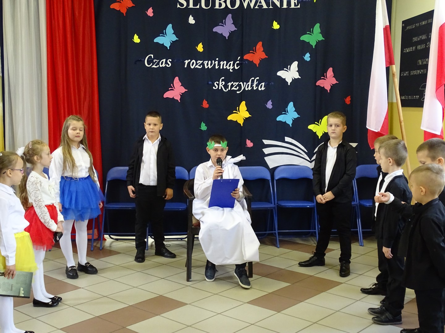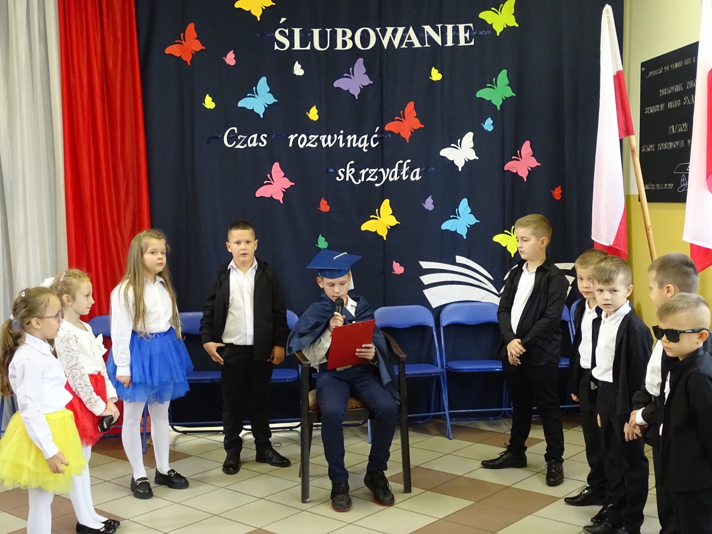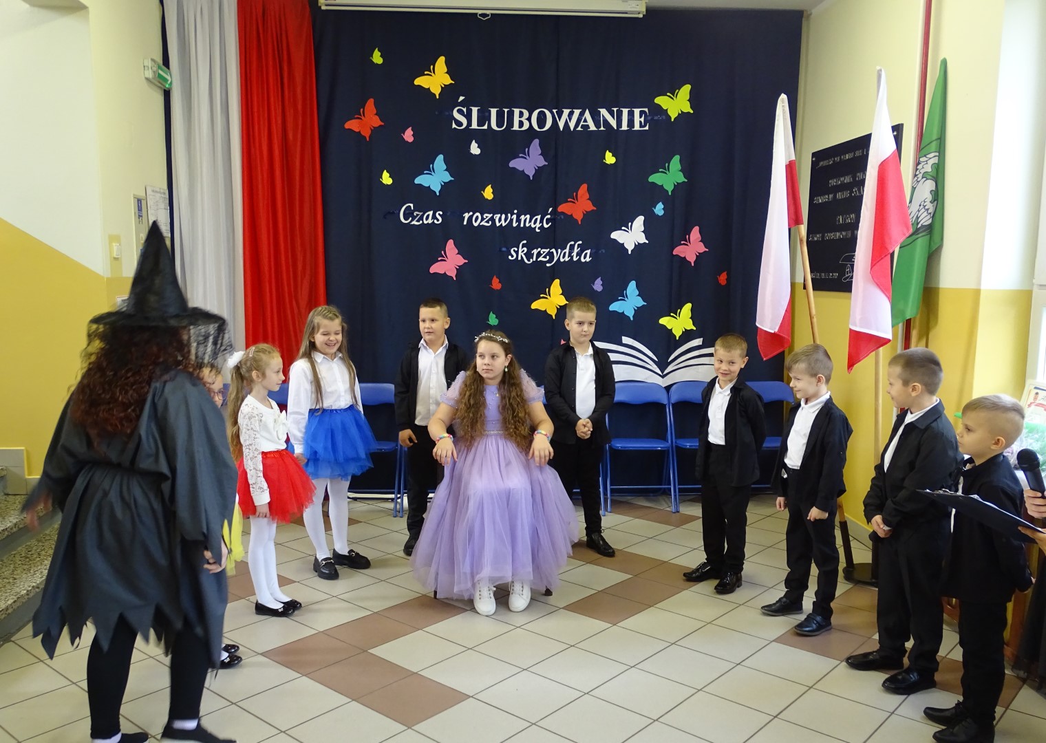 24 października 2024 r. w Szkole Podstawowej im. płk. pil. Stanisława Jakuba Skarżyńskiego w Skarżynie odbyło się uroczyste ślubowanie i pasowanie na ucznia klasy pierwszej. Tradycją naszej szkoły jest, że najmłodsi uczniowie w październiku przeżywają swoją pierwszą ważną uroczystość. Pierwszoklasiści odświętnie ubrani w obecności swoich najbliższych oraz zaproszonych gości rozpoczęli występ, w którym zaprezentowali swoje umiejętności recytatorskie, wokalne i taneczne. Po zakończeniu części artystycznej, w niezwykle podniosłej atmosferze, przed pocztem flagowym uczniowie ślubowali być dobrymi Polakami, godnie reprezentować swoją szkołę, swym zachowaniem i nauką sprawiać radość rodzicom i nauczycielom.