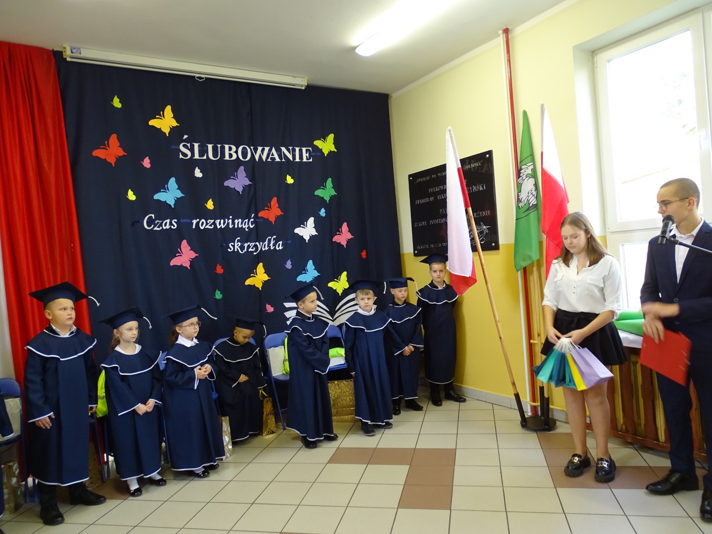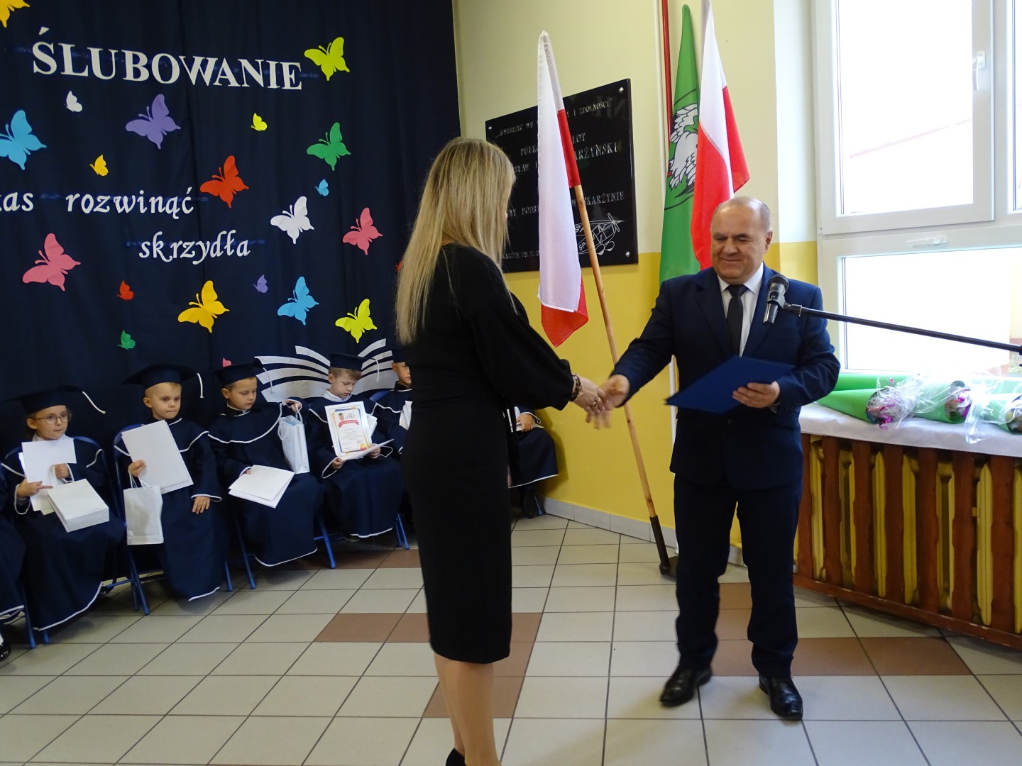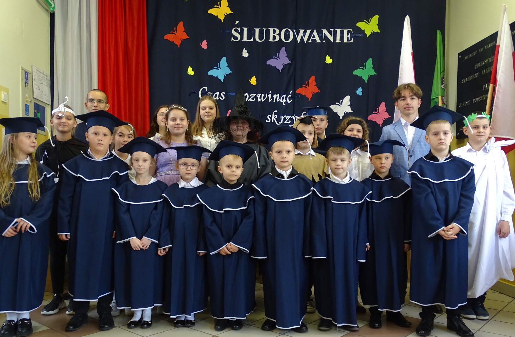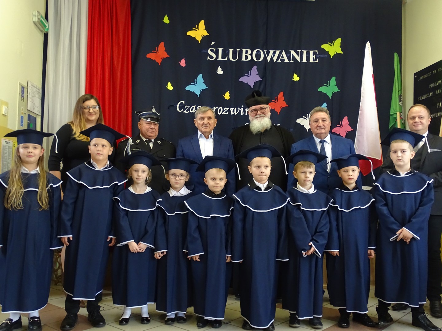 24 października 2024 r. w Szkole Podstawowej im. płk. pil. Stanisława Jakuba Skarżyńskiego w Skarżynie odbyło się uroczyste ślubowanie i pasowanie na ucznia klasy pierwszej. Tradycją naszej szkoły jest, że najmłodsi uczniowie w październiku przeżywają swoją pierwszą ważną uroczystość. Pierwszoklasiści odświętnie ubrani w obecności swoich najbliższych oraz zaproszonych gości rozpoczęli występ, w którym zaprezentowali swoje umiejętności recytatorskie, wokalne i taneczne. Po zakończeniu części artystycznej, w niezwykle podniosłej atmosferze, przed pocztem flagowym uczniowie ślubowali być dobrymi Polakami, godnie reprezentować swoją szkołę, swym zachowaniem i nauką sprawiać radość rodzicom i nauczycielom.