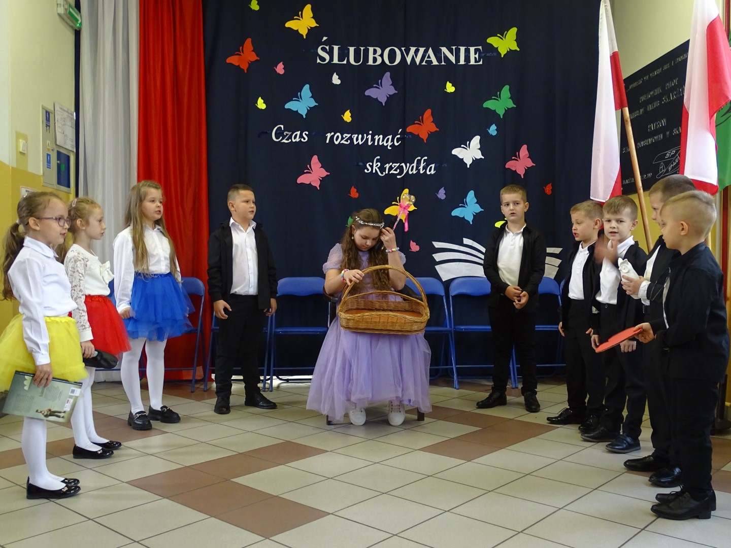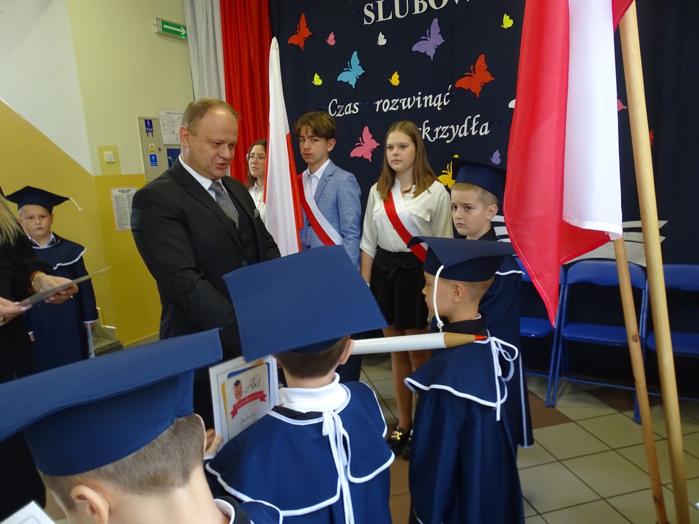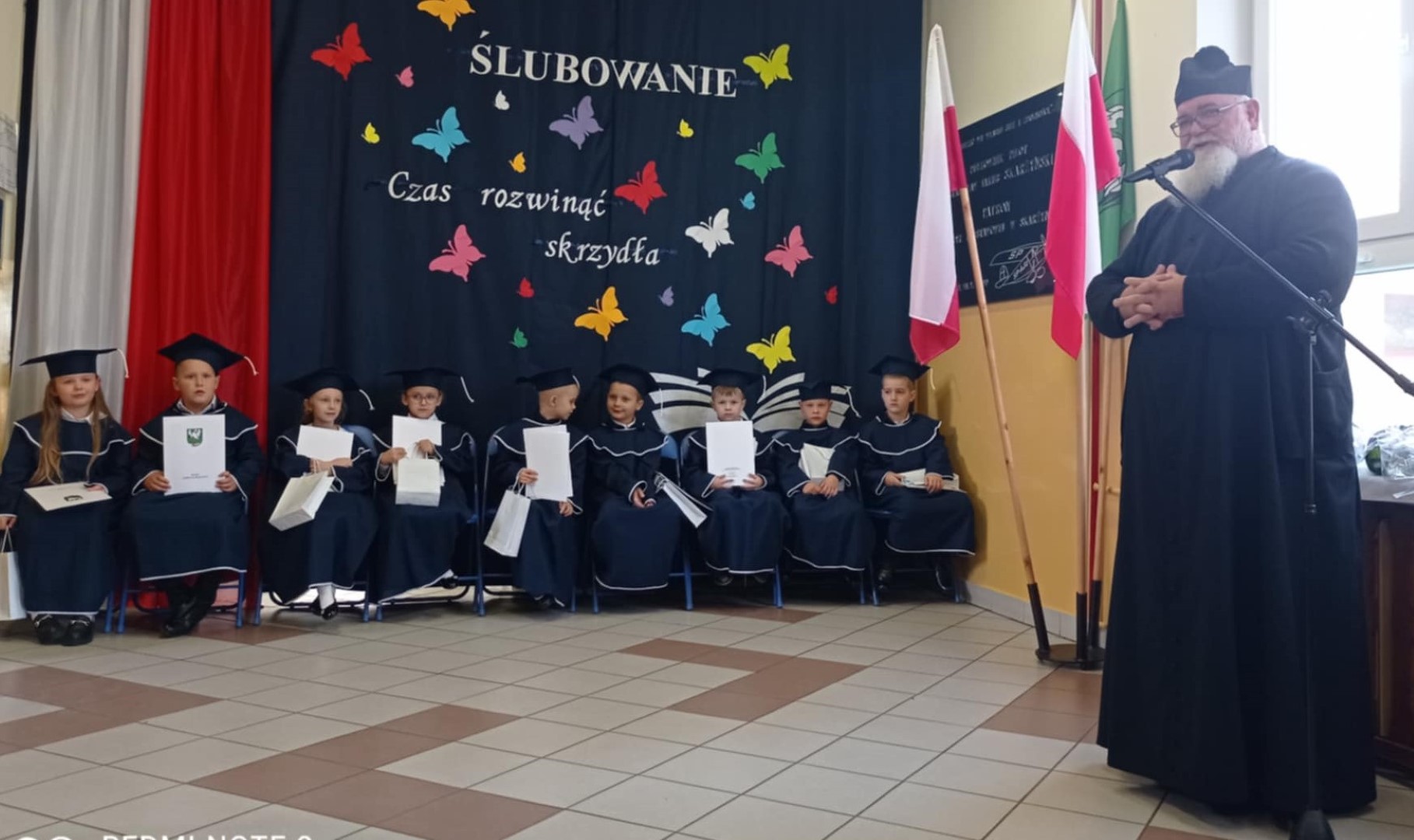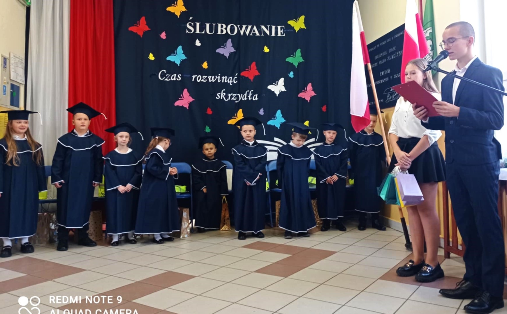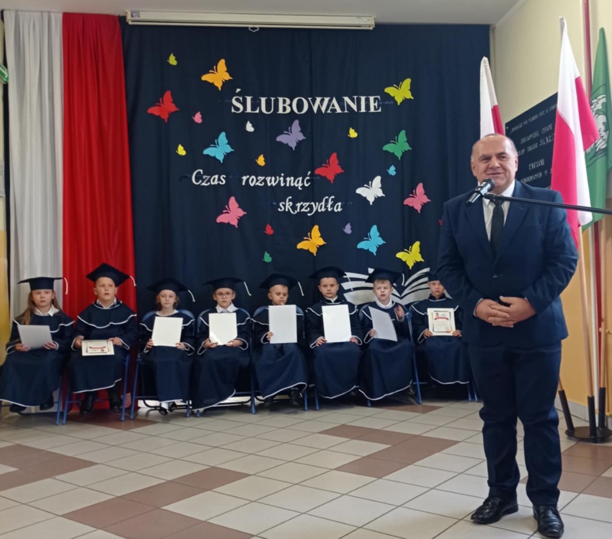 24 października 2024 r. w Szkole Podstawowej im. płk. pil. Stanisława Jakuba Skarżyńskiego w Skarżynie odbyło się uroczyste ślubowanie i pasowanie na ucznia klasy pierwszej. Tradycją naszej szkoły jest, że najmłodsi uczniowie w październiku przeżywają swoją pierwszą ważną uroczystość. Pierwszoklasiści odświętnie ubrani w obecności swoich najbliższych oraz zaproszonych gości rozpoczęli występ, w którym zaprezentowali swoje umiejętności recytatorskie, wokalne i taneczne. Po zakończeniu części artystycznej, w niezwykle podniosłej atmosferze, przed pocztem flagowym uczniowie ślubowali być dobrymi Polakami, godnie reprezentować swoją szkołę, swym zachowaniem i nauką sprawiać radość rodzicom i nauczycielom.