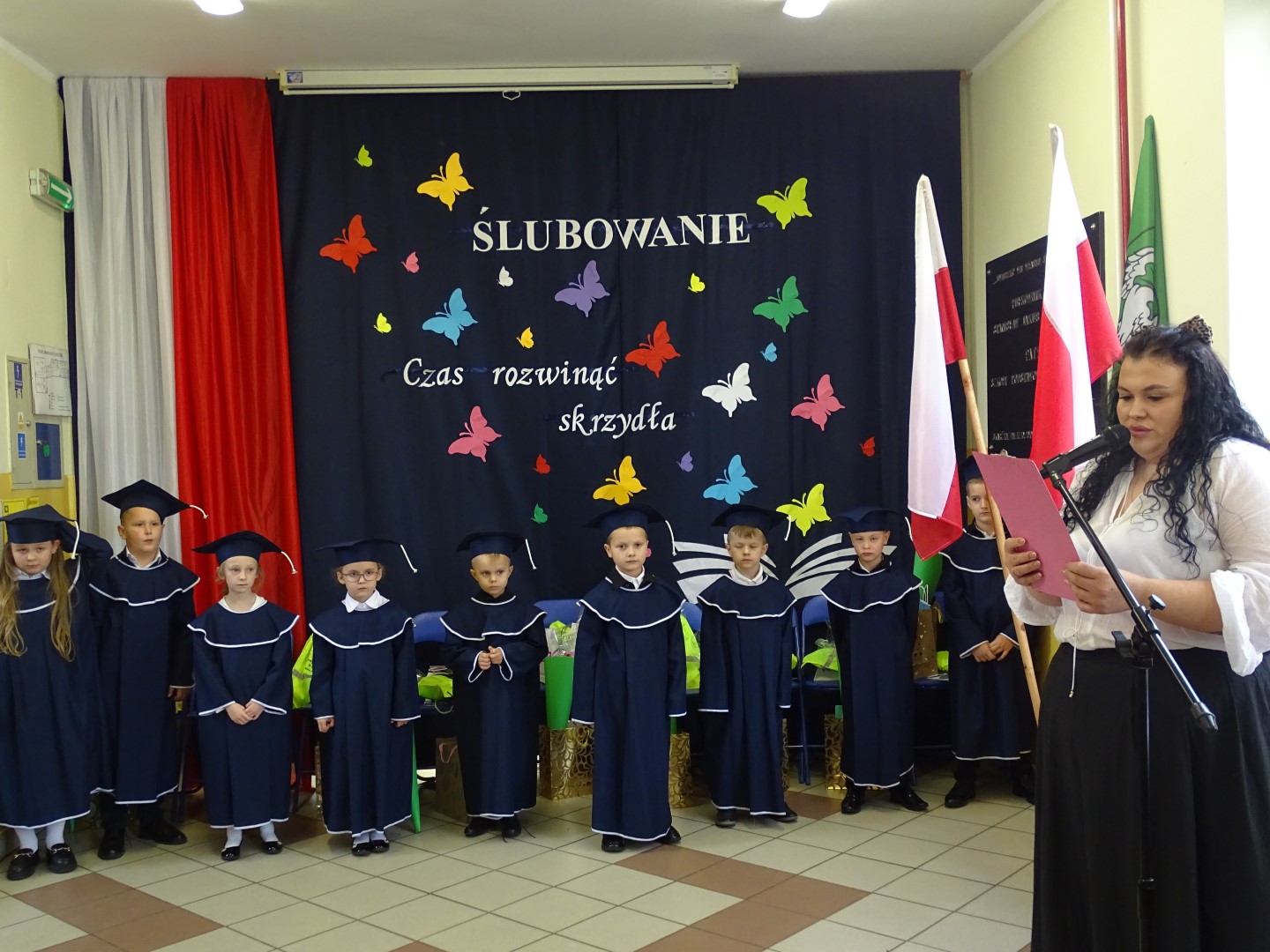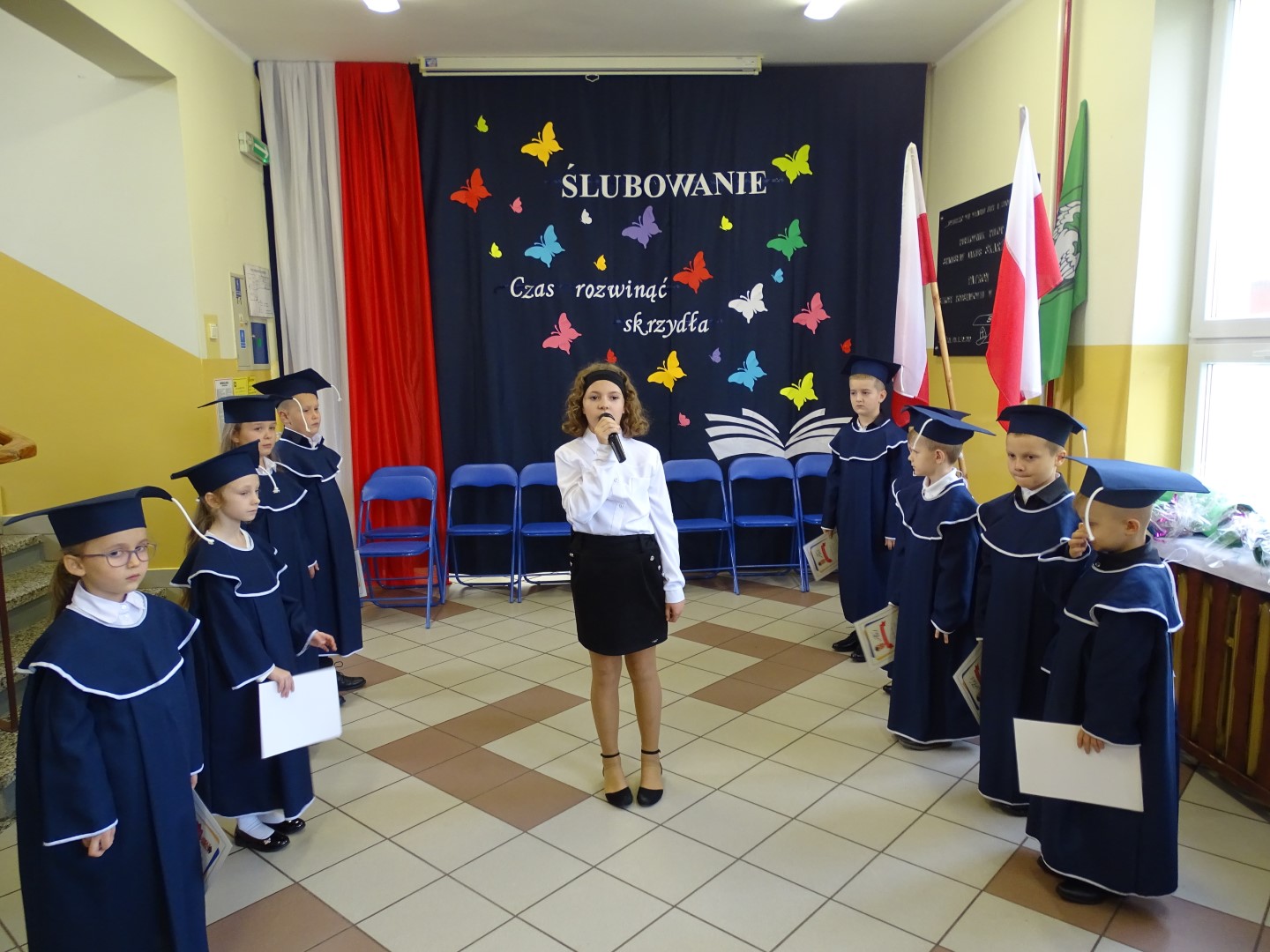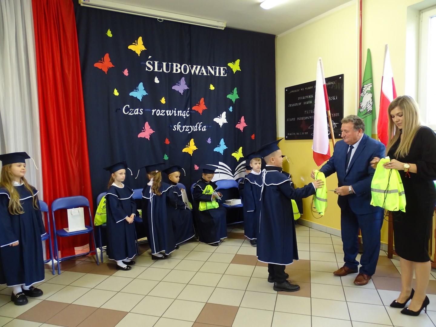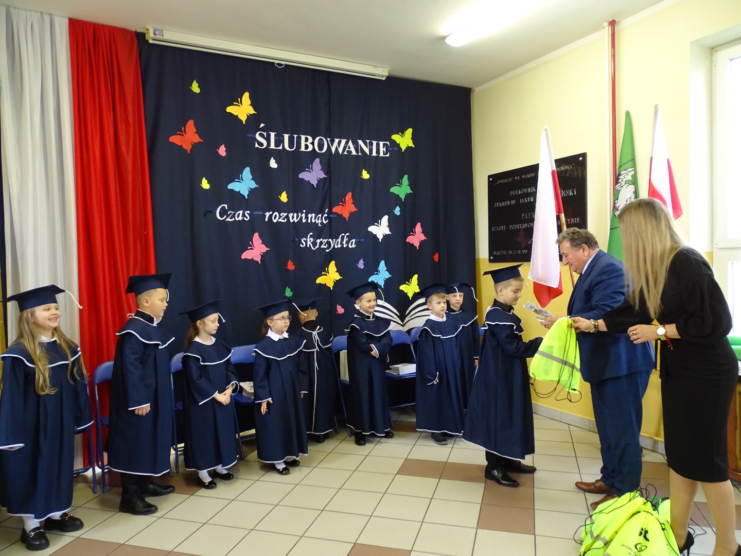 24 października 2024 r. w Szkole Podstawowej im. płk. pil. Stanisława Jakuba Skarżyńskiego w Skarżynie odbyło się uroczyste ślubowanie i pasowanie na ucznia klasy pierwszej. Tradycją naszej szkoły jest, że najmłodsi uczniowie w październiku przeżywają swoją pierwszą ważną uroczystość. Pierwszoklasiści odświętnie ubrani w obecności swoich najbliższych oraz zaproszonych gości rozpoczęli występ, w którym zaprezentowali swoje umiejętności recytatorskie, wokalne i taneczne. Po zakończeniu części artystycznej, w niezwykle podniosłej atmosferze, przed pocztem flagowym uczniowie ślubowali być dobrymi Polakami, godnie reprezentować swoją szkołę, swym zachowaniem i nauką sprawiać radość rodzicom i nauczycielom.