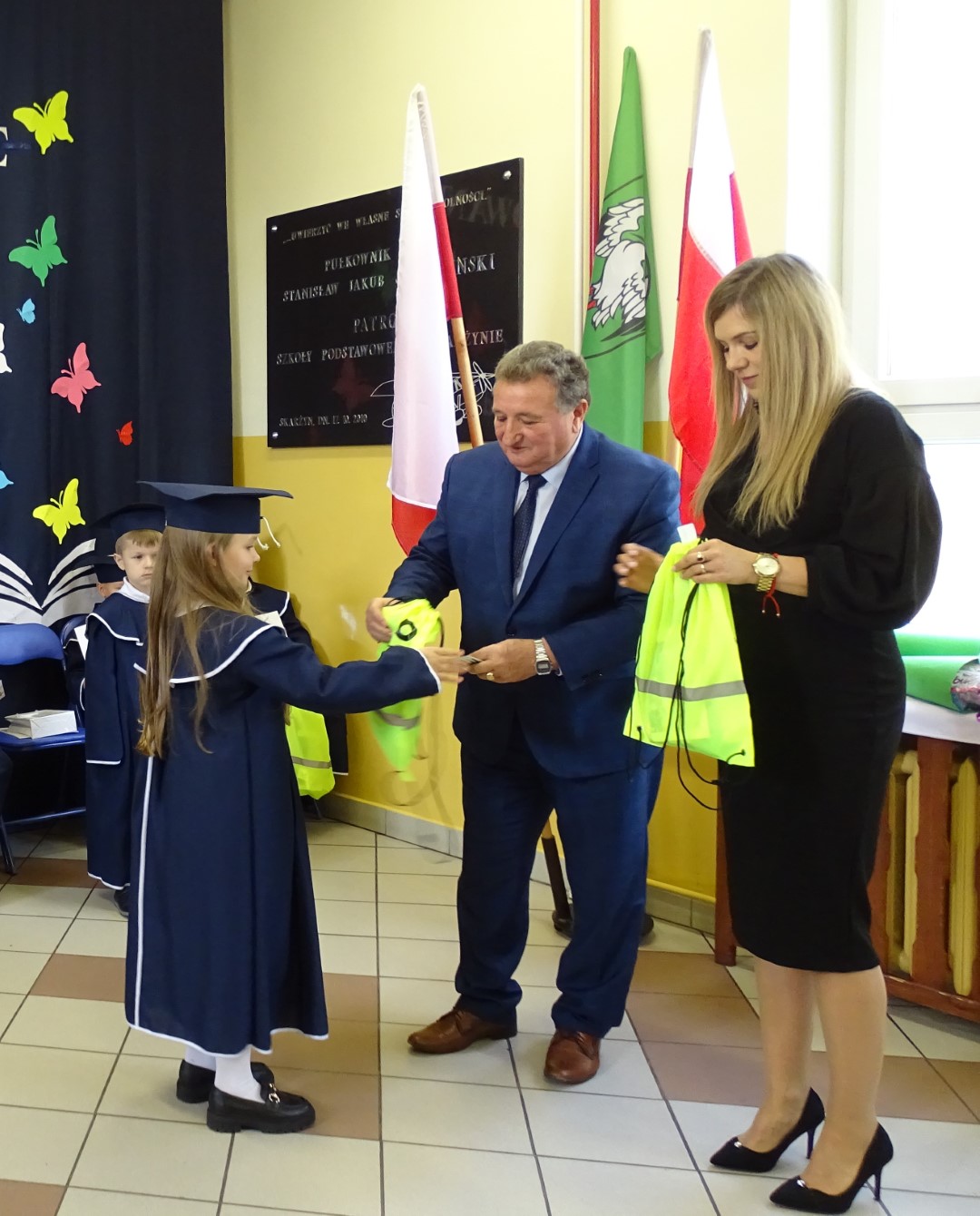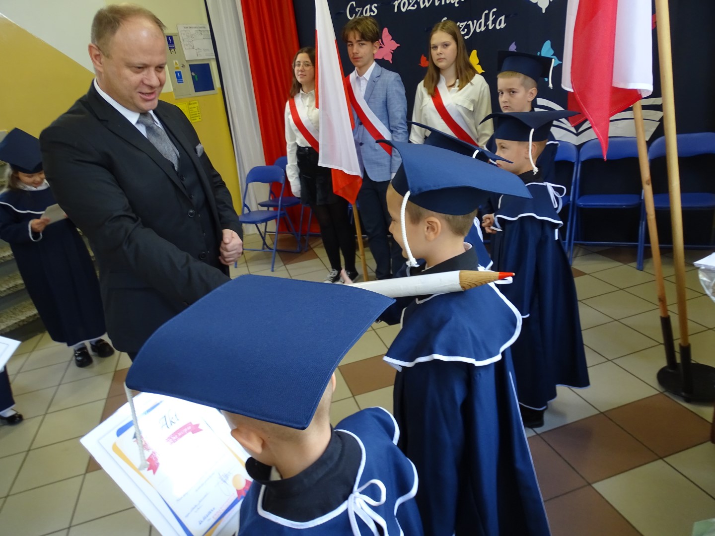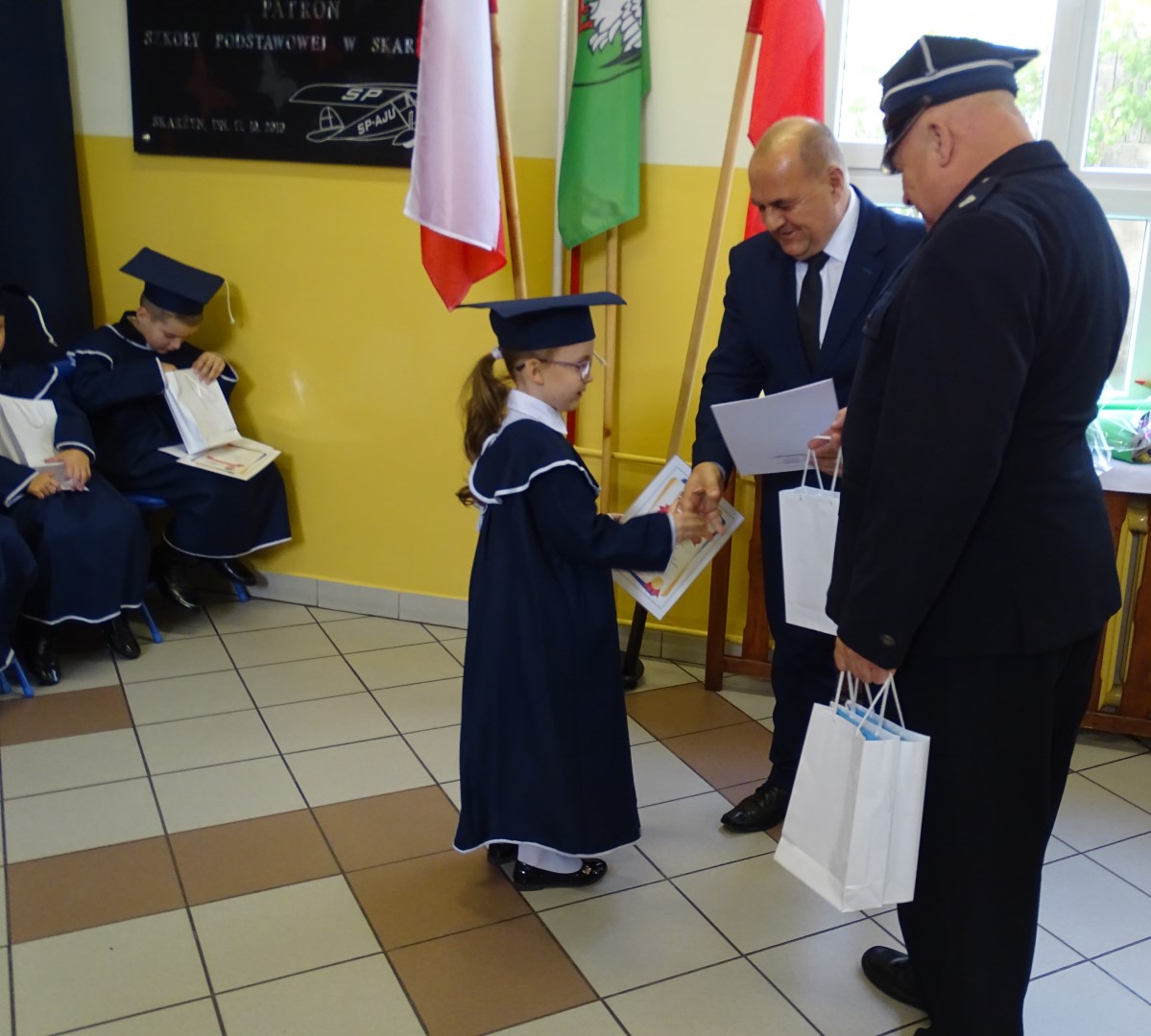 Po złożeniu ślubowania Dyrektor Szkoły Pan Krzysztof Jesionek dokonał symbolicznego pasowania na ucznia Szkoły Podstawowej im. płk. pil. St. J. Skarżyńskiego w Skarżynie. Wielkim ołówkiem, jak czarodziejską różdżką dotykał ramion swoich podopiecznych. Nie obyło się też bez upominków od starszych kolegów i koleżanek, rodziców oraz zaproszonych gości. Uroczystość uświetnili swoją obecnością: Pan Jan Gruca - Wójt Gminy Kawęczyn, Pani Marzena Barcka Radna Gminy Kawęczyn, Pan Karol Rygas - Prezesa OSP w Skarżynie oraz Radny Gminy Kawęczyn, ks. Piotr Bamberski - Proboszcz Parafii Św. Katarzyny w Przespolewie, Pan Edward Tobijas - Sołtys Sołectwa Skarżyn, Pan Jan Tygielski - Prezes Rejonowego Banku Spółdzielczego w Malanowie, oraz Pani Róża Froncala - Przewodnicząca Rady Rodziców. Na zakończenie uczniowie wraz z rodzicami udali się na słodki poczęstunek. Wszystkim pierwszoklasistom życzymy, aby ten dzień pozostał w ich pamięci jako wielkie przeżycie i niezapomniana, radosna chwila.