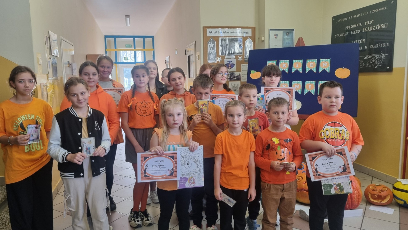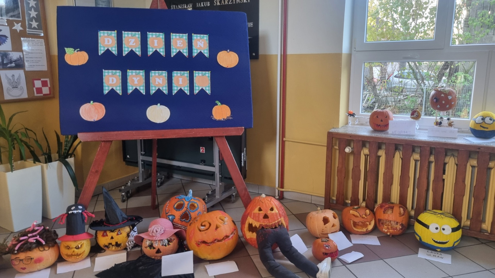31.10.2025r. w Szkole Podstawowej im. płk. pil. St. J. Skarżyńskiego odbył się już tradycyjnie Dzień Dyni. W tym dniu jak co roku dzieci przyszły do szkoły ubrane na pomarańczowo. Na lekcjach języka angielskiego dzieci poznały zwyczaje związane z Halloween. Przeprowadzono gry i zabawy z jabłkiem, mumia, kolorowe potwory i halloweenowe quizy. Odbył się również konkurs na najładniejszą dynię, który cieszył się dużym zainteresowaniem. W konkursie wzięło udział 20 uczniów z klas od 1 do 8. W tym roku uczniowie i nauczyciele głosując na najlepszą dynię wyłonili zwycięzców w dwóch kategoriach. W klasach 1-3: I miejsce zdobył Franciszek Olek z klasy 1, II miejsce zdobyła Laura Ulman z klasy 2 i III miejsce zdobył Tymon Śniegocki z klasy 3. W kategorii klas 4-8 I miejsce zdobyła Aniela Jasiak z klasy 5, II miejsce Weronika Barcka z klasy 5 i III miejsce Zofia Waliś również z klasy 5. Wszystkie dynie zasłużyły na wyróżnienie, wszyscy uczestnicy konkursu wykazali się dużą kreatywnością i pomysłowością. Świętując Dzień Dyni dzieci zapoznały się z kulturą krajów anglojęzycznych.