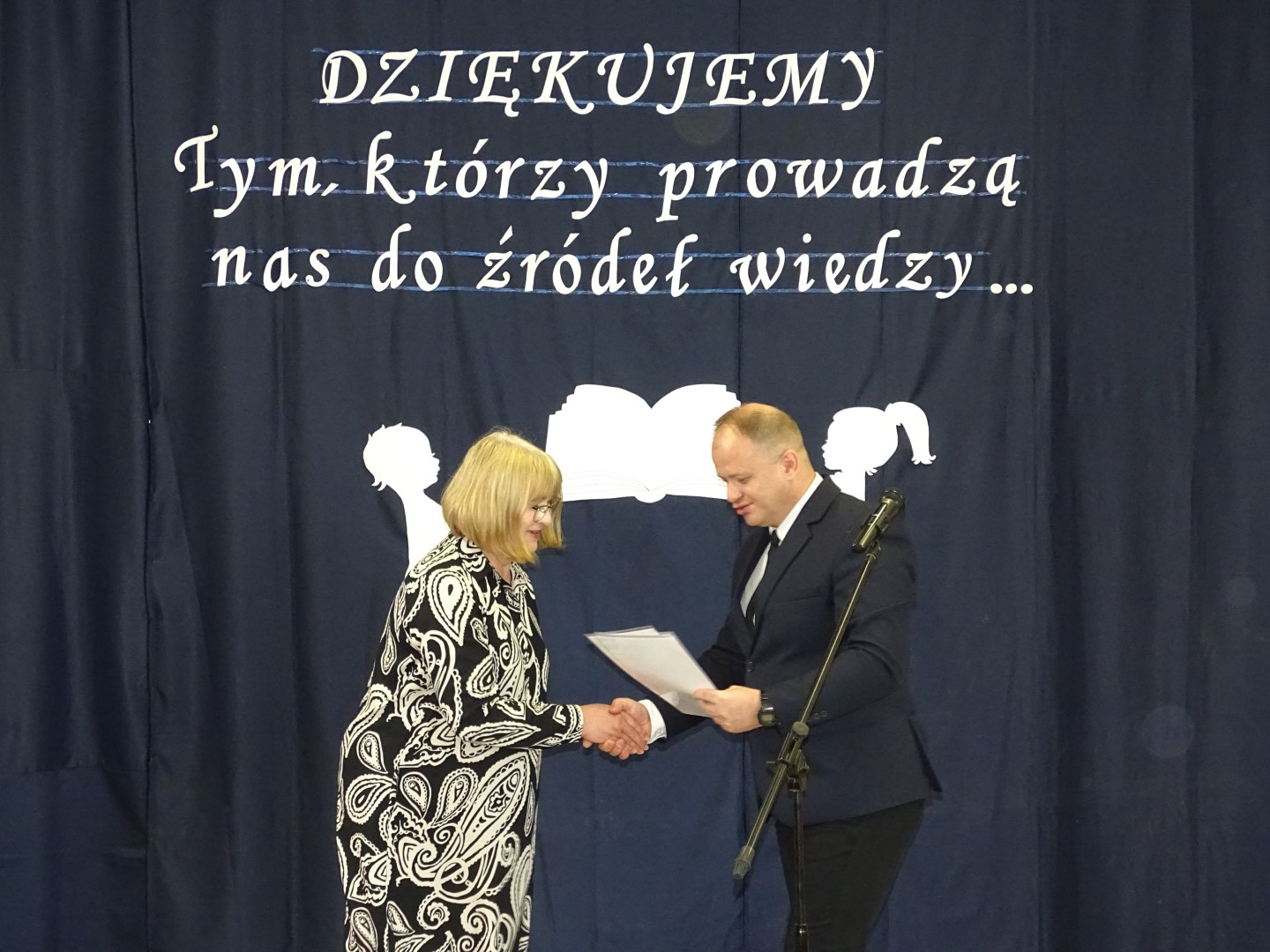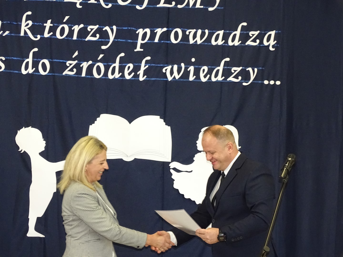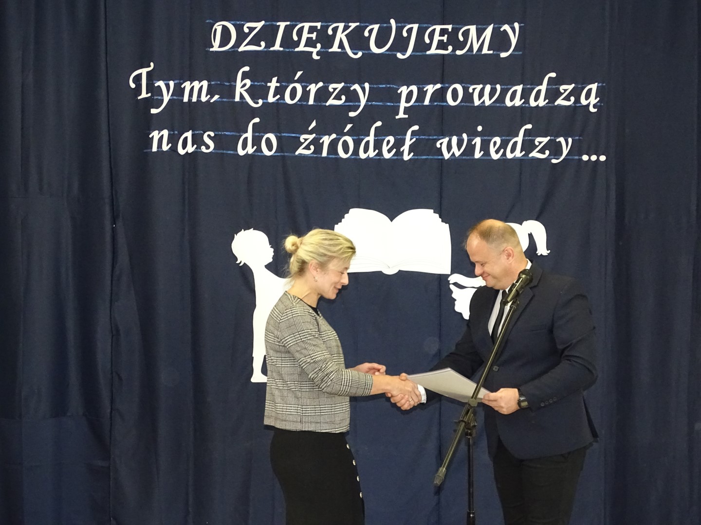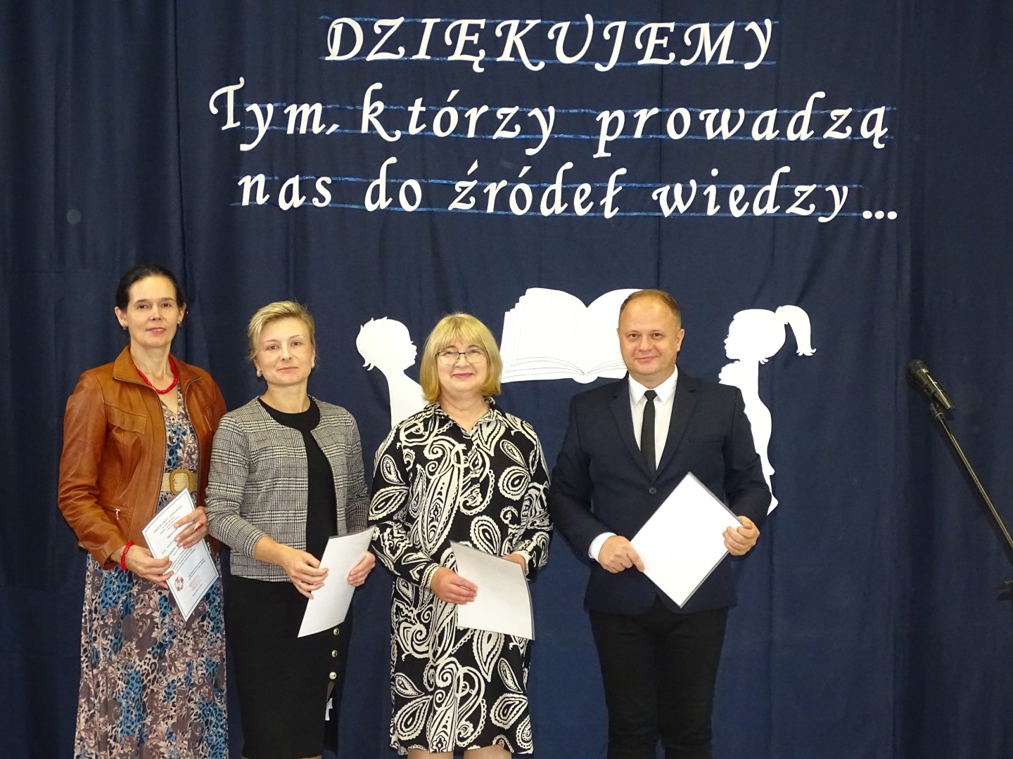 „Dziękujemy Tym, którzy prowadzą nas do źródeł wiedzy.” Pod takim hasłem przebiegała uroczystość Dnia Edukacji Narodowej, która odbyła się dnia 13 października 2023r. w Szkole Podstawowej im. płk. pil. St. J. Skarżyńskiego w Skarżynie. W tym roku obchodziliśmy 250 rocznicę utworzenia Komisji Edukacji Narodowej o czym przypomnieli przedstawiciele Samorządu Uczniowskiego i Dyrektor Szkoły w swoim przemówieniu. Po przywitaniu wszystkich przybyłych na uroczystość uczniowie prowadzący przedstawili w sposób żartobliwy malownicze sylwetki naszych kochanych pedagogów, bez których szkoła straciłaby bardzo wiele na swej atrakcyjności. Po przedstawieniu wszystkich typów nauczycieli przyszedł czas na uczniów, których trafnie scharakteryzował wiersz Wiktora Woroszylskiego pt. "My i nasza Pani". A skoro święto to nie mogło zabraknąć życzeń. Wygłosili je uczniowie w wierszu pt. Kwiaty dla nauczycieli” i piosence pt. „ Wyśpiewać dziś chcemy wam życzenia”. Na koniec Samorząd Uczniowski wręczył bukiety kwiatów wszystkim nauczycielom i pracownikom szkoły. Po części artystycznej Dyrektor Szkoły przypomniał założenia Komisji Edukacji Narodowej, podziękował nauczycielom i pracownikom szkoły za ich pracę i trud wkładany w proces edukacji młodego pokolenia. Jako wyraz uznania wręczył nagrody dyrektora nauczycielom i pracownikom szkoły, którzy w ubiegłym roku szkolnym wyróżnili się swoimi osiągnięciami. Na koniec głos zabrała Przewodnicząca Rady Rodziców pani Róża Froncala, która na ręce Pana Dyrektora złożyła kwiaty i życzenia dla wszystkich nauczycieli i pracowników szkoły. Na tym uroczystość się zakończyła a dalsza część dnia przebiegała w miłej i świątecznej atmosferze.