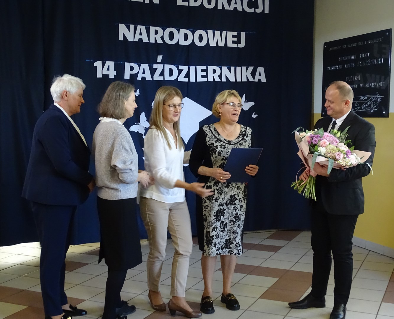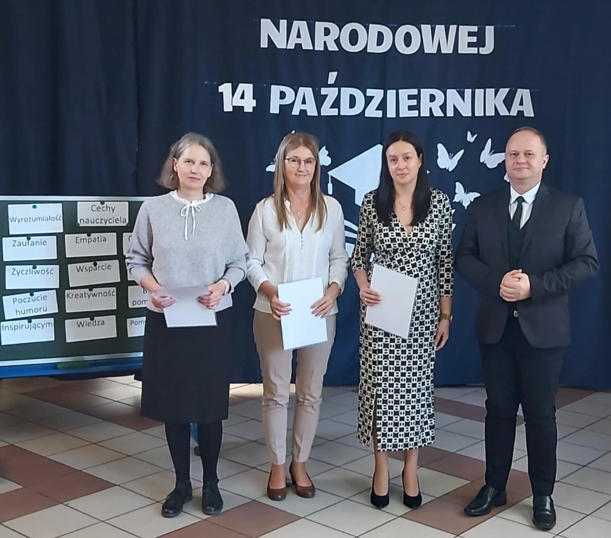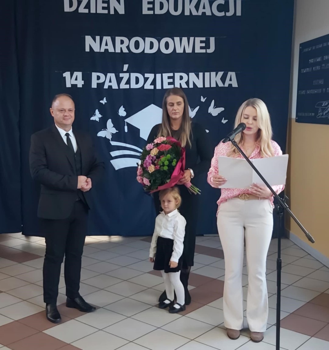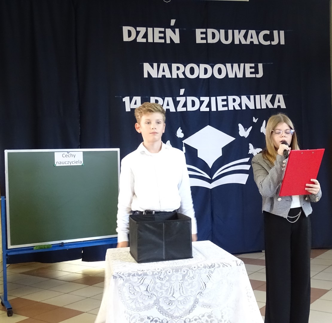 W dniu 11 października odbył się apel z okazji Dnia Edukacji Narodowej. Uczniowie naszej szkoły w części artystycznej przedstawili scenki z życia szkoły, nawiązali do historii powstania święta a także przedstawili jak święto to wygląda w innych krajach. W końcowej części przedstawienia odbył się quiz sprawdzający wiedzę zgromadzonej publiczności. Po części artystycznej Pan Krzysztof Jesionek - Dyrektor szkoły zabrał głos, dziękując uczniom za przygotowanie apelu. Następnie wręczył nagrody nauczycielom wyróżniającym się w minionym roku szkolnym w pracy dydaktyczno-wychowawczej oraz pracownikom obsługi. Na koniec uroczystości Dyrektor szkoły w imieniu całej społeczności szkolnej złożył podziękowania Pani Elżbiecie Piestrzyńskiej – długoletniej pracownicy obsługi, która w końcu października br. odchodzi na zasłużoną emeryturę. Podziękowania dla Pani Elżbiety złożyli również przedstawiciele Samorządu Uczniowskiego oraz Rada Rodziców naszej szkoły.