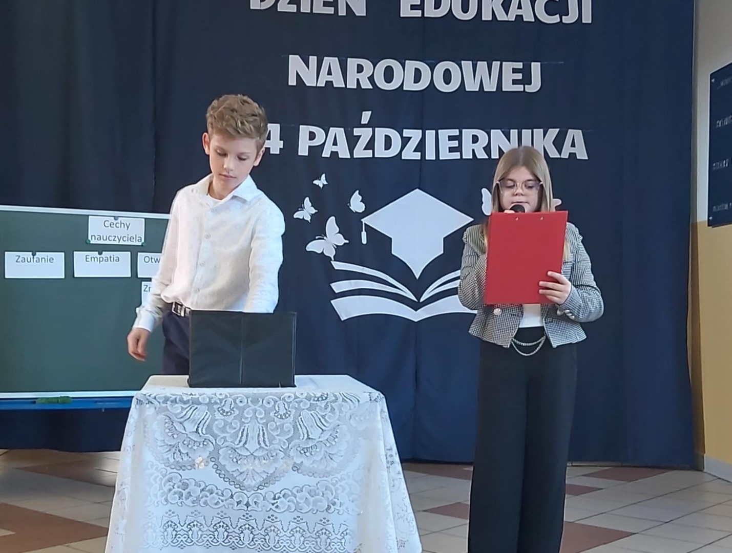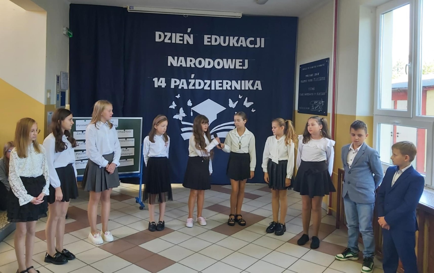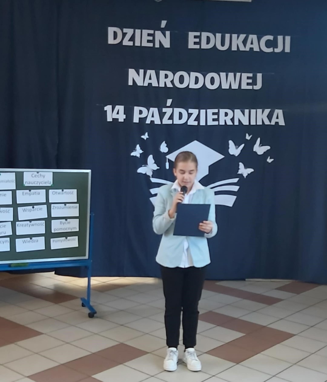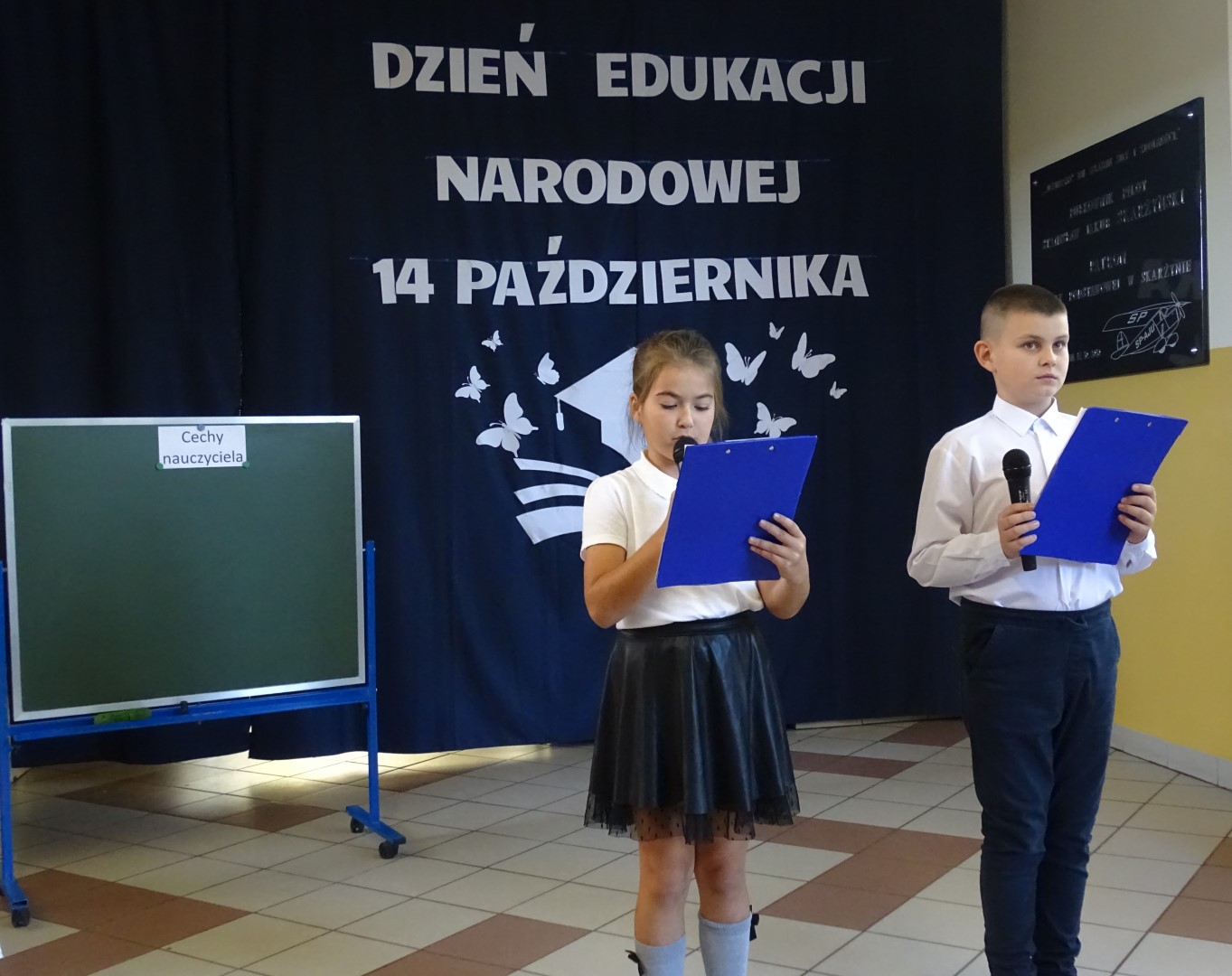 W dniu 11 października odbył się apel z okazji Dnia Edukacji Narodowej. Uczniowie naszej szkoły w części artystycznej przedstawili scenki z życia szkoły, nawiązali do historii powstania święta a także przedstawili jak święto to wygląda w innych krajach. W końcowej części przedstawienia odbył się quiz sprawdzający wiedzę zgromadzonej publiczności. Po części artystycznej Pan Krzysztof Jesionek - Dyrektor szkoły zabrał głos, dziękując uczniom za przygotowanie apelu. Następnie wręczył nagrody nauczycielom wyróżniającym się w minionym roku szkolnym w pracy dydaktyczno-wychowawczej oraz pracownikom obsługi. Na koniec uroczystości Dyrektor szkoły w imieniu całej społeczności szkolnej złożył podziękowania Pani Elżbiecie Piestrzyńskiej – długoletniej pracownicy obsługi, która w końcu października br. odchodzi na zasłużoną emeryturę. Podziękowania dla Pani Elżbiety złożyli również przedstawiciele Samorządu Uczniowskiego oraz Rada Rodziców naszej szkoły.