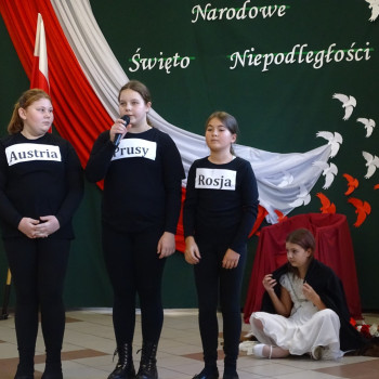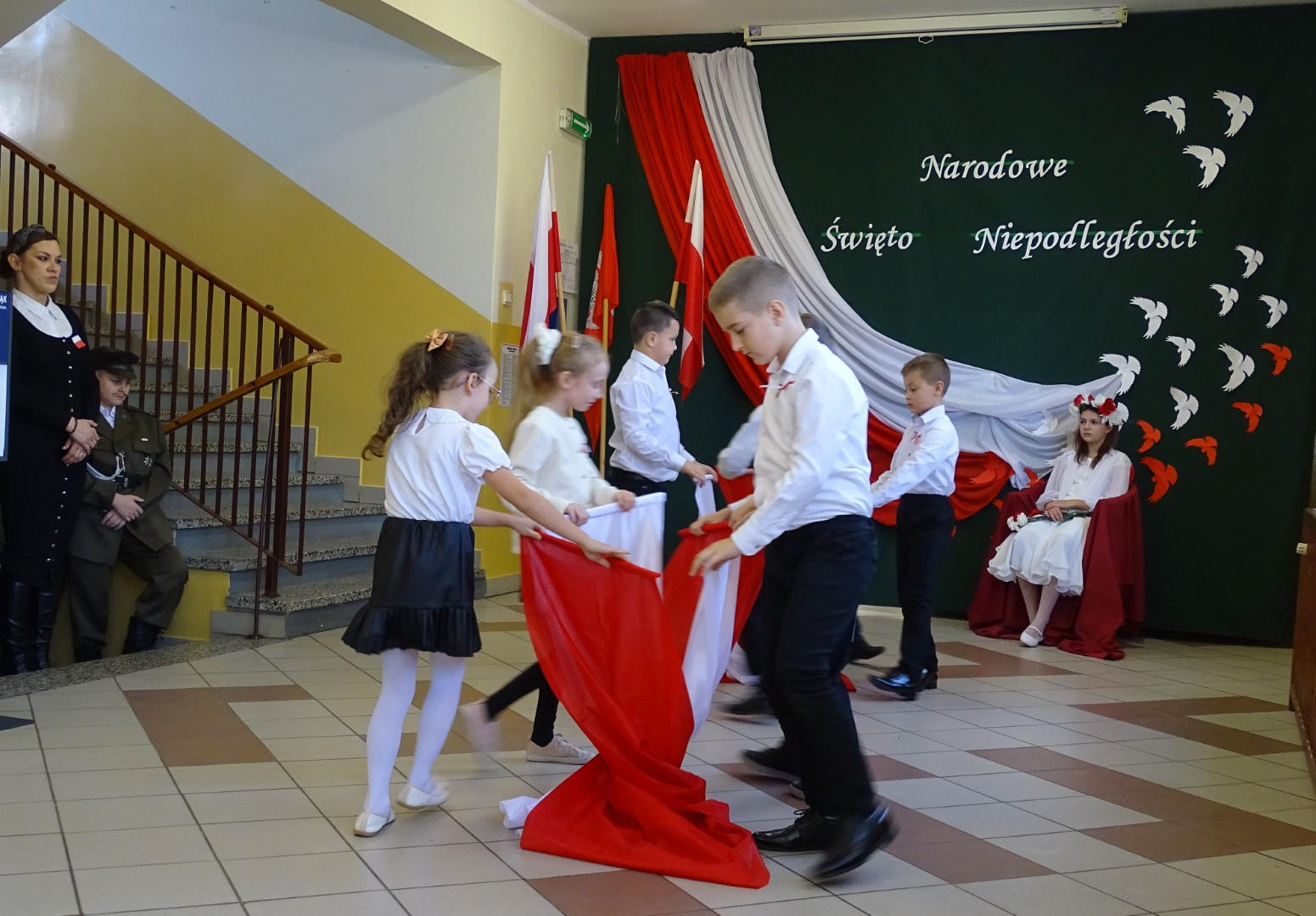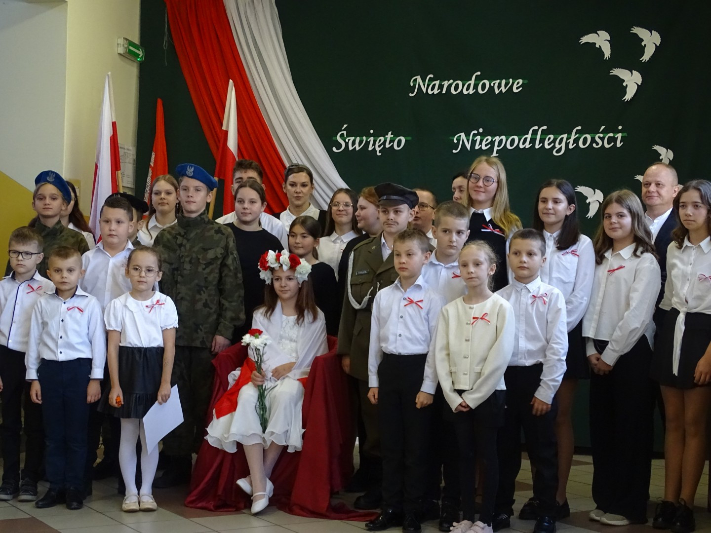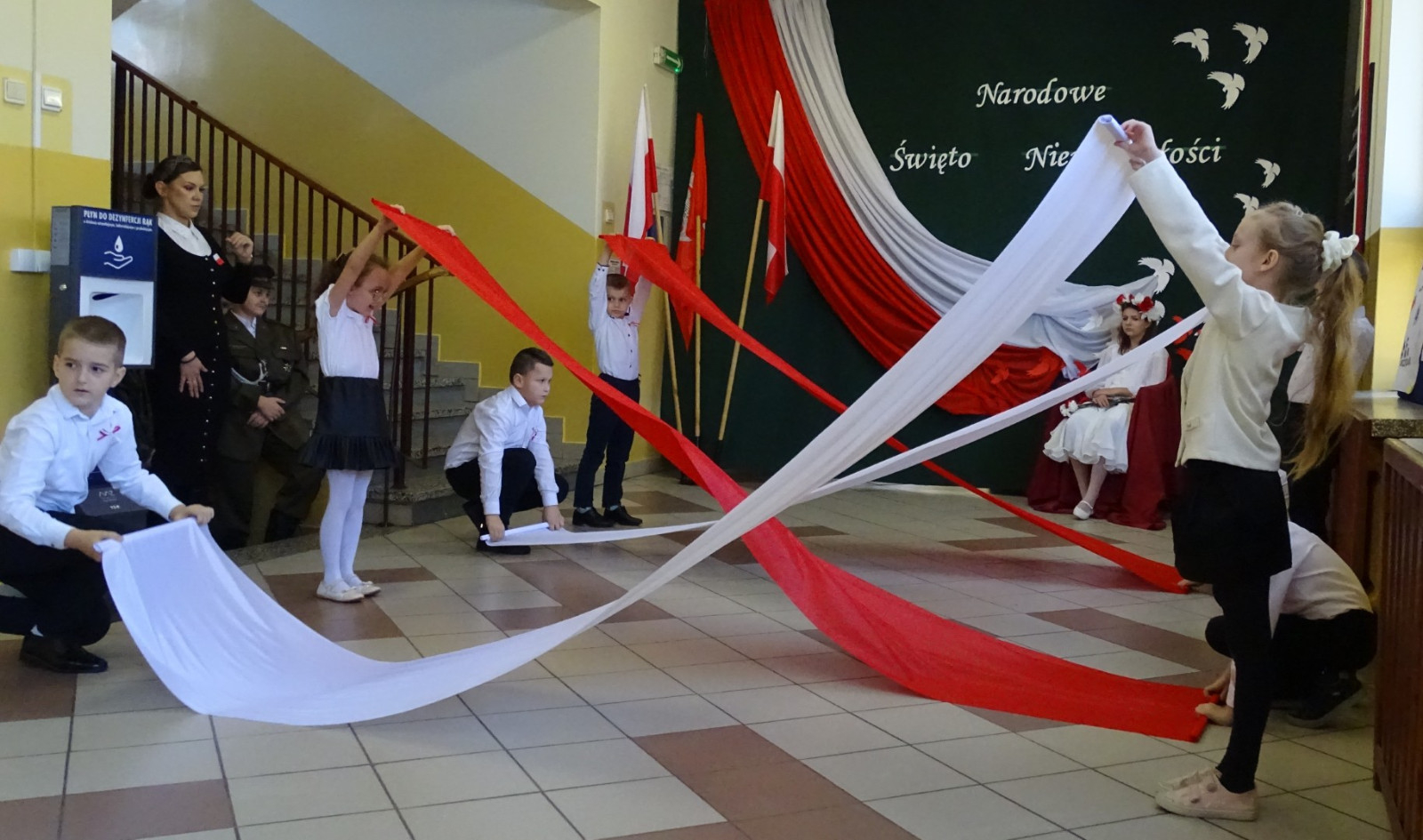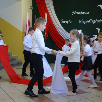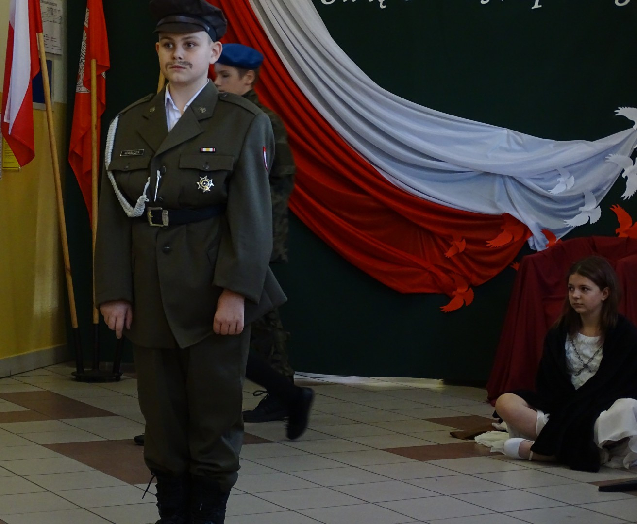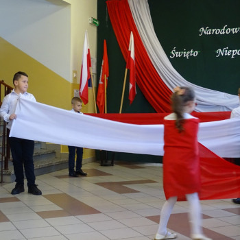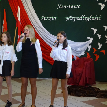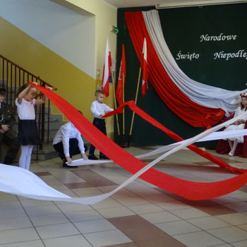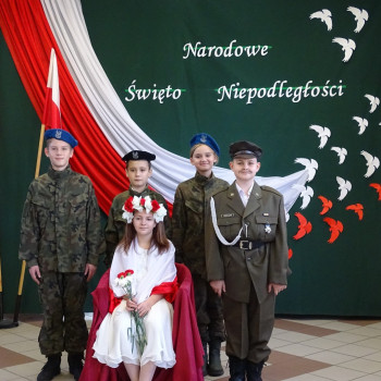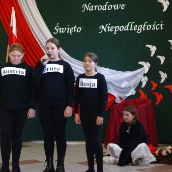 W montażu słowno – wokalno – tanecznym uczniowie naszej szkoły przypomnieli wydarzenia z czasów rozbiorów oraz walki o niepodległość naszego kraju. Młodzi artyści najważniejsze informacje dotyczące, tak ważnych wydarzenia dla naszej ojczyzny przekazali w przystępny i atrakcyjny sposób szczególnie dla najmłodszych uczniów naszej szkoły. Akademia została wzbogacona o piosenki i pieśni patriotyczne a także o przepiękny taniec w wykonaniu uczniów kasy II. Powagi uroczystości nadała także dekoracja, poczet flagowy oraz odświętne stroje i kotyliony narodowe, które mieli wszyscy uczniowie.