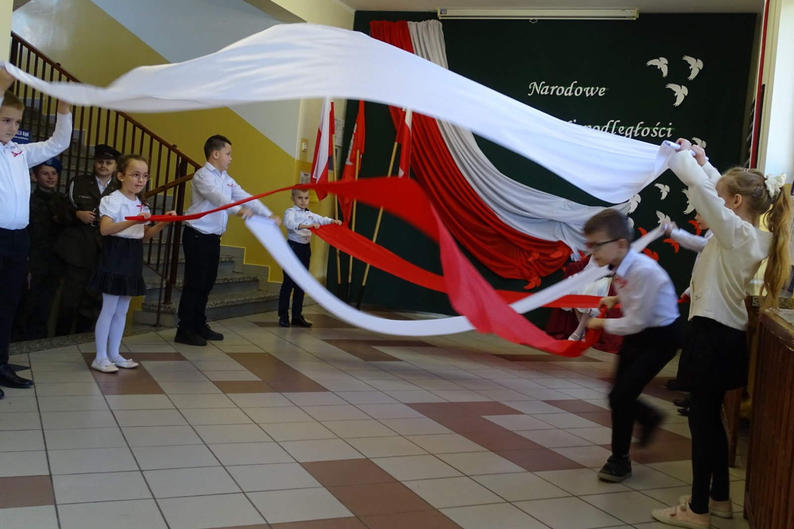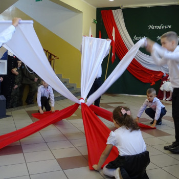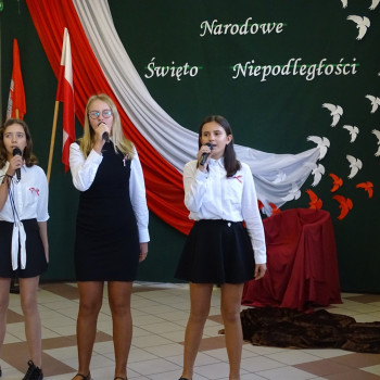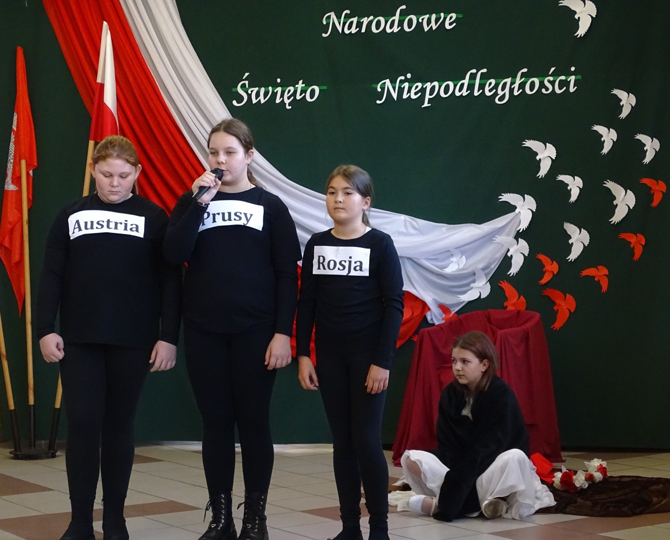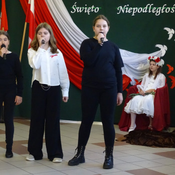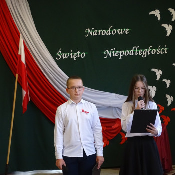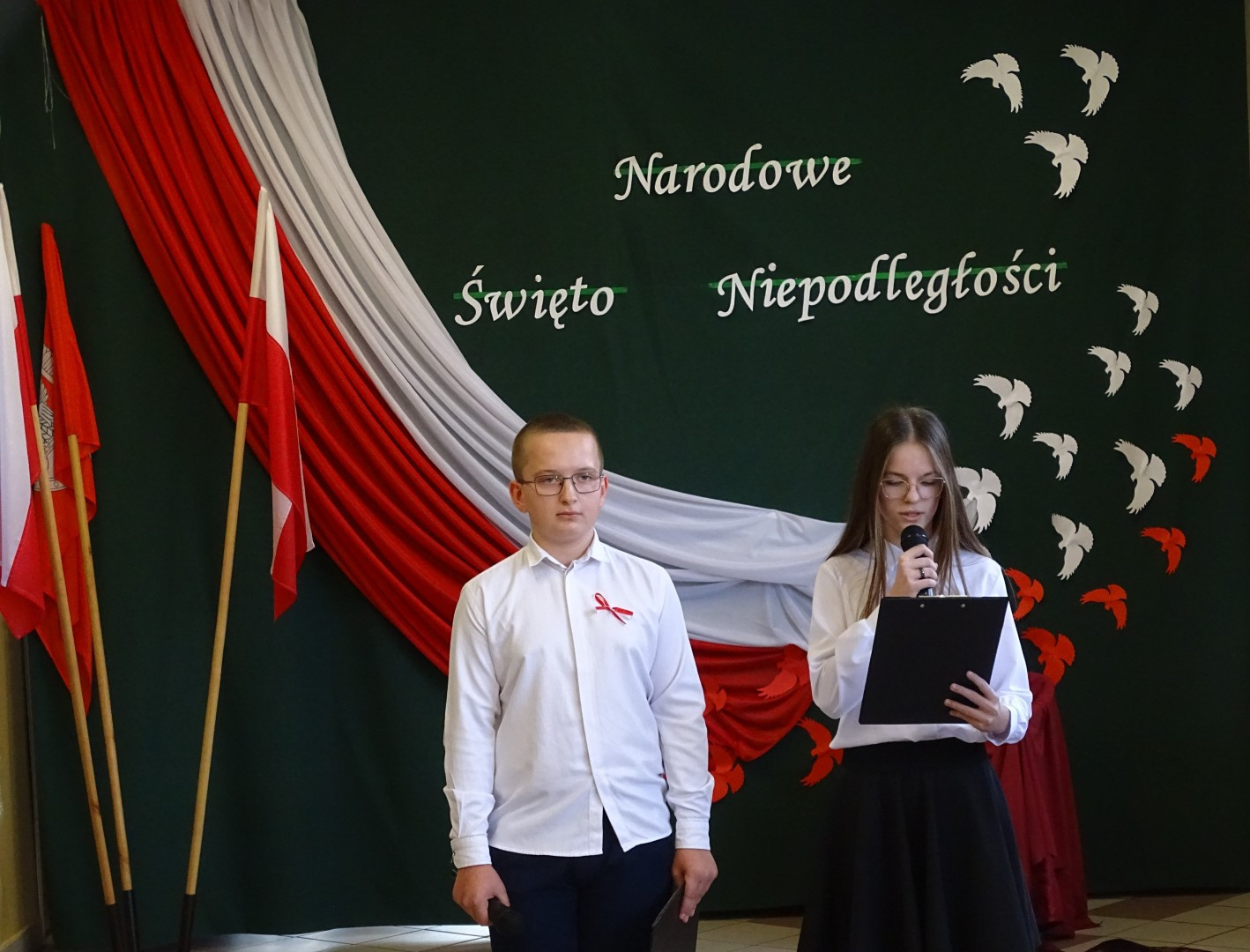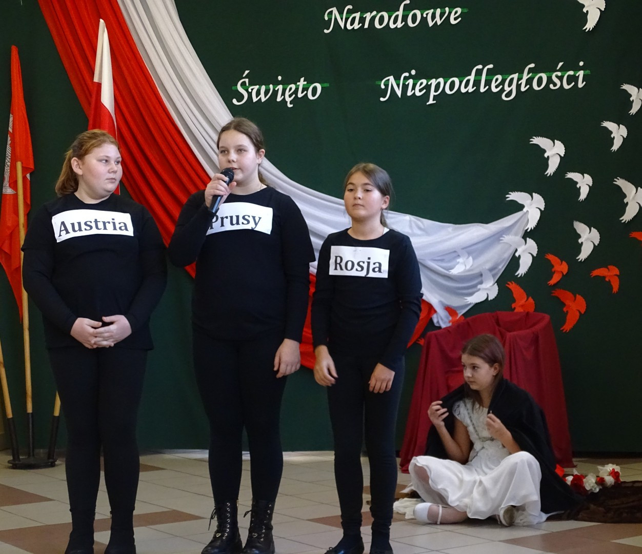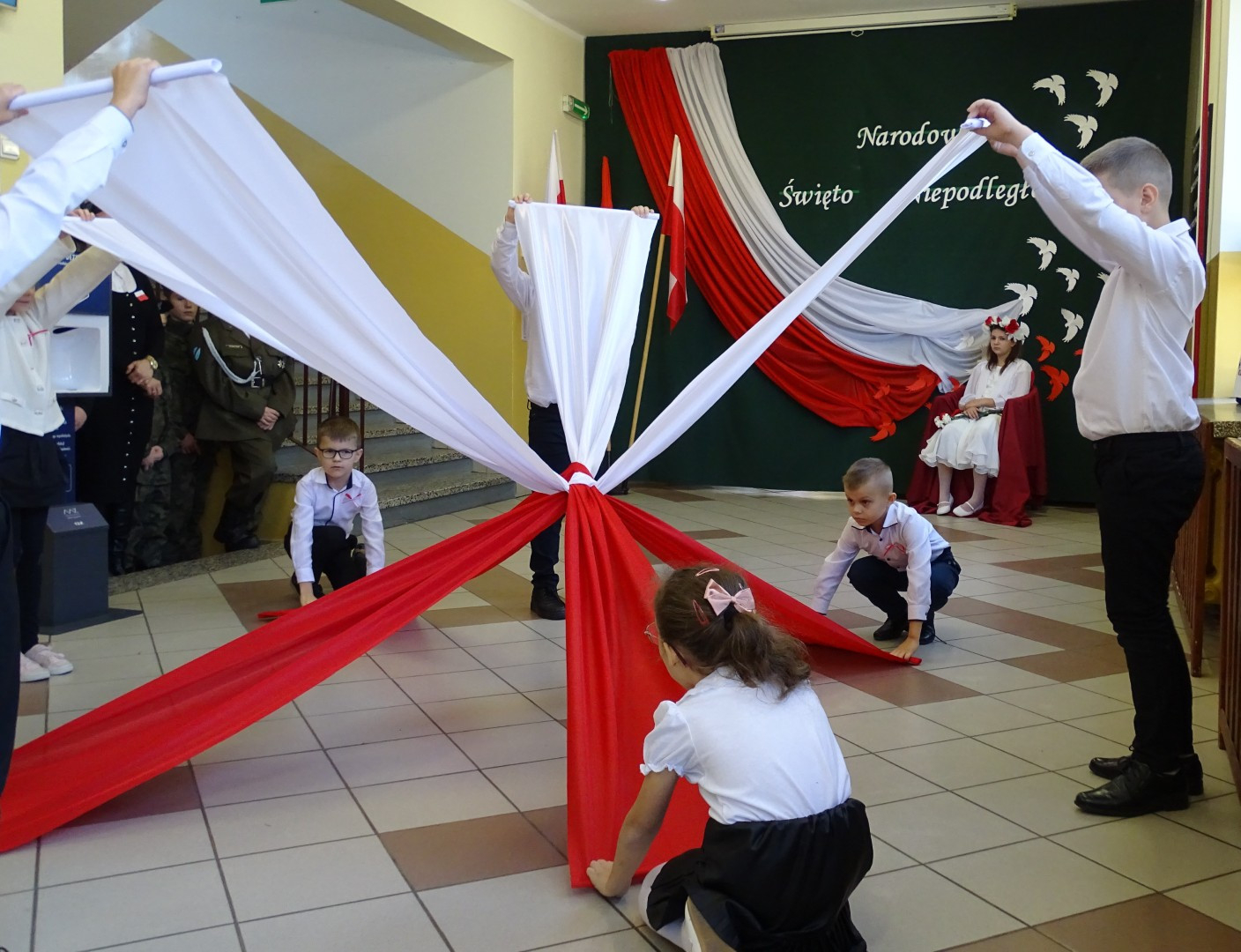 W montażu słowno – wokalno – tanecznym uczniowie naszej szkoły przypomnieli wydarzenia z czasów rozbiorów oraz walki o niepodległość naszego kraju. Młodzi artyści najważniejsze informacje dotyczące, tak ważnych wydarzenia dla naszej ojczyzny przekazali w przystępny i atrakcyjny sposób szczególnie dla najmłodszych uczniów naszej szkoły. Akademia została wzbogacona o piosenki i pieśni patriotyczne a także o przepiękny taniec w wykonaniu uczniów kasy II. Powagi uroczystości nadała także dekoracja, poczet flagowy oraz odświętne stroje i kotyliony narodowe, które mieli wszyscy uczniowie.