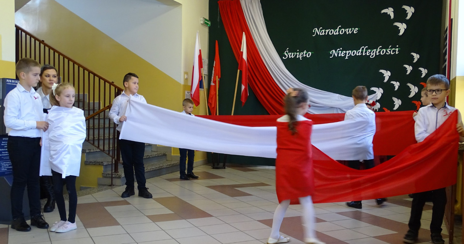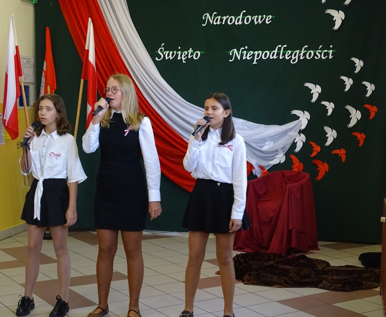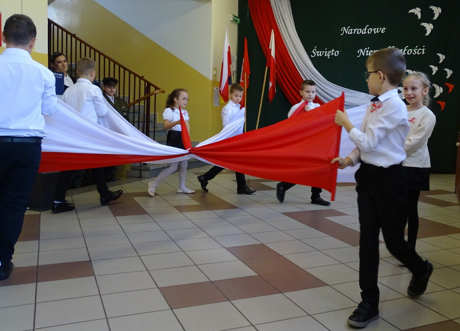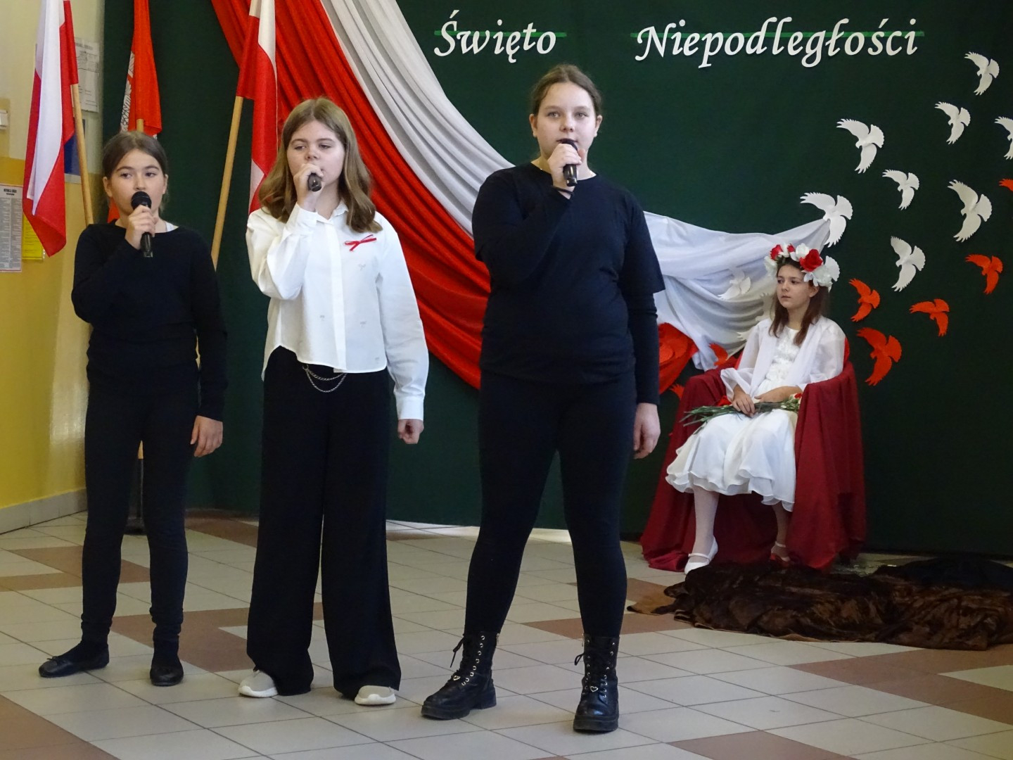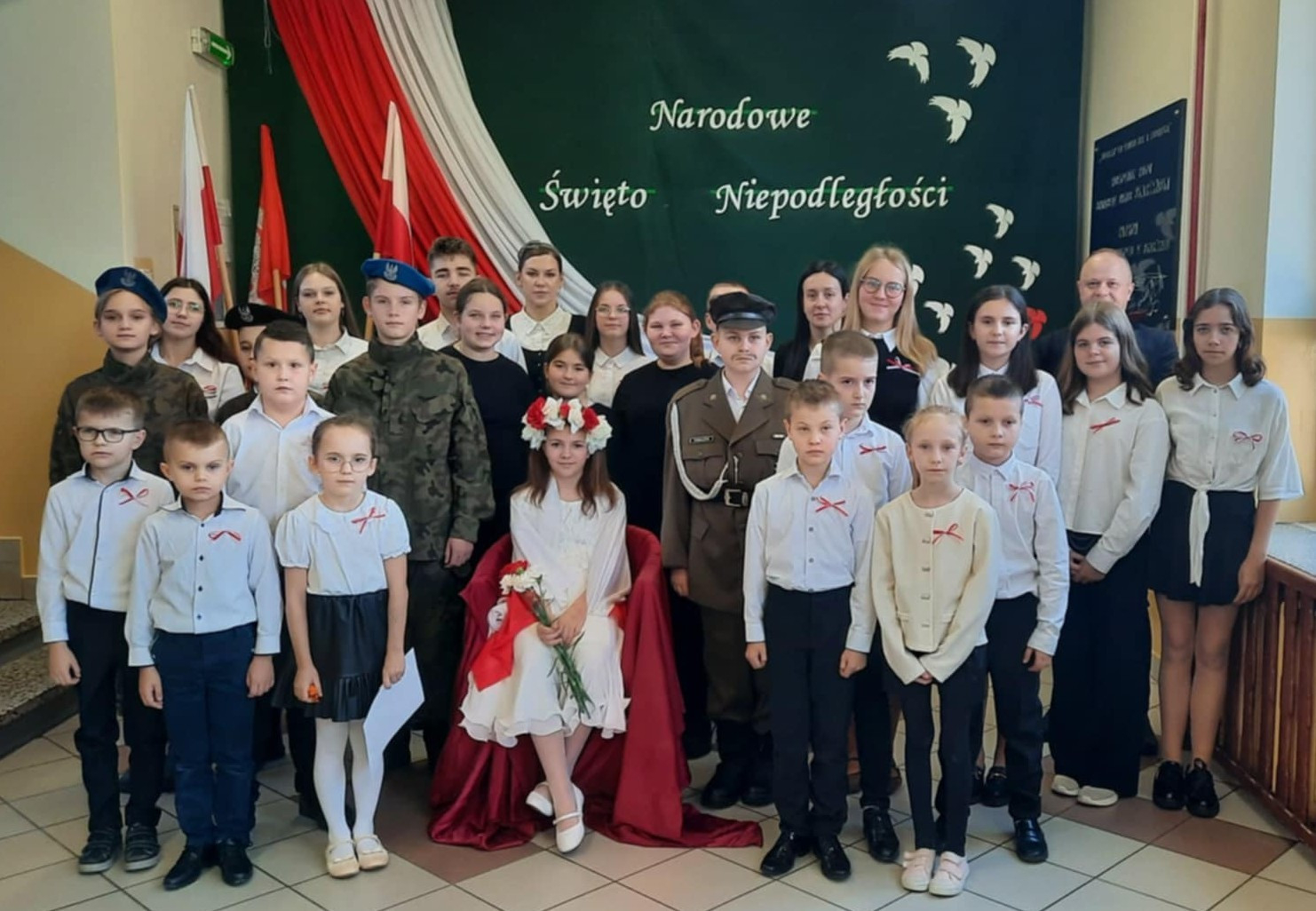 W montażu słowno – wokalno – tanecznym uczniowie naszej szkoły przypomnieli wydarzenia z czasów rozbiorów oraz walki o niepodległość naszego kraju. Młodzi artyści najważniejsze informacje dotyczące, tak ważnych wydarzenia dla naszej ojczyzny przekazali w przystępny i atrakcyjny sposób szczególnie dla najmłodszych uczniów naszej szkoły. Akademia została wzbogacona o piosenki i pieśni patriotyczne a także o przepiękny taniec w wykonaniu uczniów kasy II. Powagi uroczystości nadała także dekoracja, poczet flagowy oraz odświętne stroje i kotyliony narodowe, które mieli wszyscy uczniowie.
