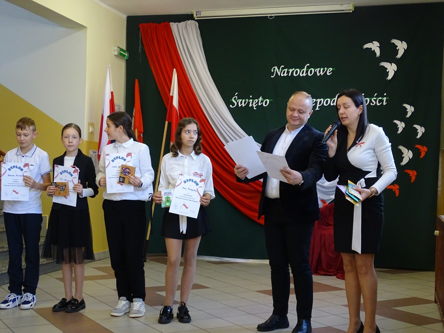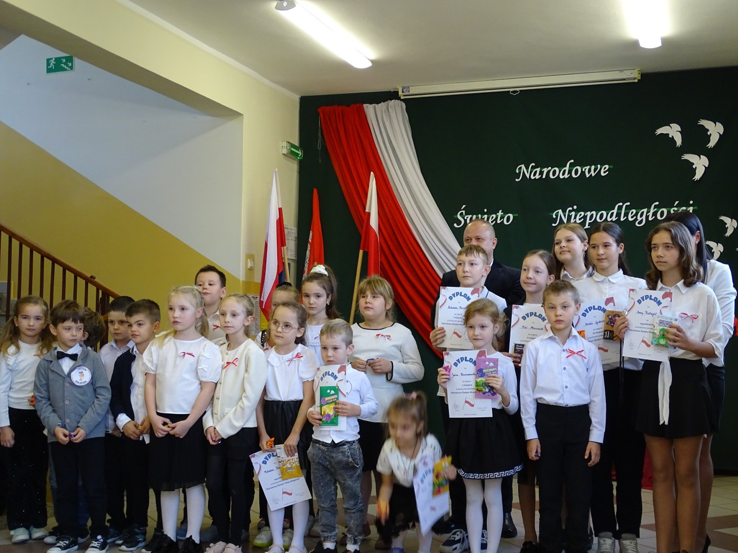 Podczas apelu zostały także wręczone nagrody za udział w konkursie plastycznym pt. „Narodowe Święto Niepodległości”, które otrzymali: Łukasz Bronszewski, Maja Marciniak, Amelia Grabarczyk, Anna Piestrzyńska, Julia Bronszewska, Wiktor Jagieła, Laura Tomasik oraz Natalia Kowalska.