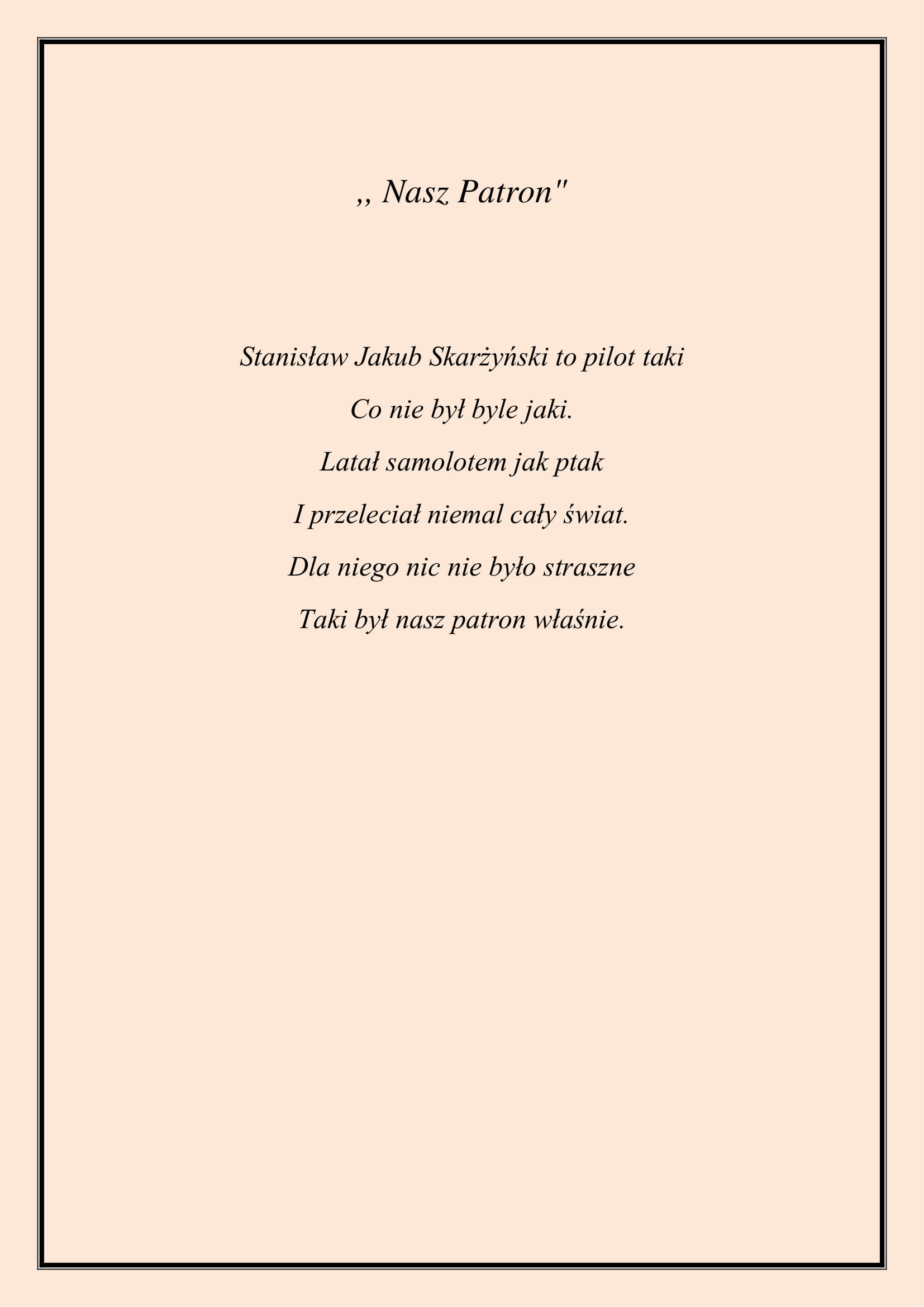 Wiersze poświęcone pamięci płk .pil. Stanisławowi Jakubowi Skarżyńskiemu.
