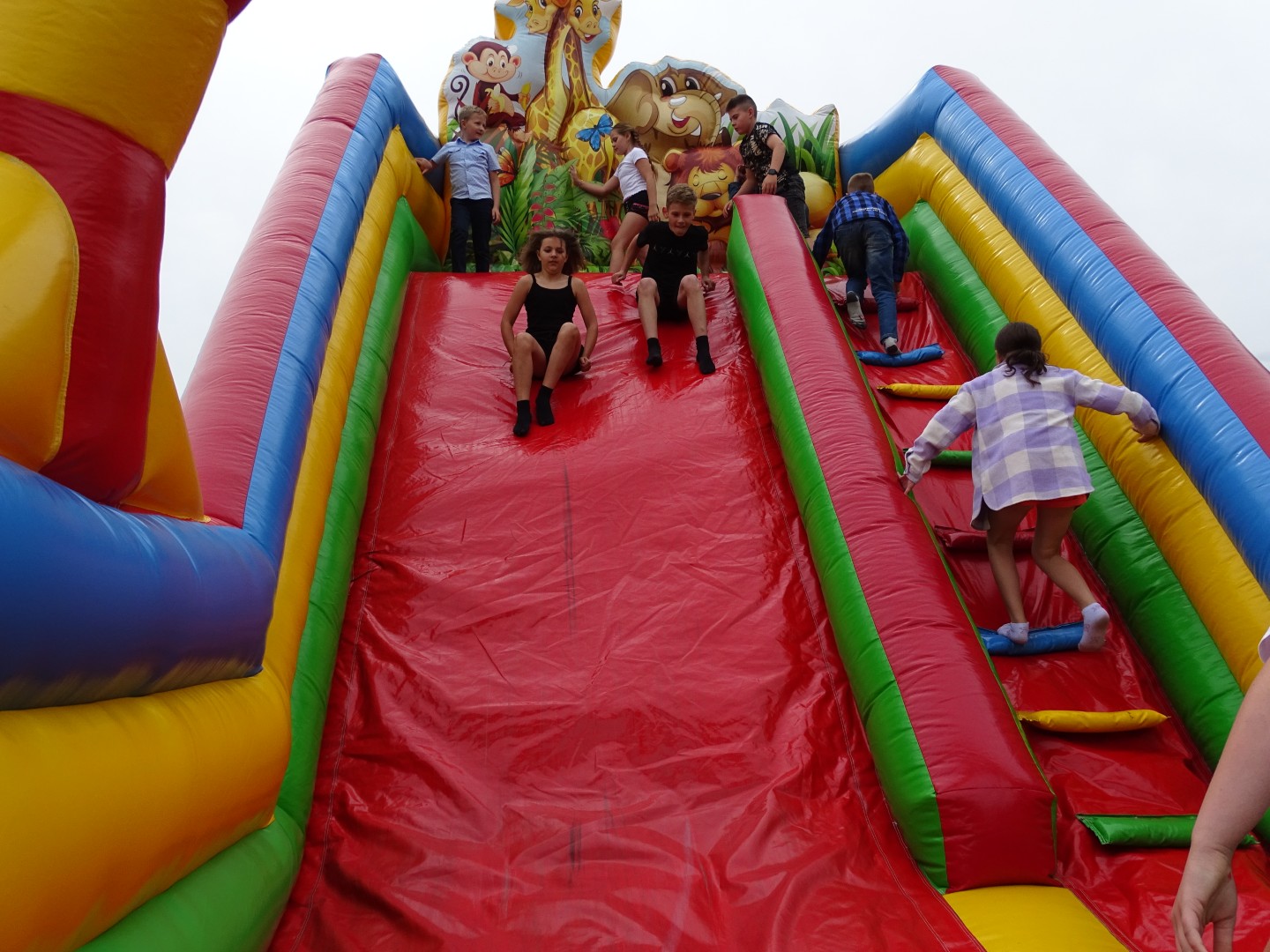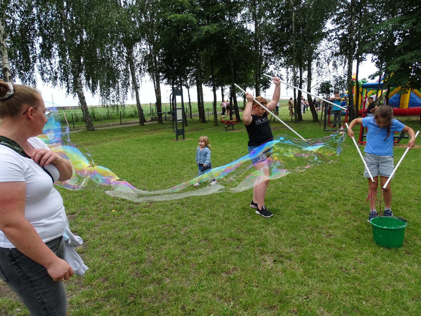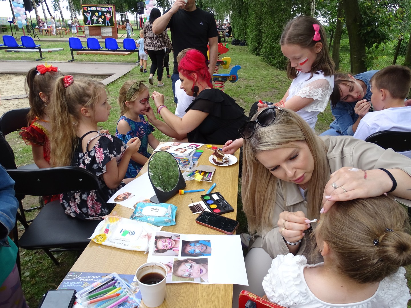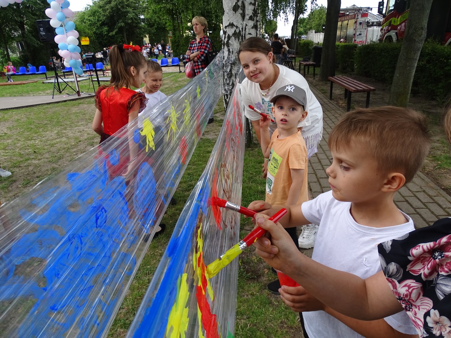Na zebranych czekało mnóstwo atrakcji: dmuchane zamki, bańki mydlane, malowanie twarzy, stoisko z kolorowankami i farbami do malowania na folii. Dużym zainteresowaniem cieszyły się także wozy strażackie, które można było obejrzeć i zrobić sobie w nich zdjęcia. Starsi uczniowie brali udział w konkursach i zawodach sportowych z nagrodami. Dzieci wraz z rodzicami chętnie brały udział w zabawach przy muzyce proponowanych przez didżeja.