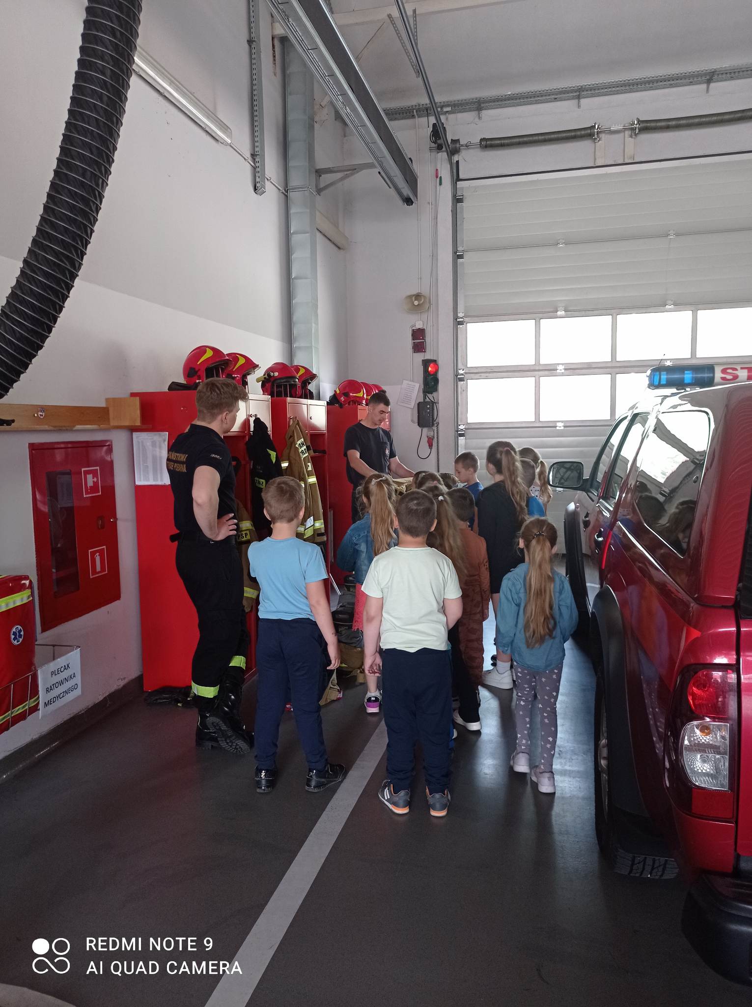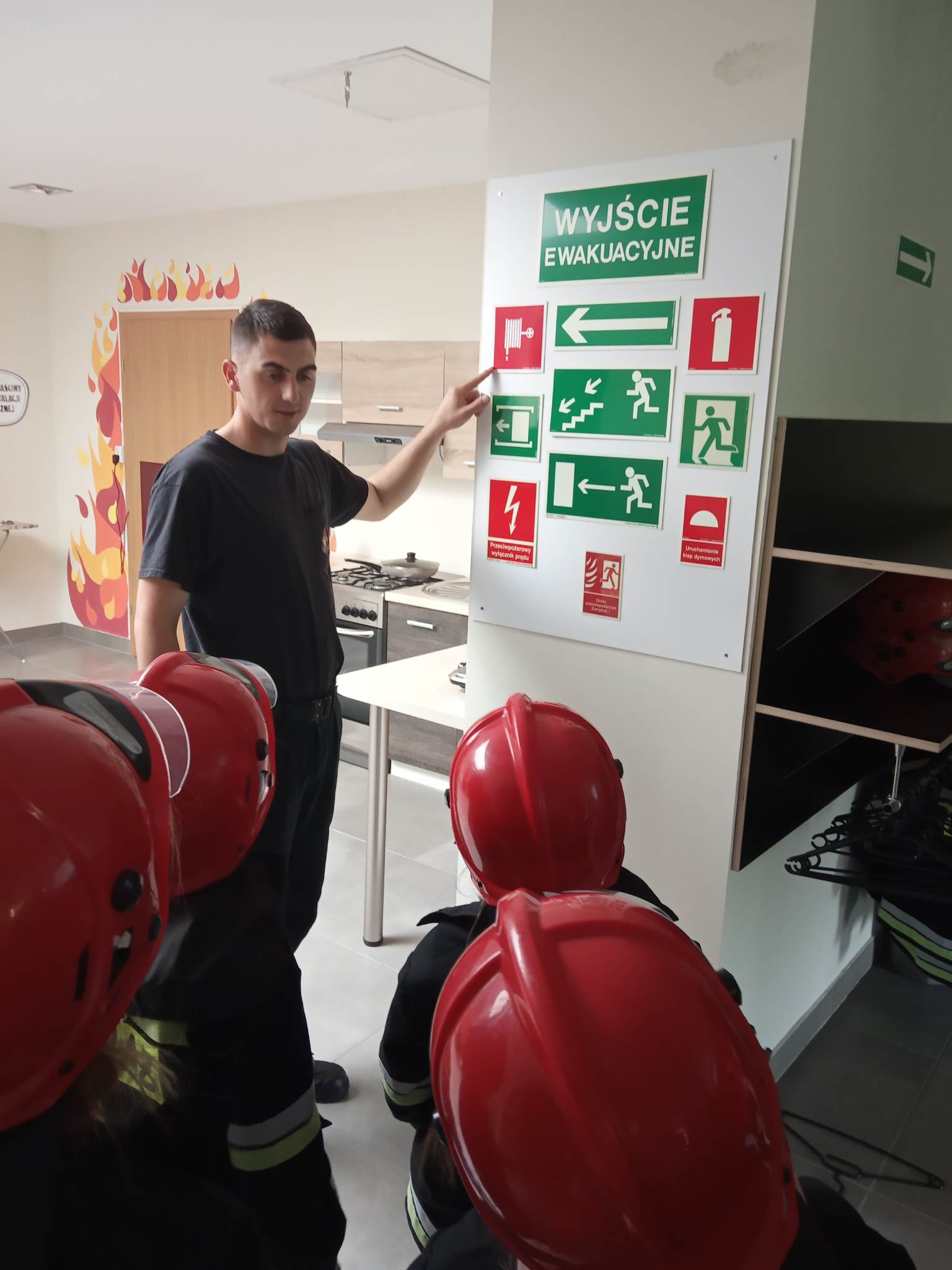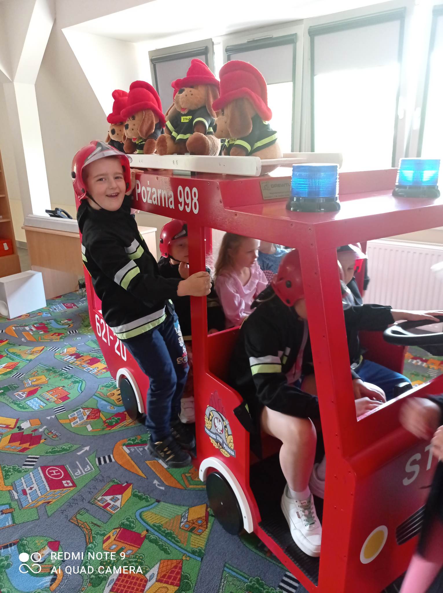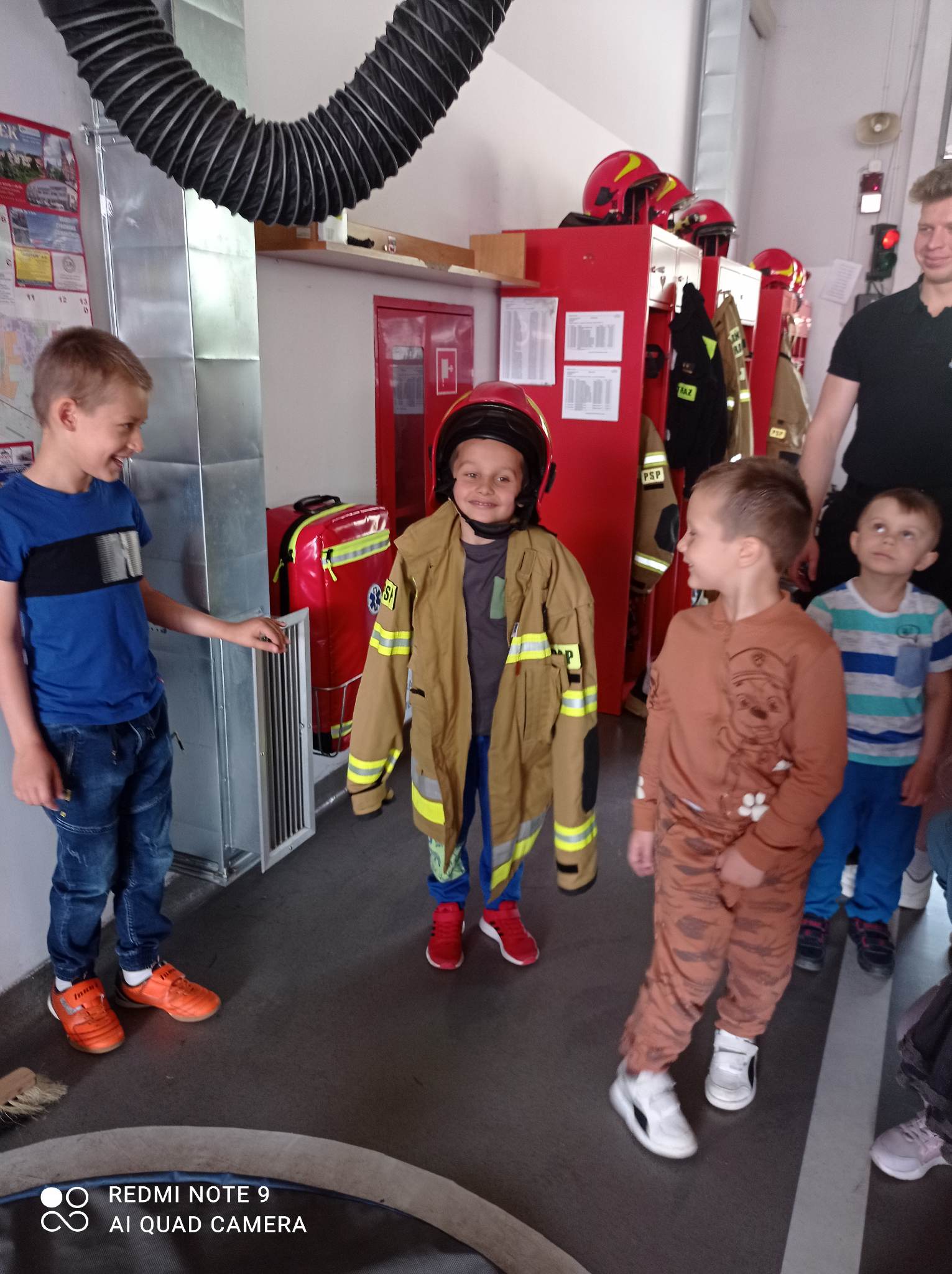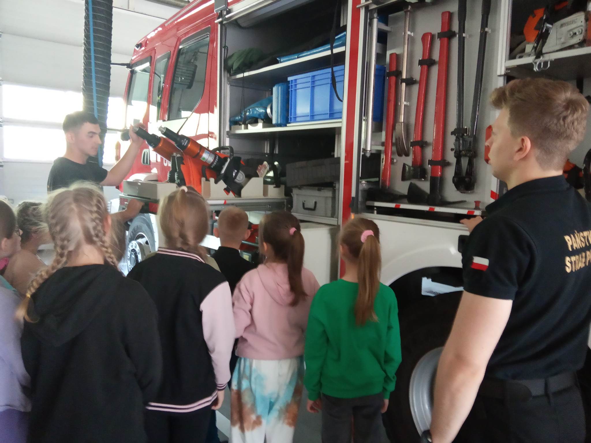 Kolejnym punktem wycieczki były zajęcia w interaktywnej sali edukacyjnej „Ognik”, gdzie specjalnie przeszkoleni funkcjonariusze Państwowej Straży Pożarnej w Turku przeprowadzili warsztaty dotyczące szeroko rozumianego bezpieczeństwa. Interaktywne i bogate wyposażenie sali edukacyjnej pozwoliło na wzbogacenie wiedzy i umiejętności dzieci na temat właściwych sposobów reagowania w sytuacjach niebezpiecznych dla życia i zdrowia. Dzieci utrwaliły sobie takie umiejętności jak: prawidłowe zgłoszenie zdarzeń, podstawy pierwszej pomocy oraz zasady właściwej ewakuacji. Miały również możliwość zobaczyć centrum dowodzenia oraz wszystkie pojazdy znajdujące się na wyposażeniu Państwowej Straży Pożarnej w Turku. Po spotkaniu ze strażakami udaliśmy się na posiłek.
