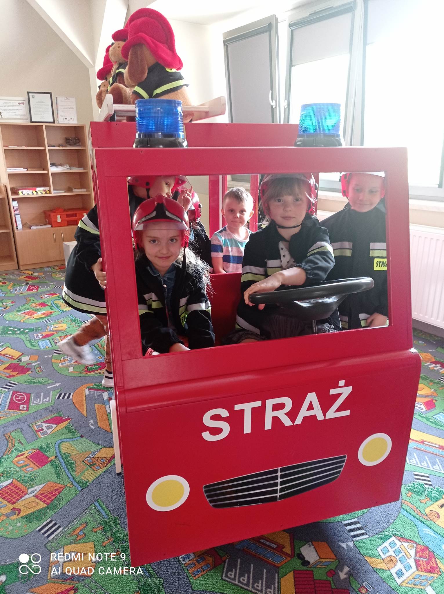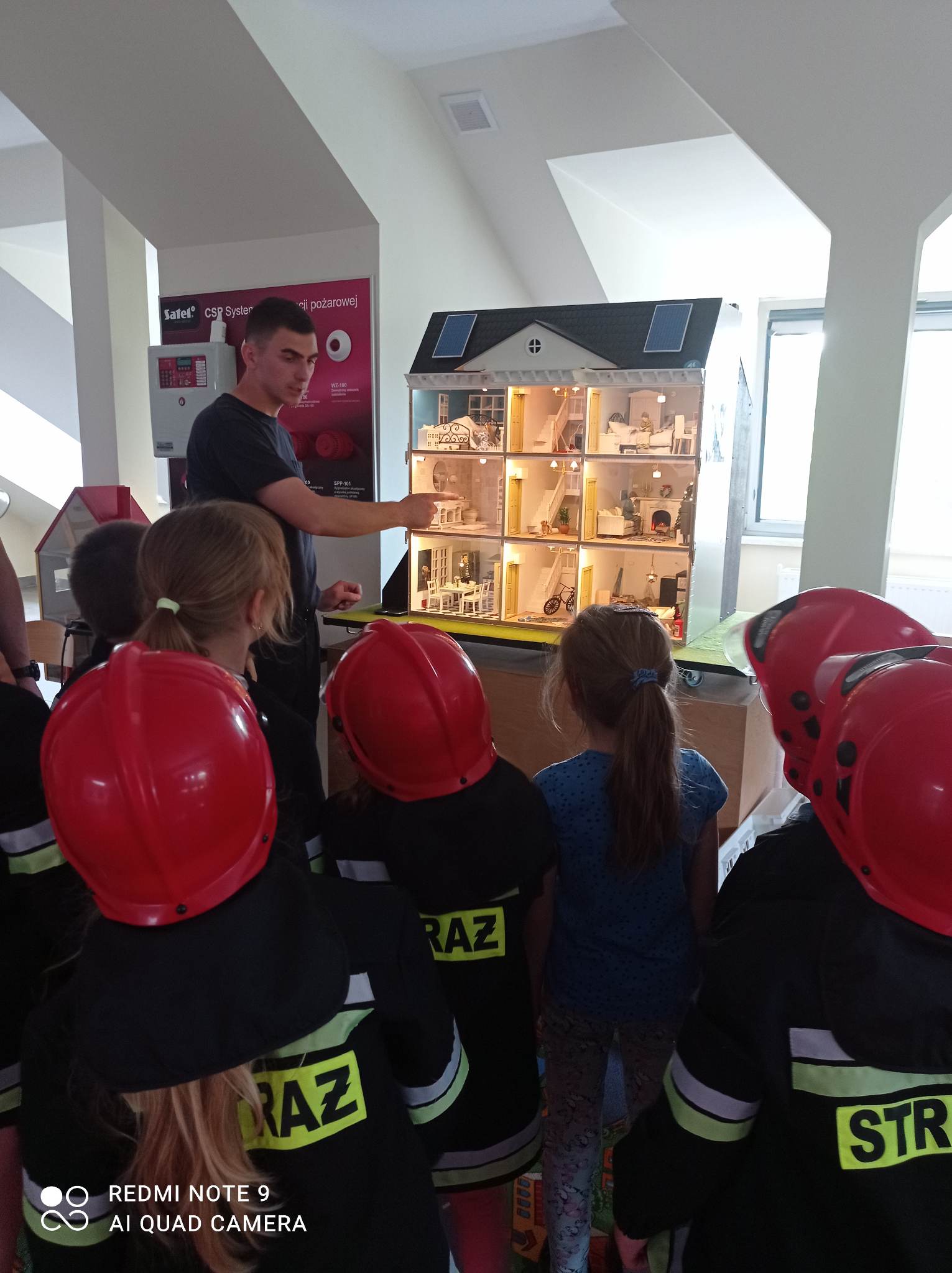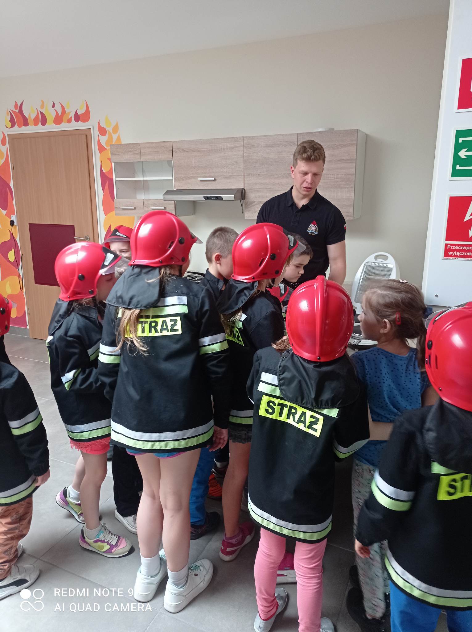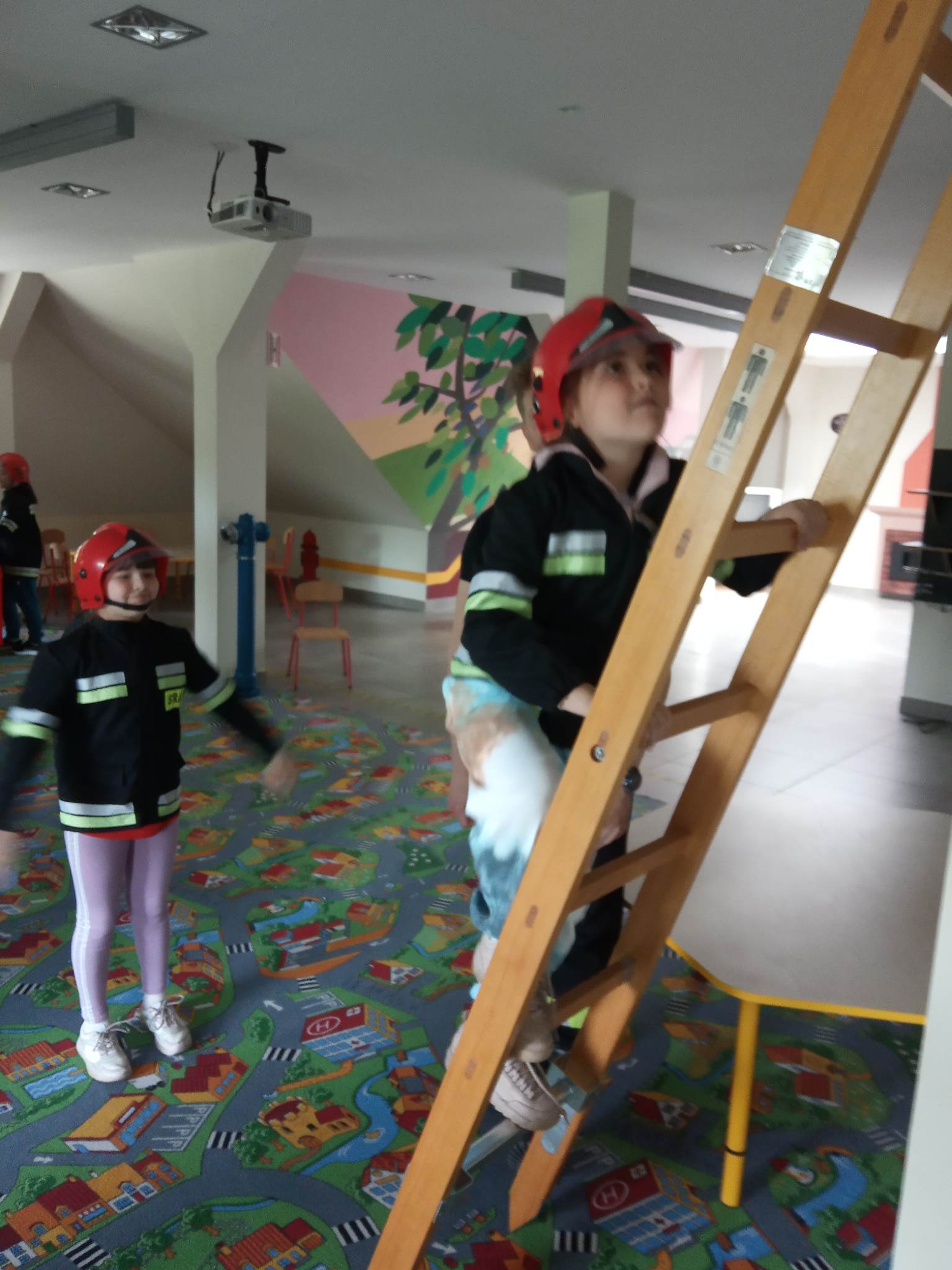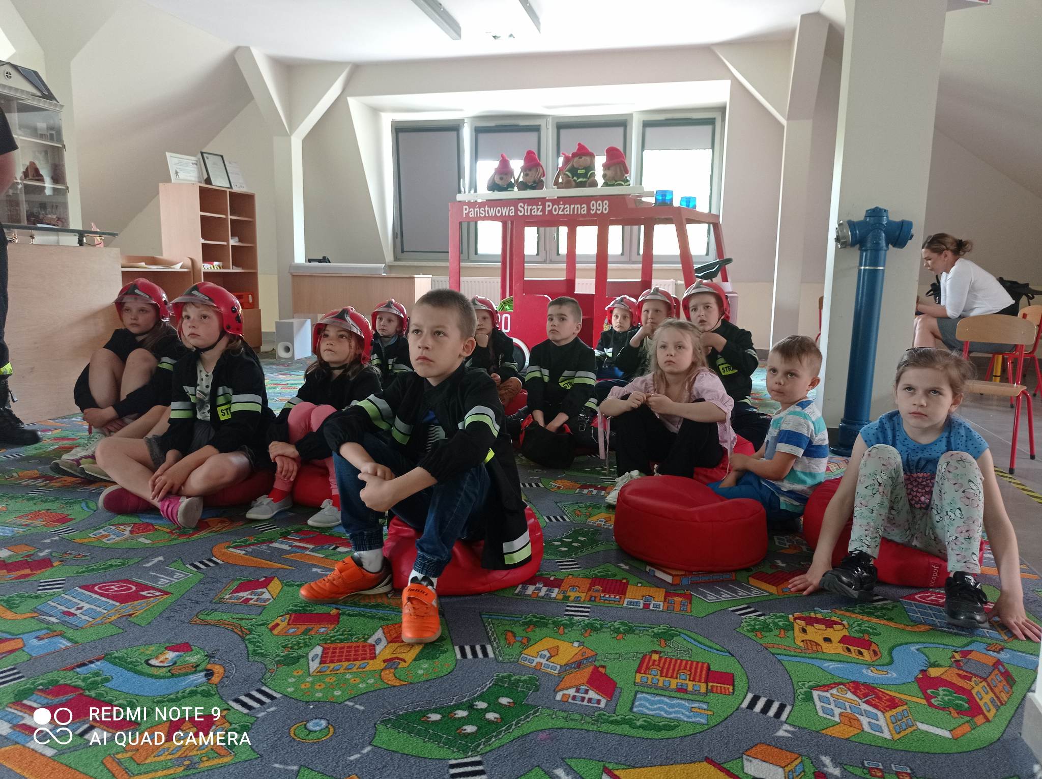 Kolejnym punktem wycieczki były zajęcia w interaktywnej sali edukacyjnej „Ognik”, gdzie specjalnie przeszkoleni funkcjonariusze Państwowej Straży Pożarnej w Turku przeprowadzili warsztaty dotyczące szeroko rozumianego bezpieczeństwa. Interaktywne i bogate wyposażenie sali edukacyjnej pozwoliło na wzbogacenie wiedzy i umiejętności dzieci na temat właściwych sposobów reagowania w sytuacjach niebezpiecznych dla życia i zdrowia. Dzieci utrwaliły sobie takie umiejętności jak: prawidłowe zgłoszenie zdarzeń, podstawy pierwszej pomocy oraz zasady właściwej ewakuacji. Miały również możliwość zobaczyć centrum dowodzenia oraz wszystkie pojazdy znajdujące się na wyposażeniu Państwowej Straży Pożarnej w Turku. Po spotkaniu ze strażakami udaliśmy się na posiłek.