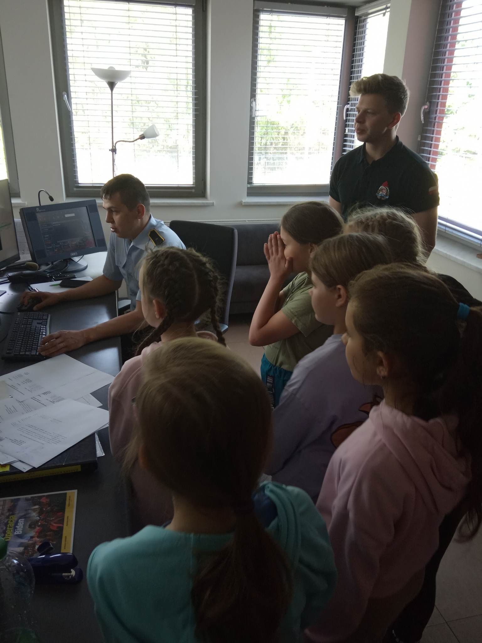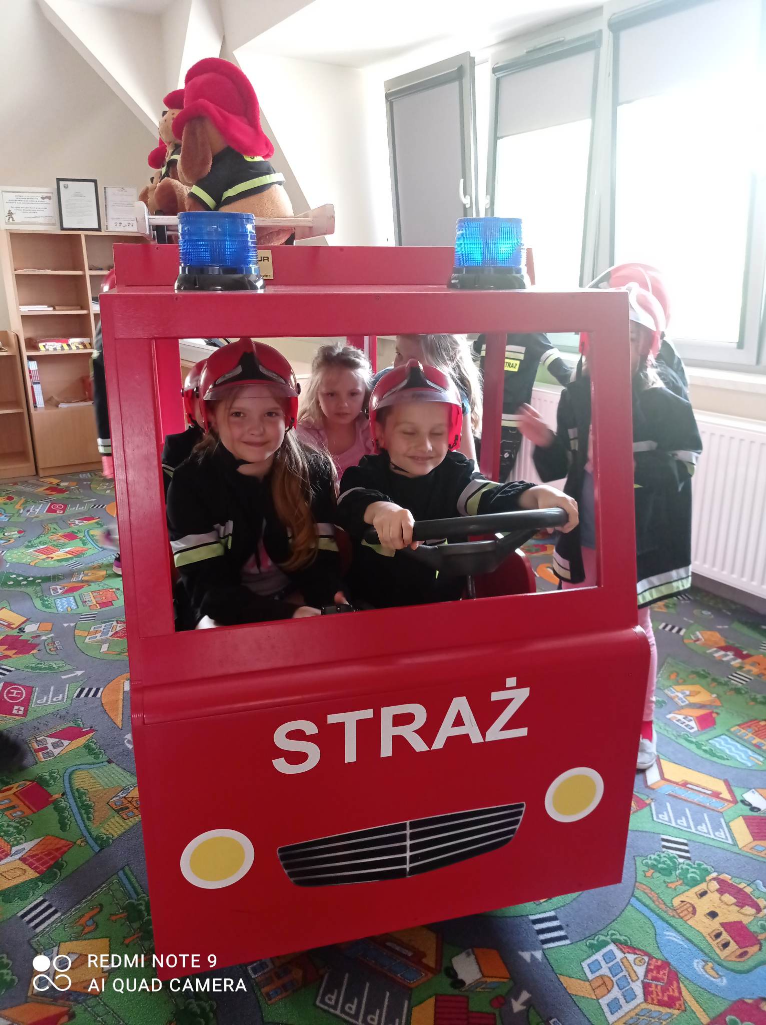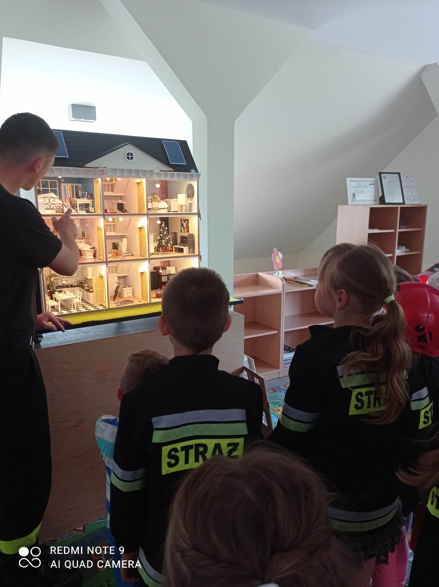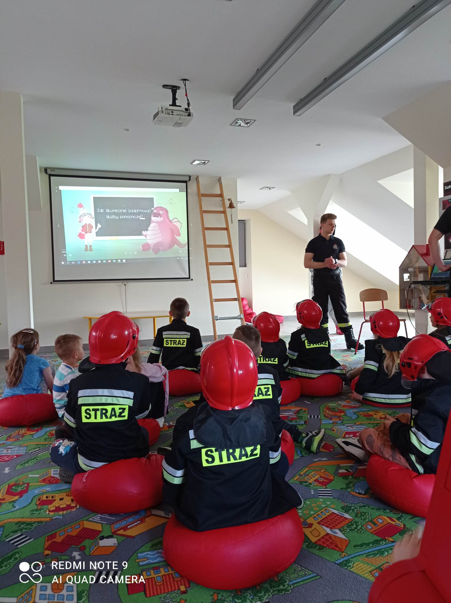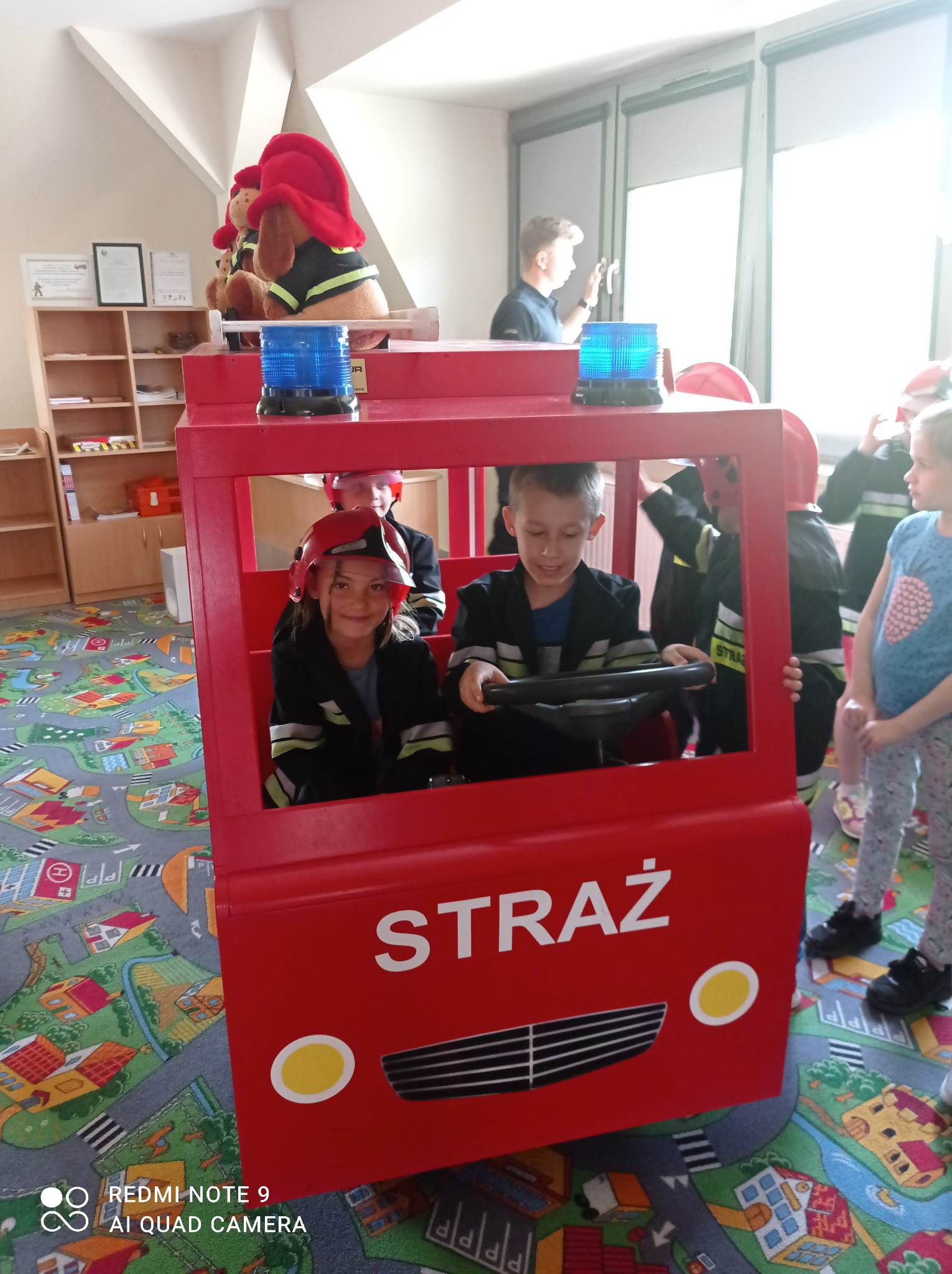 Kolejnym punktem wycieczki były zajęcia w interaktywnej sali edukacyjnej „Ognik”, gdzie specjalnie przeszkoleni funkcjonariusze Państwowej Straży Pożarnej w Turku przeprowadzili warsztaty dotyczące szeroko rozumianego bezpieczeństwa. Interaktywne i bogate wyposażenie sali edukacyjnej pozwoliło na wzbogacenie wiedzy i umiejętności dzieci na temat właściwych sposobów reagowania w sytuacjach niebezpiecznych dla życia i zdrowia. Dzieci utrwaliły sobie takie umiejętności jak: prawidłowe zgłoszenie zdarzeń, podstawy pierwszej pomocy oraz zasady właściwej ewakuacji. Miały również możliwość zobaczyć centrum dowodzenia oraz wszystkie pojazdy znajdujące się na wyposażeniu Państwowej Straży Pożarnej w Turku. Po spotkaniu ze strażakami udaliśmy się na posiłek.