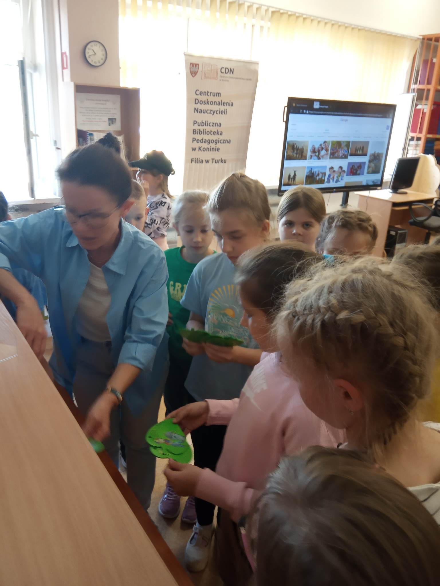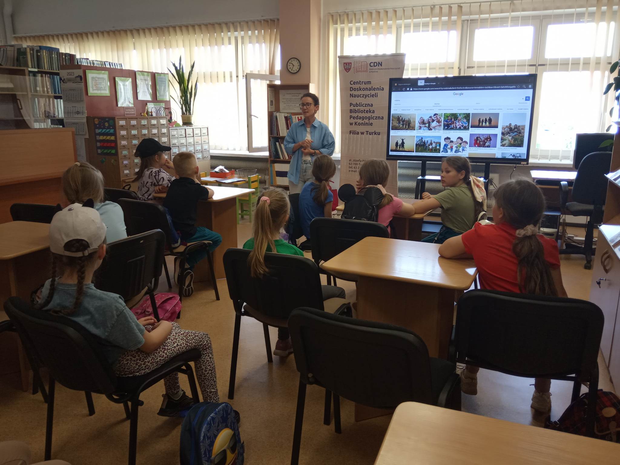 Wycieczkę rozpoczęliśmy od zajęć czytelniczych w CDN Publicznej Bibliotece Pedagogicznej filia w Turku, gdzie uczniowie wzięli udział w warsztatach pt. „Moja rodzina i ja. Zajęcia w oparciu o książkę „Franklin i dzień z tatą” P. Bourgeois”. Celem warsztatów było uświadomienie uczniom roli rodziny, rozwijanie świadomości przynależności do grupy społecznej, rozwijanie zainteresowań czytelniczych, umiejętności plastycznych oraz wzbogacanie słownictwa. Zajęcia wpisują się w realizację jednego z kierunków polityki oświatowej państwa na rok szkolny 2022/2023. Po zajęciach w bibliotece udaliśmy się na pyszne lody.