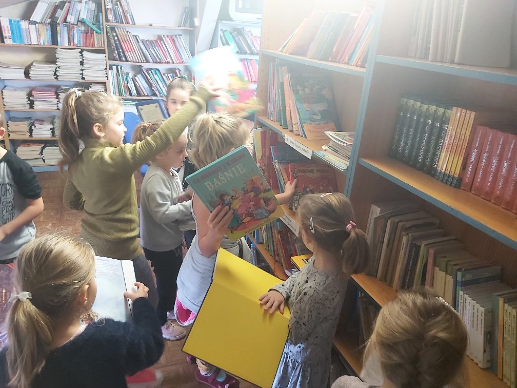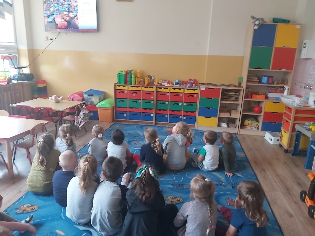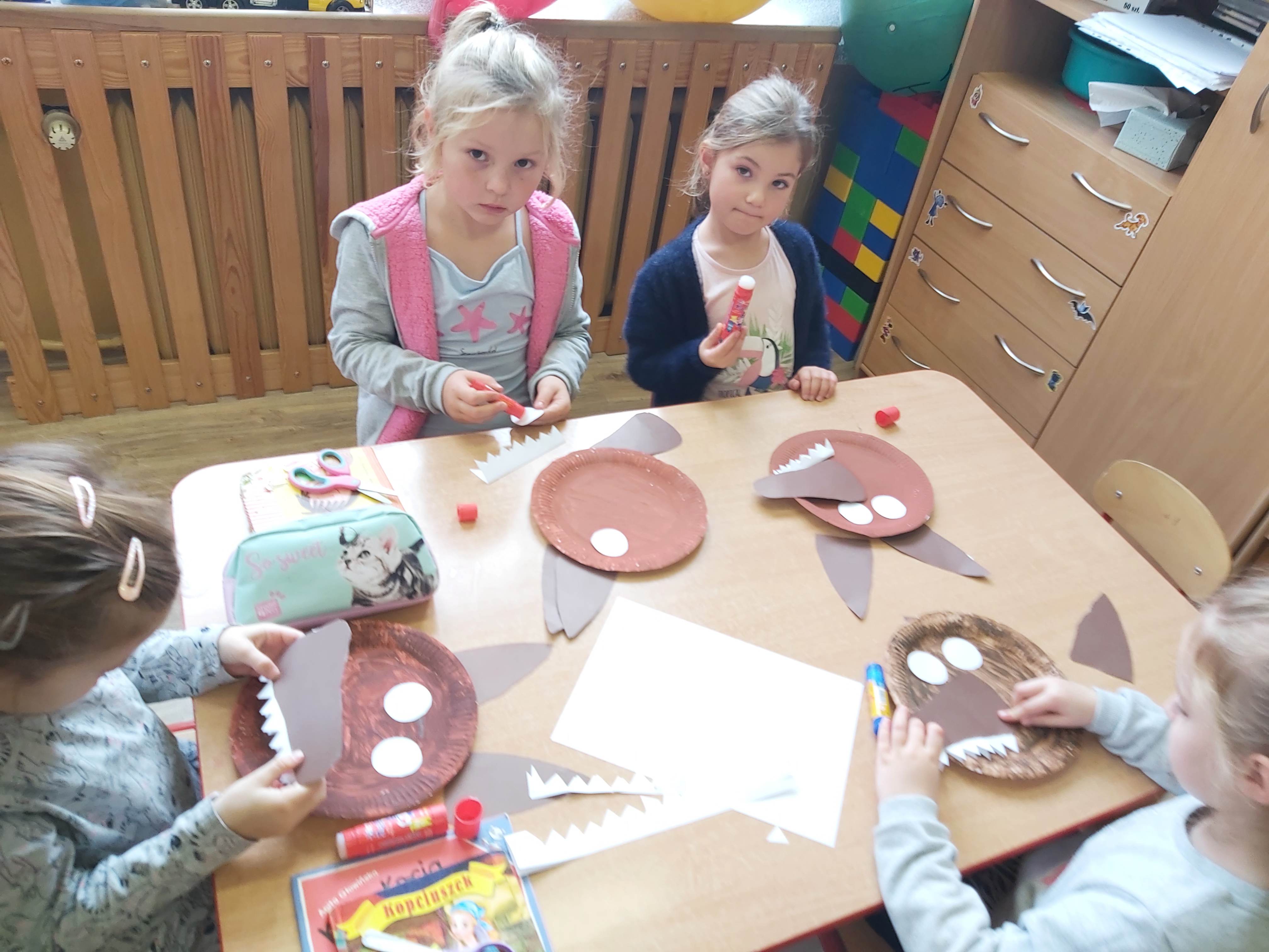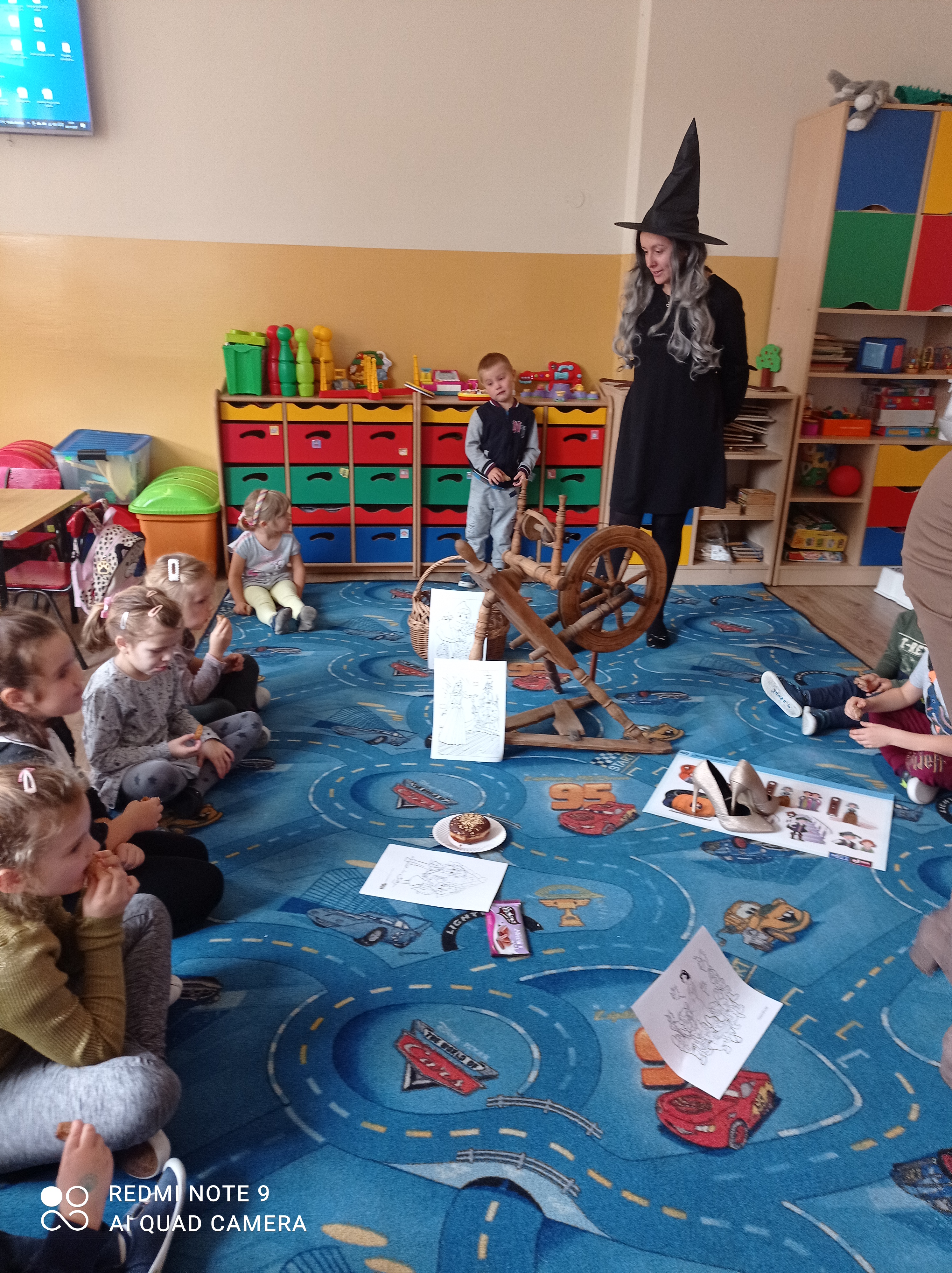 Z tej okazji przedszkolaki - zarówno starszaki jaki i maluszki wzięły udział w bajkowym spotkaniu, podczas którego opowiadały o swoich ulubionych bajkowych postaciach oraz oglądały książki z bajkami, które przyniosły. Wspólnie obejrzały również bajkę „Czerwony Kapturek” i wykonały pracę plastyczną „Wilk”. Podczas wielu zabaw dzieci wykazały się znajomością treści bajek, tych znanych i mniej znanych, m.in. dzieci rozwiązywały zagadki, rozpoznawały bajkę po rekwizycie oraz po przeczytaniu fragmentu książki, oglądały prezentację multimedialną prezentującą różne bajki. Wspólnie śpiewały i tańczyły do znanych utworów muzycznych pochodzących z bajek.