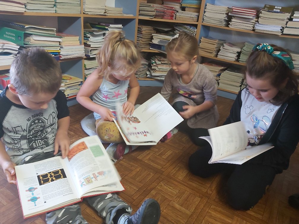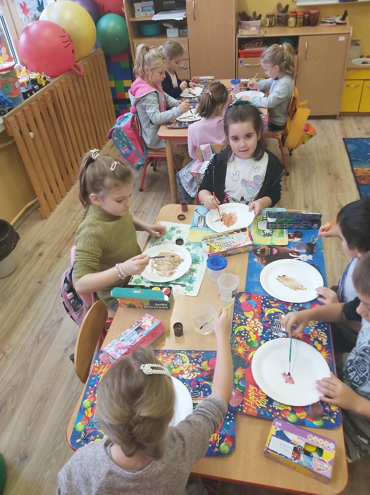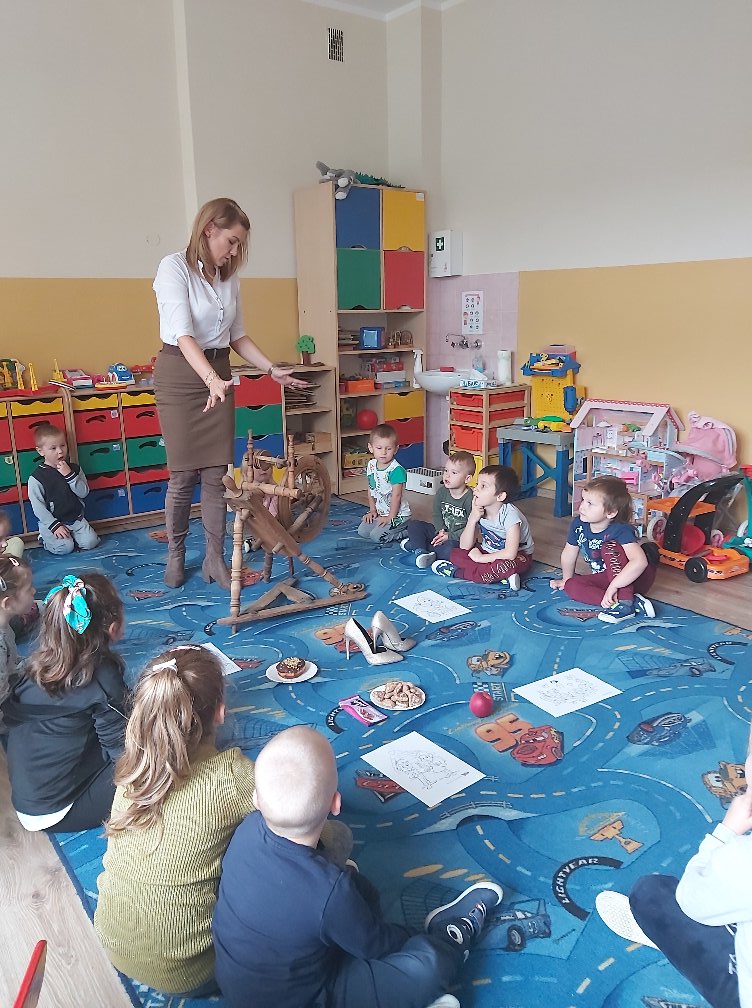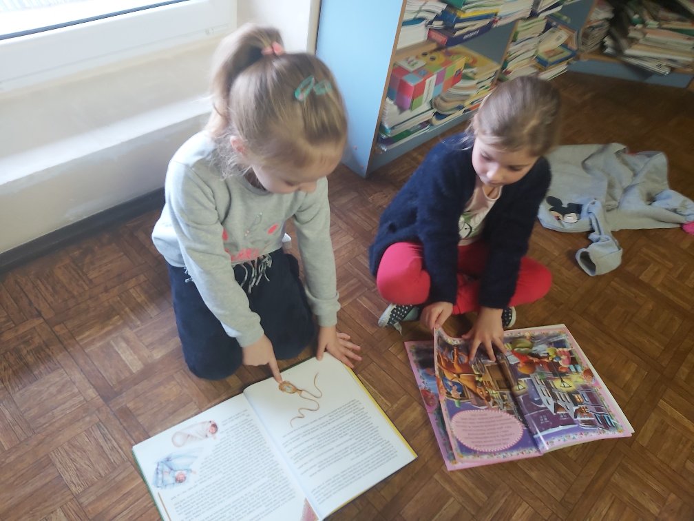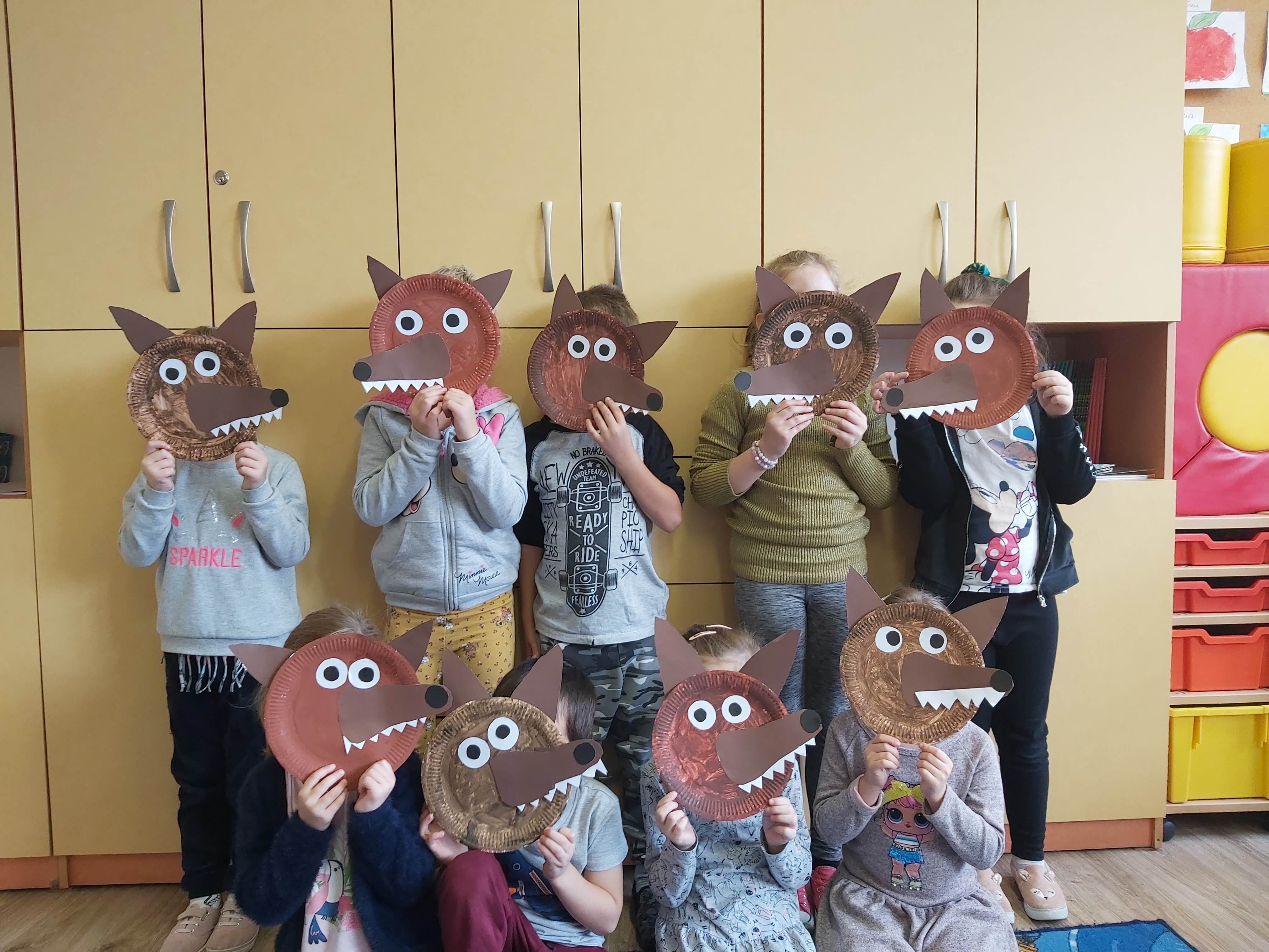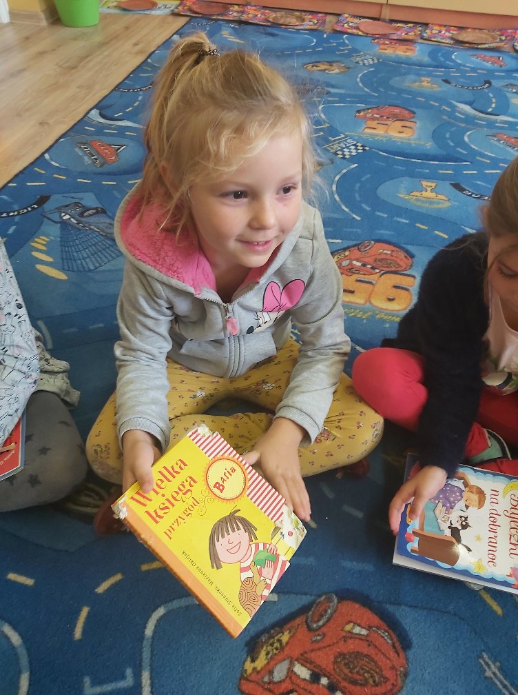 Z tej okazji przedszkolaki - zarówno starszaki jaki i maluszki wzięły udział w bajkowym spotkaniu, podczas którego opowiadały o swoich ulubionych bajkowych postaciach oraz oglądały książki z bajkami, które przyniosły. Wspólnie obejrzały również bajkę „Czerwony Kapturek” i wykonały pracę plastyczną „Wilk”. Podczas wielu zabaw dzieci wykazały się znajomością treści bajek, tych znanych i mniej znanych, m.in. dzieci rozwiązywały zagadki, rozpoznawały bajkę po rekwizycie oraz po przeczytaniu fragmentu książki, oglądały prezentację multimedialną prezentującą różne bajki. Wspólnie śpiewały i tańczyły do znanych utworów muzycznych pochodzących z bajek.