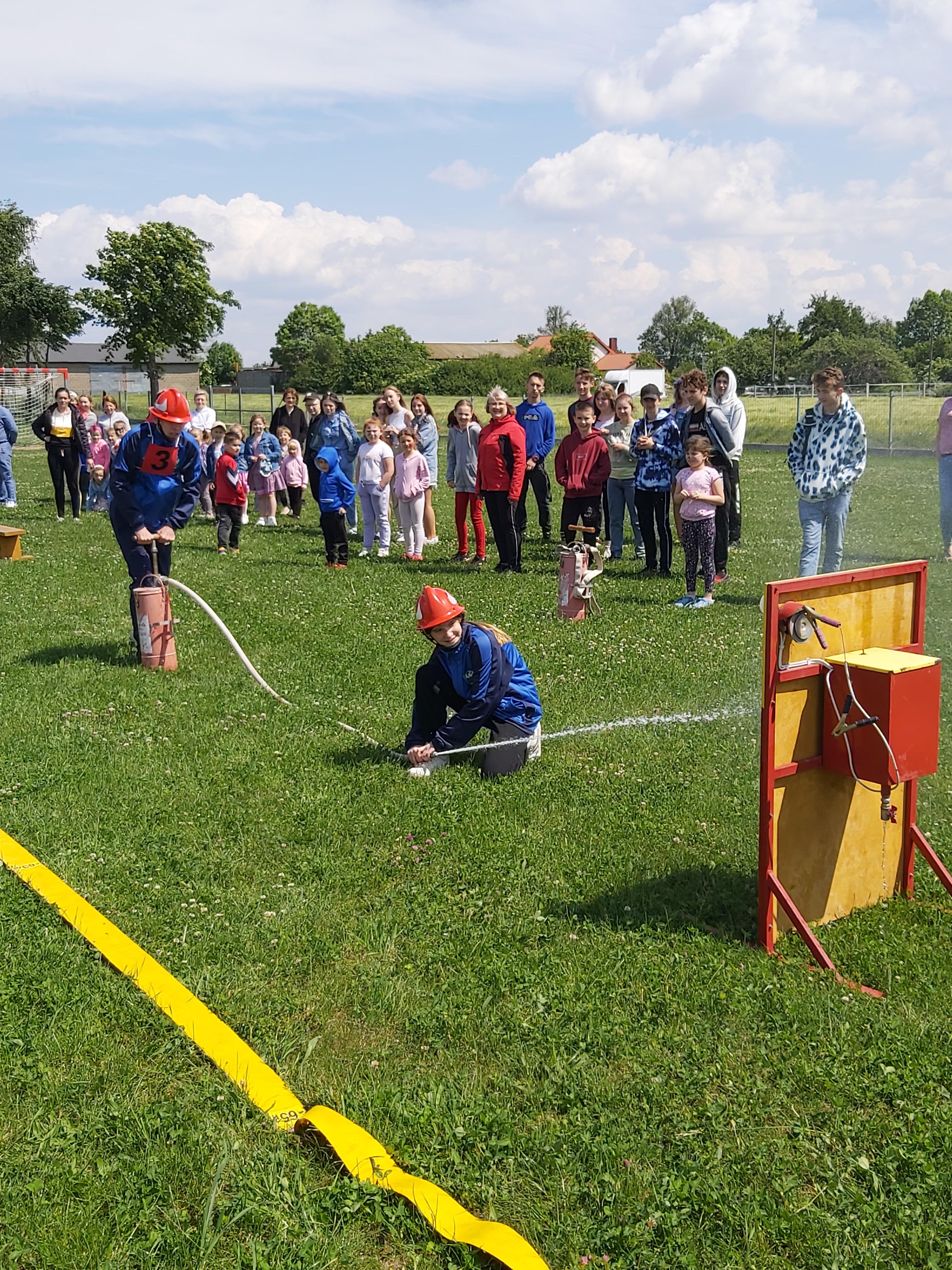 Z okazji Dnia Dziecka uczniów ze Szkoły Podstawowej w Skarżynie odwiedziła Młodzieżowa Drużyna Pożarnicza z Będziechowa z trenerem Amadeuszem Dzikowskim wraz z absolwentami Michałem Michalakiem i Kacprem Szymańskim, którzy są również członkami drużyny. Naczelnik OSP Będziechów złożył wszystkim uczniom życzenia z okazji święta Dzieci. Następnie zaznajomił wszystkich z działalnością drużyny, regulaminem wg którego ćwiczą oraz z licznymi zadaniami i obowiązkami poszczególnych członków drużyny. Drużyna pochwaliła się również pucharami jakie zdobyto w etapach gminnych, powiatowych, wojewódzkich a nawet krajowych. Warto zauważyć, iż w skład drużyny wchodzą wyłącznie uczniowie ze szkoły w Skarzynie. Dzieci trenują z ogromnym zaangażowaniem, stąd utworzono aż dwie drużyny, które zaprezentowały swoje umiejętności w pokazie ćwiczeniowym.
