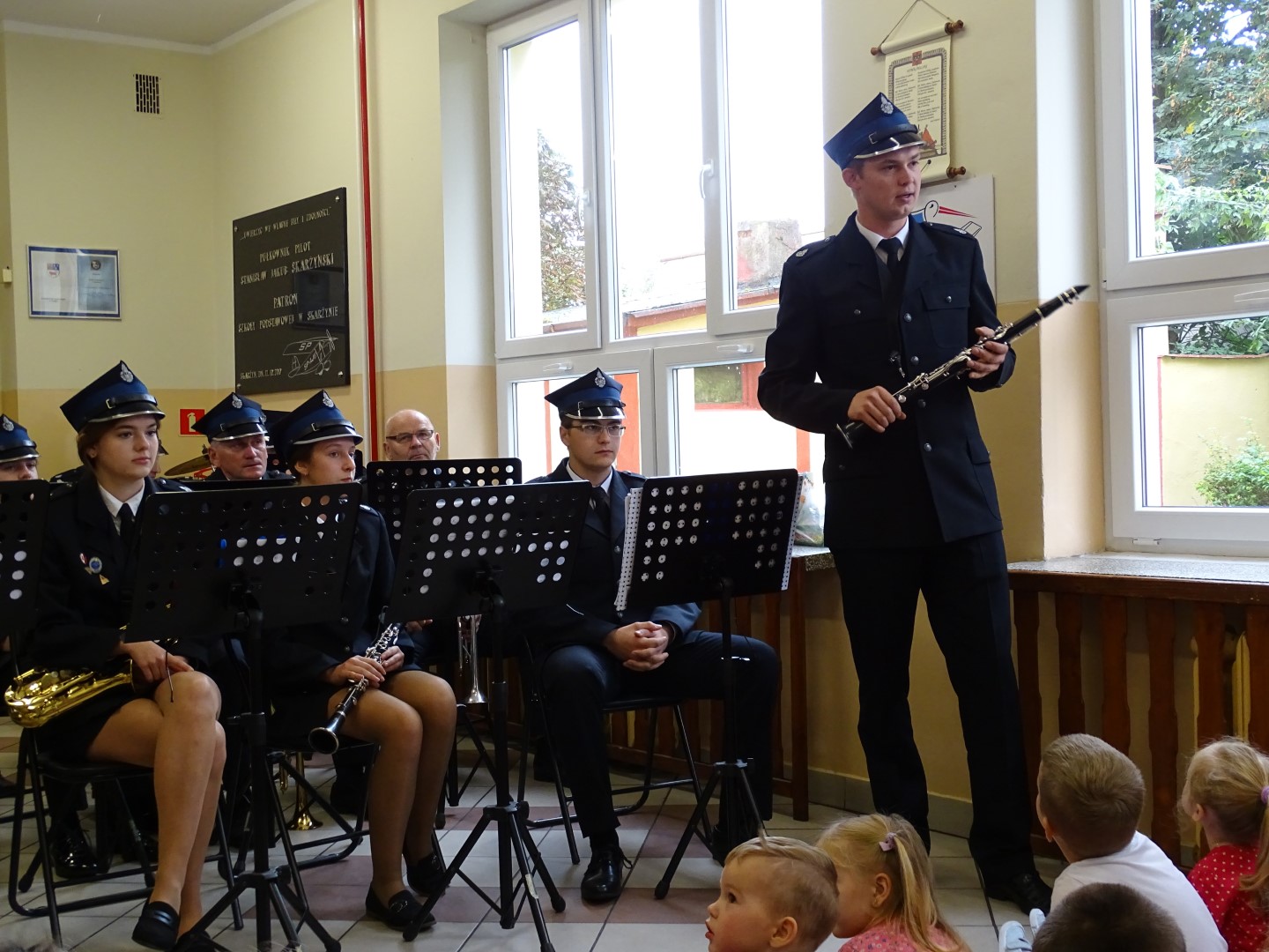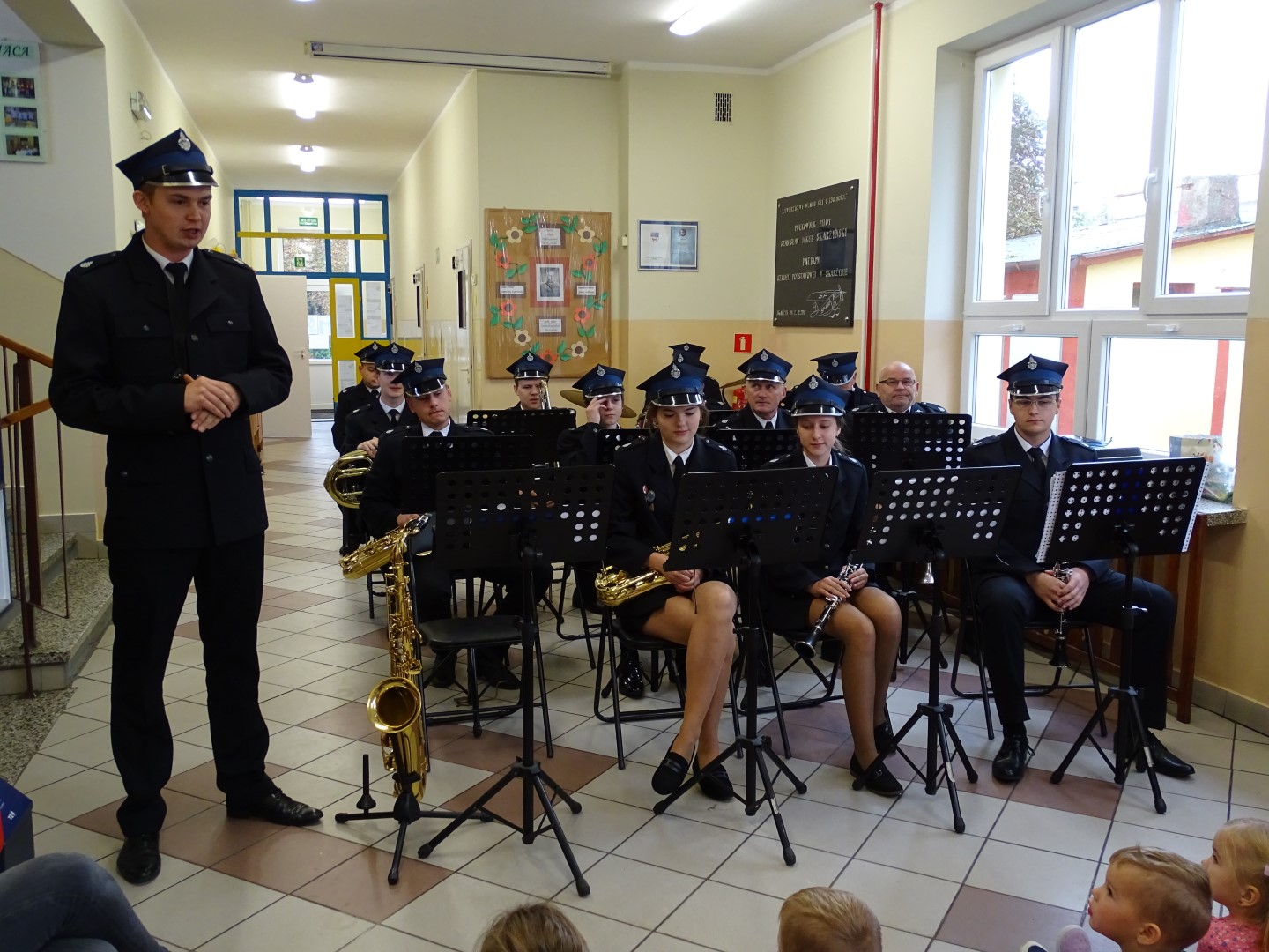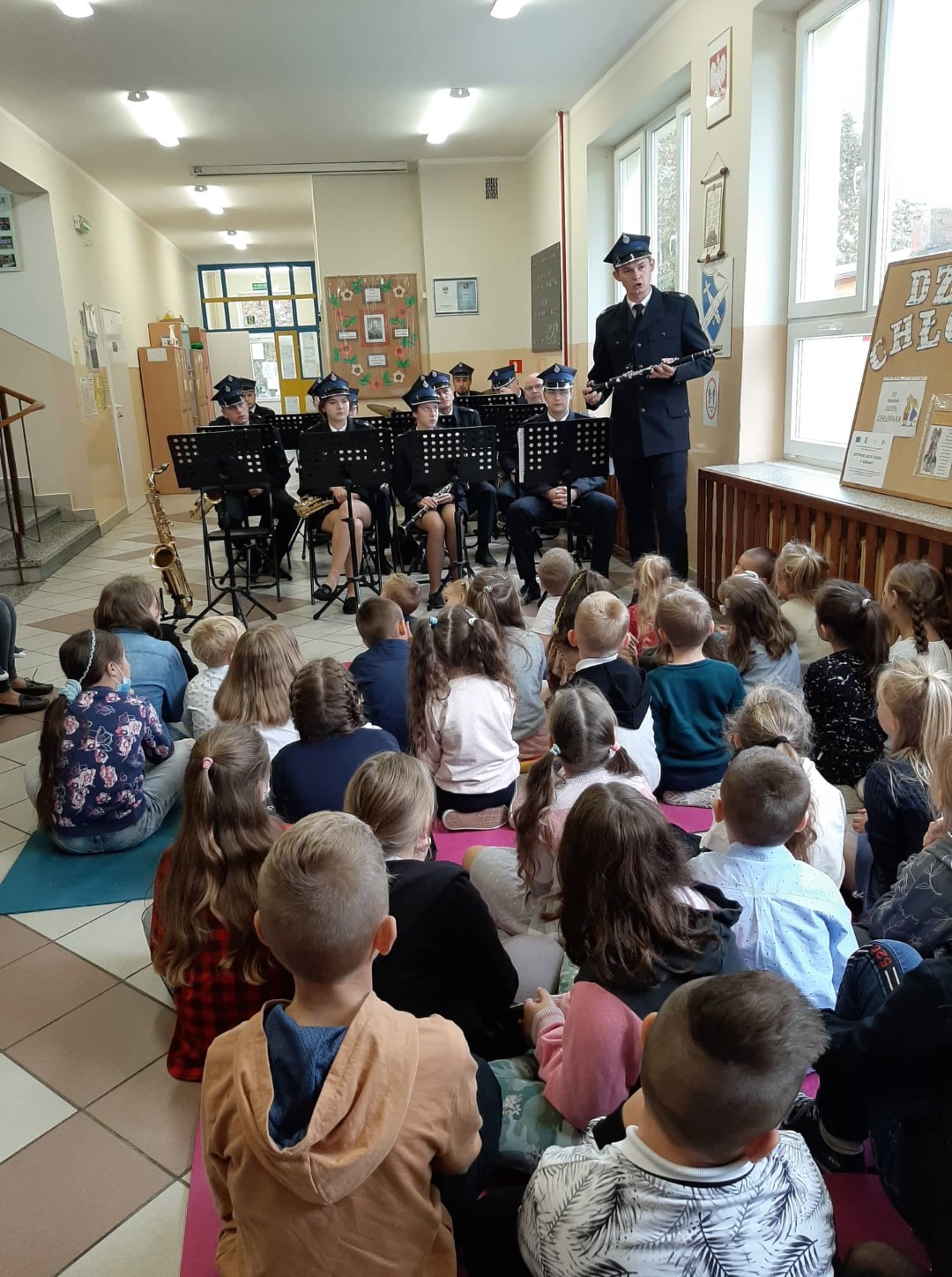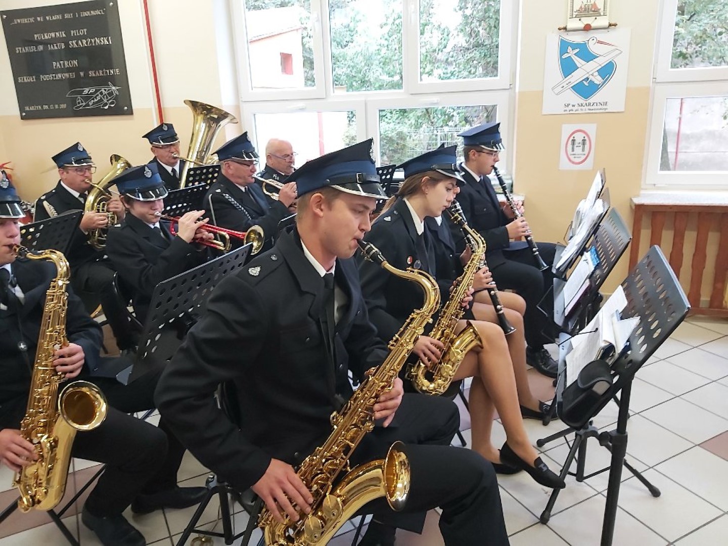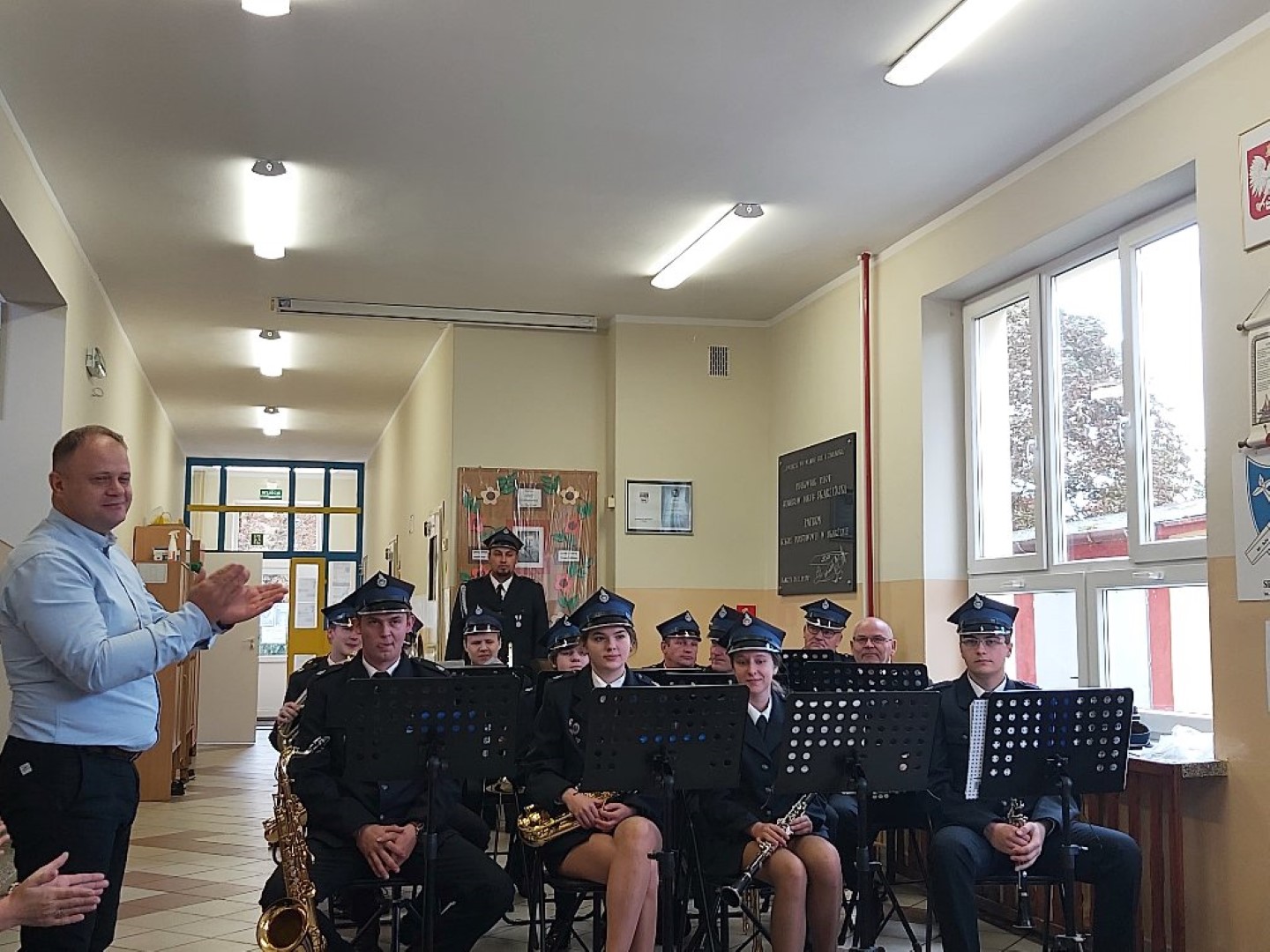 Dnia 30 września 2021 roku w naszej szkole odbyła się ,,Nietypowa lekcja muzyki’’ przeprowadzona w ramach realizowanego projektu przez Orkiestrę Dętą działającą przy OSP w Tokarach pod batutą p. Adriana Wałowskiego. Podczas przygotowanego programu kierownik zespołu p. Amadeusz Dzikowski opowiedział o zakresie działalności zespołu, przedstawił członków orkiestry oraz zaprezentował poszczególne instrumenty. Ponadto uczniowie i nauczyciele wysłuchali koncertu przygotowanego na tę okazję. Występ zespołu dostarczył dużo radości i był niewątpliwie ważnym elementem w muzycznej edukacji dzieci. Poszczególni uczniowie mieli bowiem okazję zagrać razem z orkiestrą kilka utworów. Podsumowaniem i sprawdzeniem zdobytej wiedzy podczas występu były konkursy oraz nagrody w formie słodkiego upominku. Na zakończenie uczniowie podziękowali gromkimi brawami za występ. Nie obyło się bez zaproszenia na kolejny koncert. Radość dzieci i zaangażowanie w tę niecodzienną lekcję w szkole przełoży się niewątpliwie na rozbudzenie muzycznych zainteresowań uczniów. Kierownik i kapelmistrz orkiestry zaprosili uczniów, którzy wyrażają zainteresowania muzyczne i chcą podjąć się nauki gry na instrumencie na czwartkowe próby orkiestry do sali OSP w Tokarach. Warto dodać, iż to niecodzienne wydarzenie miało miejsce w Dzień Chłopca oraz w przeddzień Światowego Dnia Muzyki, który przypada na pierwszego października