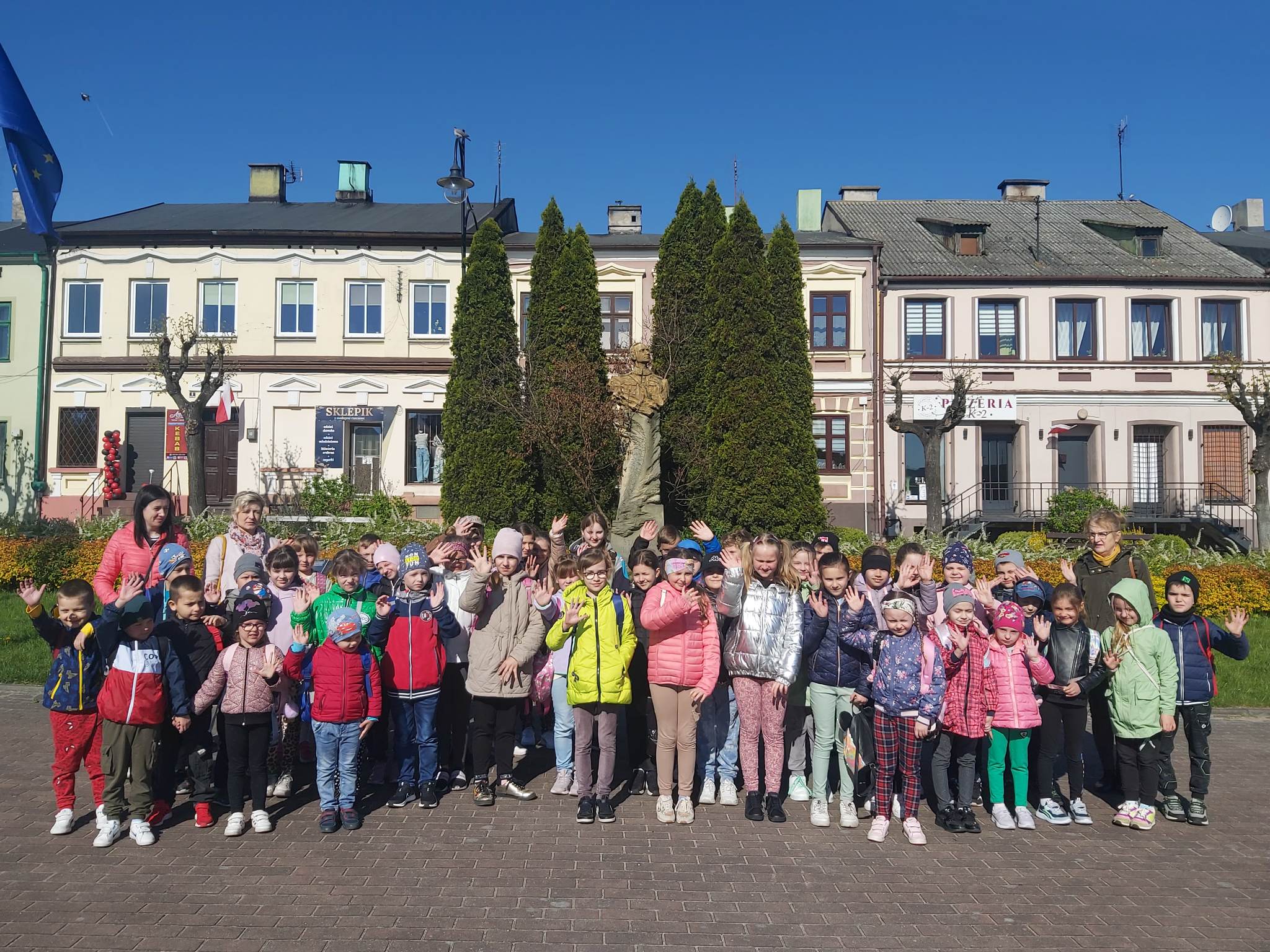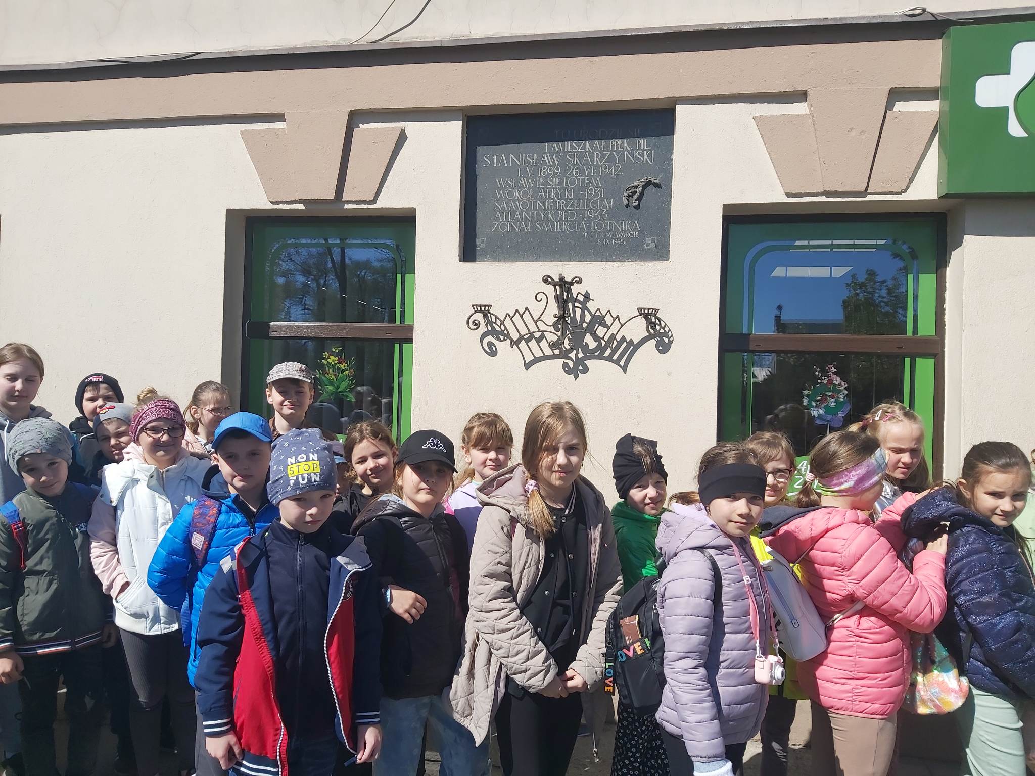 Natomiast uczniowie kl. I – IV oraz dzieci z oddziału przedszkolnego wybrały się na wycieczkę do Warty - miejsca urodzenia patrona naszej szkoły. Wizyta w Warcie rozpoczęła się od złożenia kwiatów pod pomnikiem płk. pil. Stanisława Jakuba Skarżyńskiego. Następnie uczestnicy wycieczki odwiedzili Muzeum Miasta i Rzeki, gdzie zapoznali się z wieloma ciekawymi informacjami i obejrzeli zgromadzone eksponaty, w tym również te związane z postacią pilota Skarżyńskiego, który dokładnie 90 lat temu odbył brawurowy lot nad Atlantykiem. Podczas spaceru uliczkami Warty dzieci zobaczyły Kościół pw. św. Mikołaja, Szkołę Podstawową im. kpt. Stanisława Skarżyńskiego, Kościół i Klasztor Ojców Bernardynów oraz dom przy ul. S. Skarżyńskiego, w którym urodził się nasz patron. W drodze powrotnej uczestnicy wycieczki zatrzymali się w Ostrowie Warckim, gdzie zjedli obiad oraz spacerowali po Przystani Jachtowej.