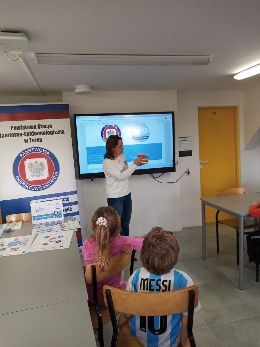 Podczas zajęć uczniowie klas I–III rozmawiali o tym, dlaczego dbanie o zęby jest tak ważne. Wspólnie poznaliśmy rodzaje zębów, ich funkcje oraz prawidłowy sposób mycia. Dzieci dowiedziały się także, skąd bierze się próchnica i dlaczego regularne wizyty u dentysty to podstawa zdrowego uśmiechu.
