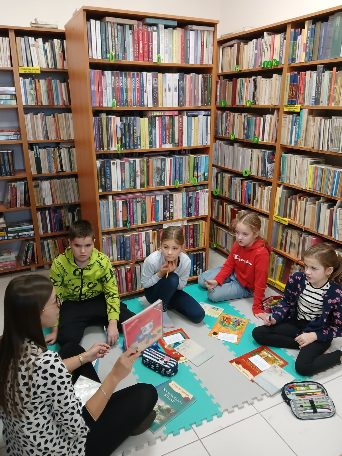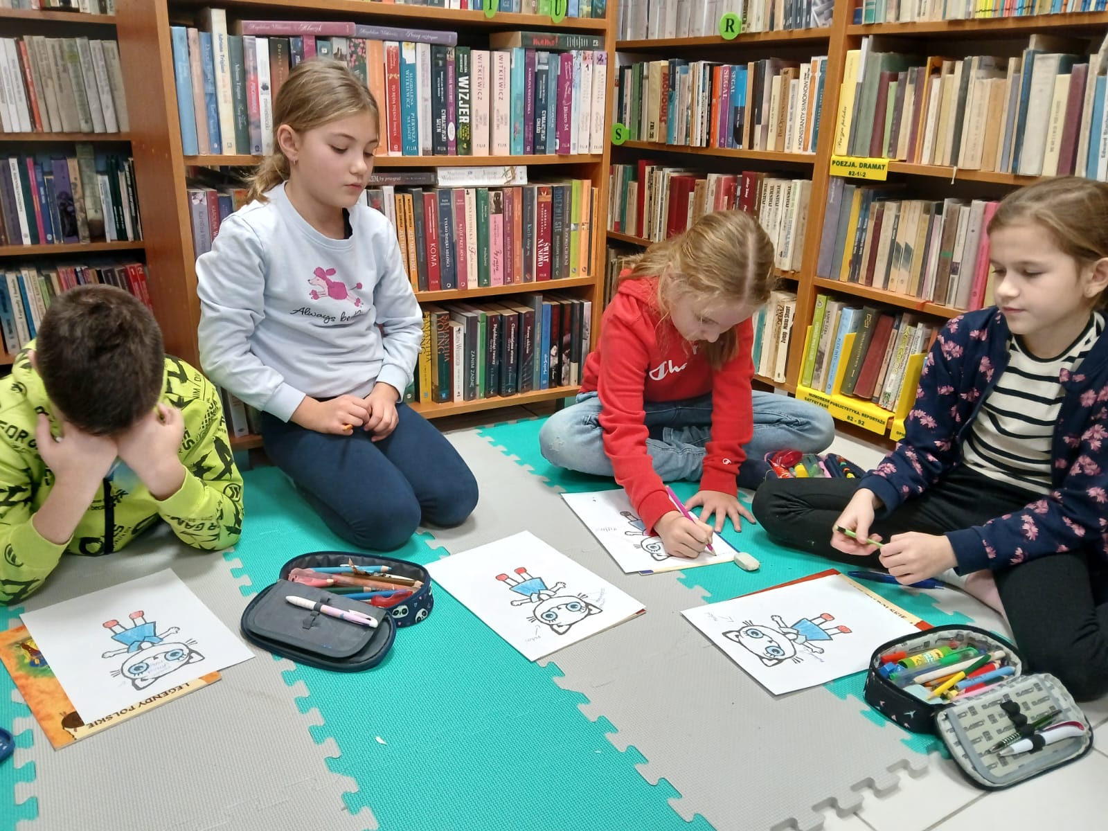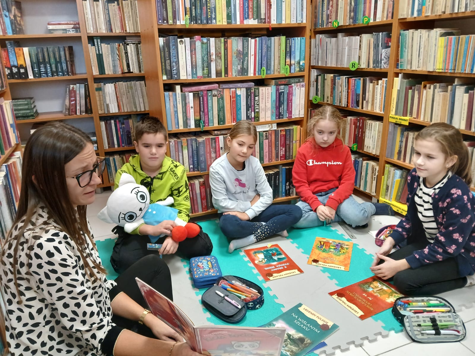 W naszej szkole rozpoczęliśmy jego realizację z uczniami klasy II pod przewodnictwem p. Magdaleny Zduniak – bibliotekarki z Biblioteki Publicznej Gminy Kawęczyn z siedzibą w Kowalach Pańskich, Filia w Tokarach Pierwszych. Pierwsze zajęcia odbyły się 22 października 2024 r. w oparciu o książkę pt. ,,Pan Kluska i żaglowiec”. Kolejne zajęcia z tego cyklu odbyły się 13 listopada 2024 r. w siedzibie Biblioteki Filialnej w Tokarach Pierwszych. Tam dzieci poznały pracę w bibliotece, same zakładały karty katalogowe oraz rozmawiały o emocjach w oparciu o przygody zapisane na stronach książki pt. ,,Kicia Kocia”. Uczniowie z niecierpliwością czekają na kolejne, grudniowe spotkanie z Panią Madzią i poznanie przygód następnych książkowych bohaterów.