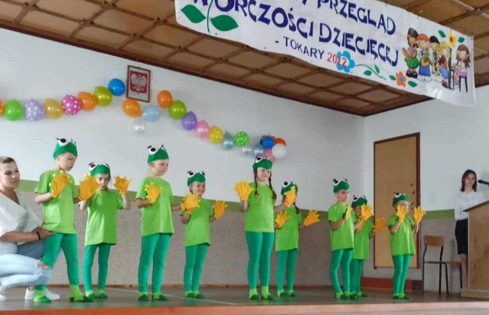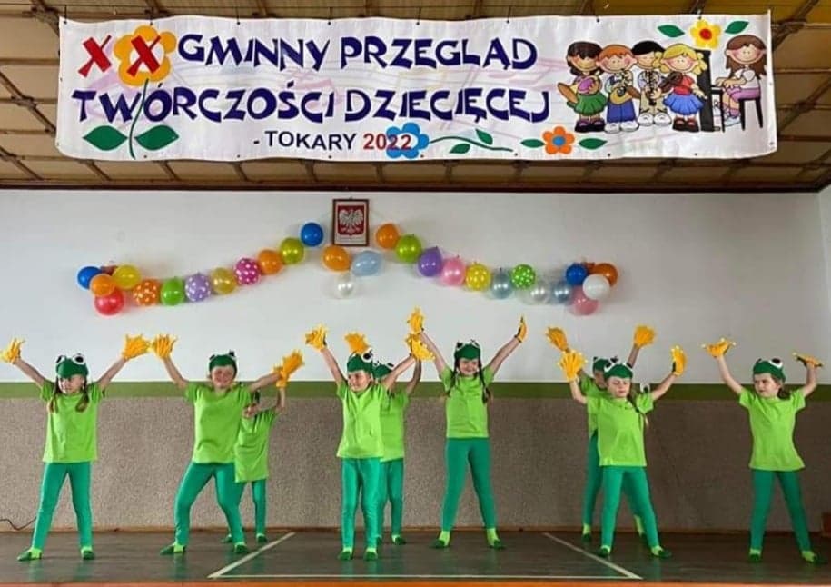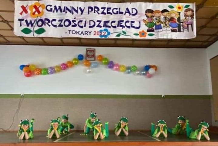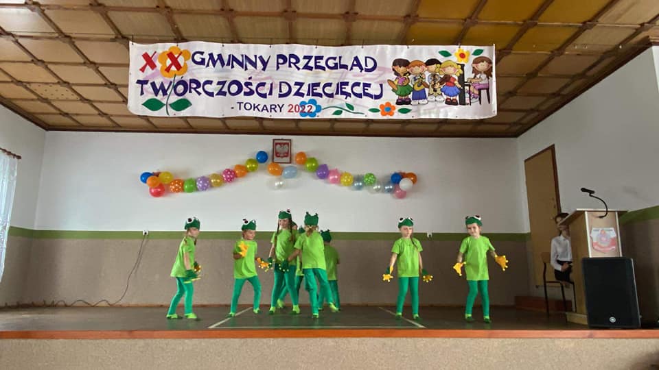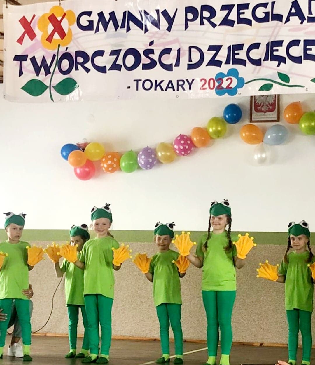 W dniu 09.06.2022 odbył się „ XX Przegląd Twórczości Dziecięcej”, który w tym roku zorganizowała Szkoła Podstawowa im. Jana Pawła II w Tokarach Pierwszych. W przeglądzie wzięły udział cztery gminne placówki przedszkolne. Występy dzieci cieszyły się dużym zainteresowaniem. Nasze przedszkolaki zaprezentowały się w tańcu” Żabki. Swoim oryginalnym strojem wzbudziły uznanie publiczność. Za swoje piękne występy dzieci zostały nagrodzone gromkimi brawami i nagrodami.