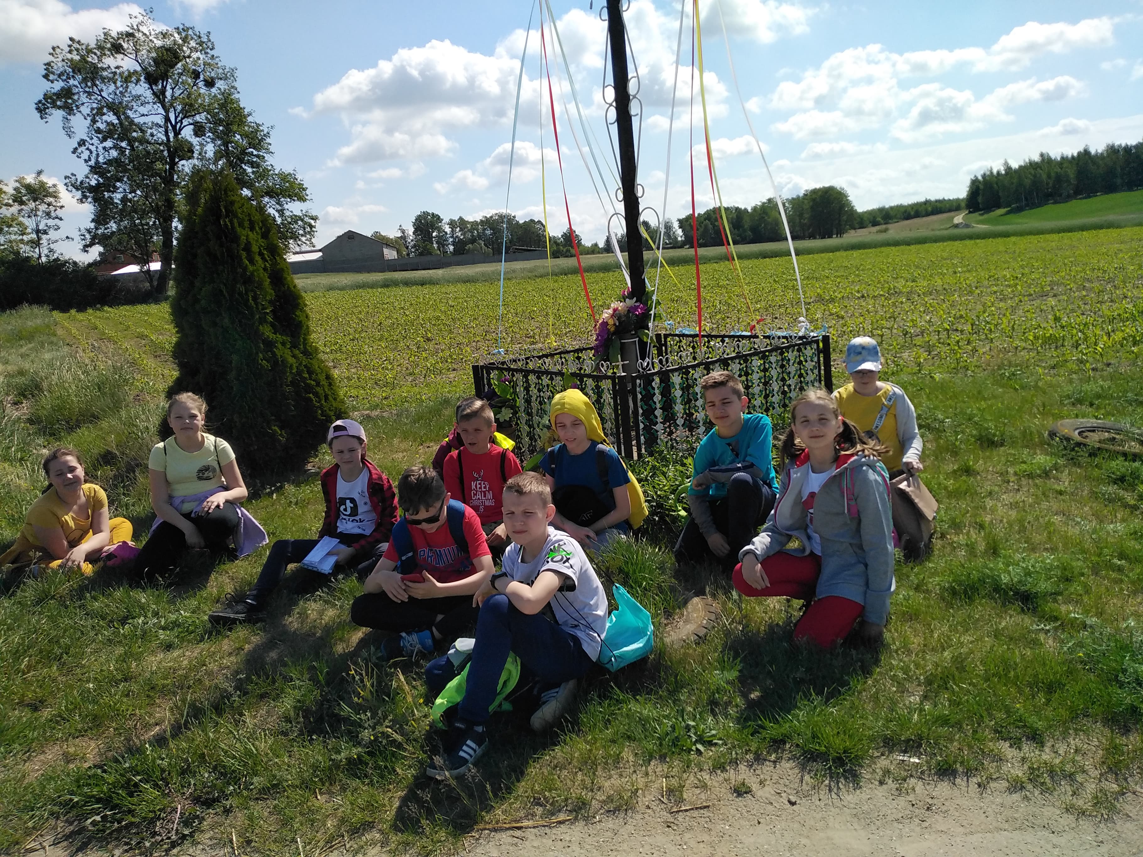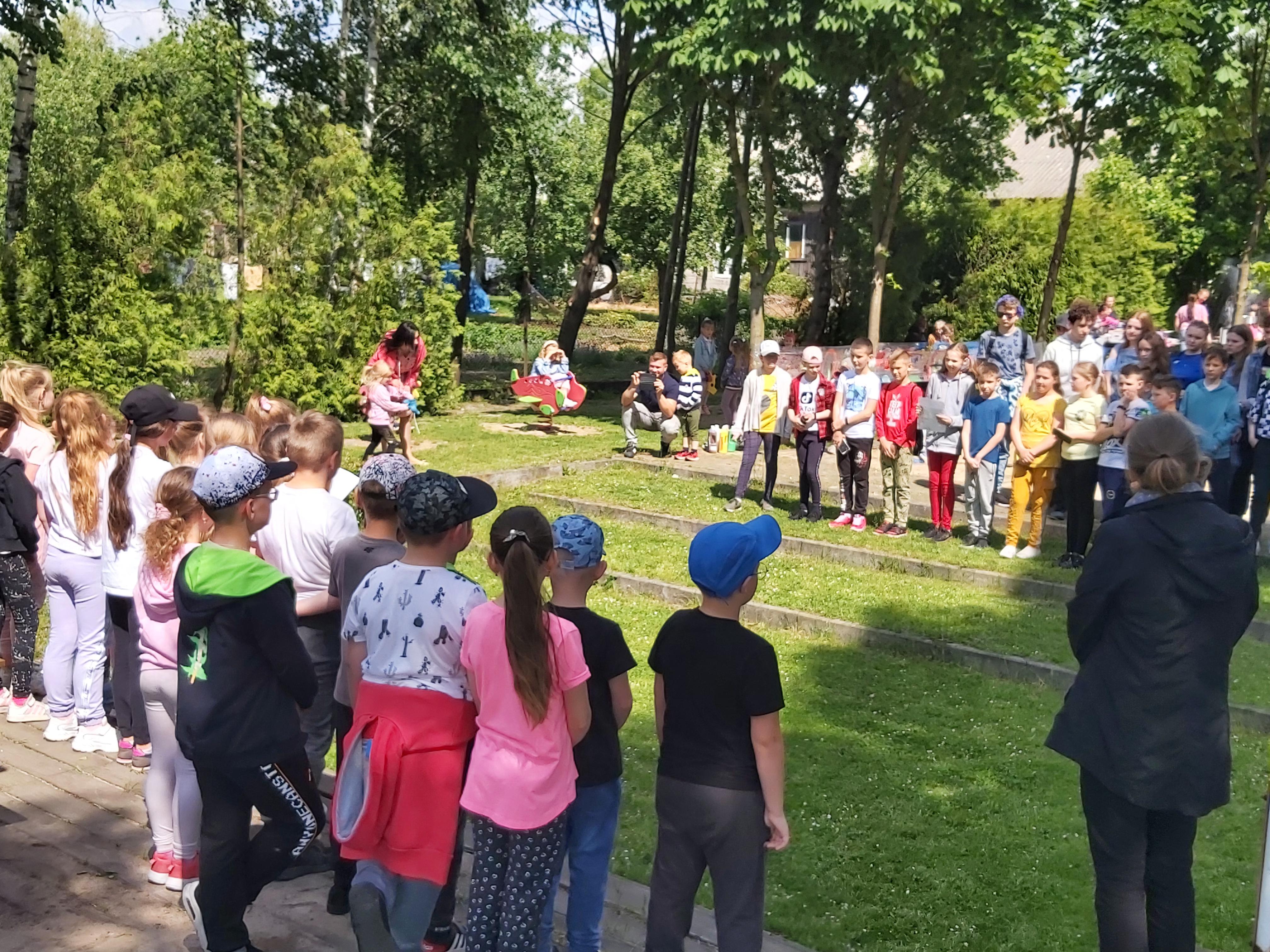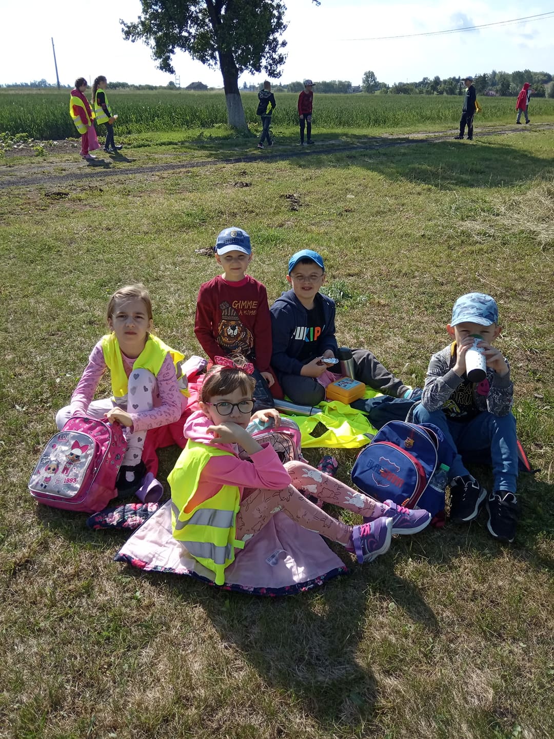 Po dwugodzinnym spacerze wśród pól, lasów, kwitnących drzew i kwiatów wszyscy wrócili na szkolne boisko, na którym rodzice uczniów czekali z kiełbaską z grilla, popcornem, watą cukrową i innymi przysmakami. Na zakończenie rajdu odbyło się spotkanie wszystkich drużyn i podsumowanie zadań wykonywanych podczas wędrówki.