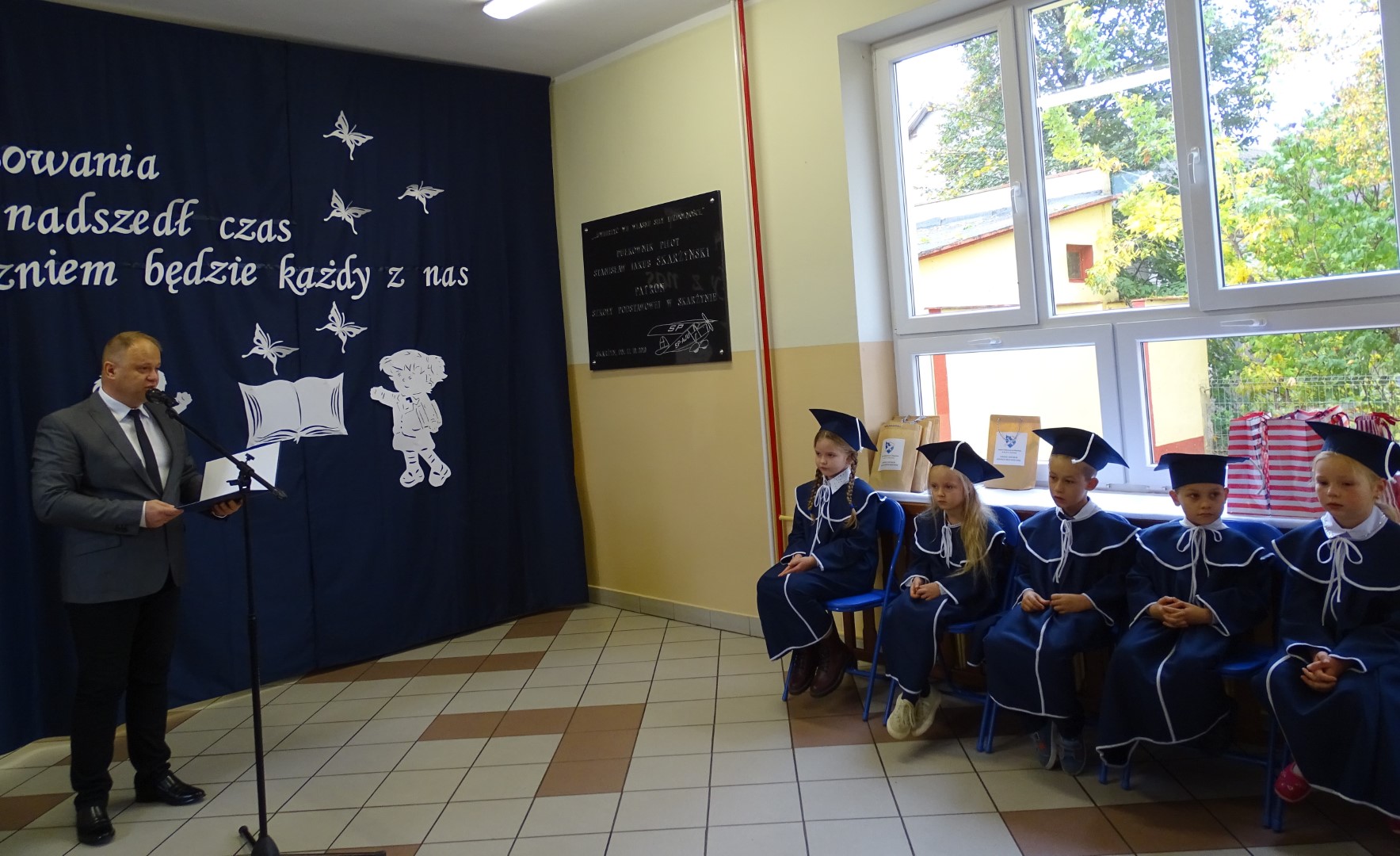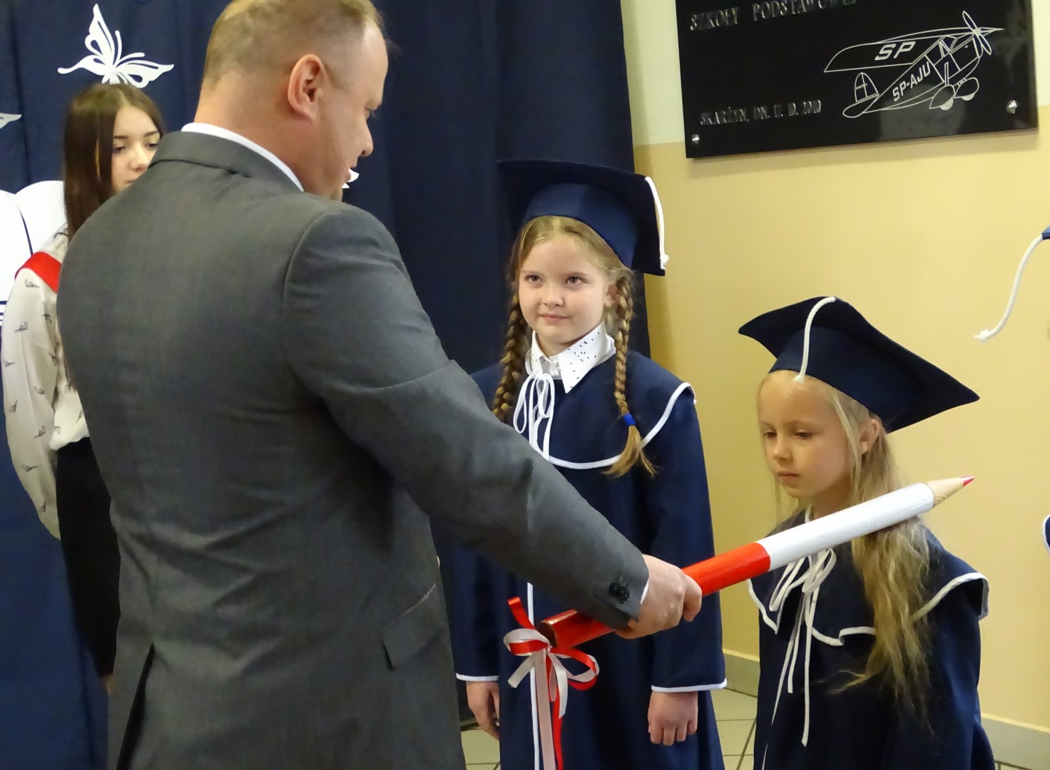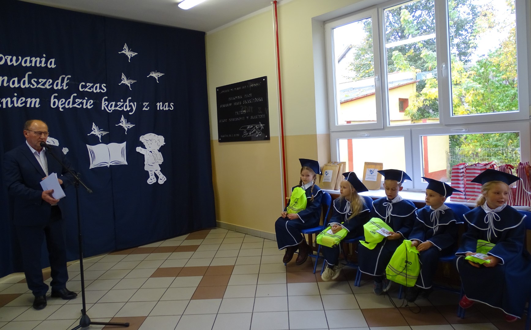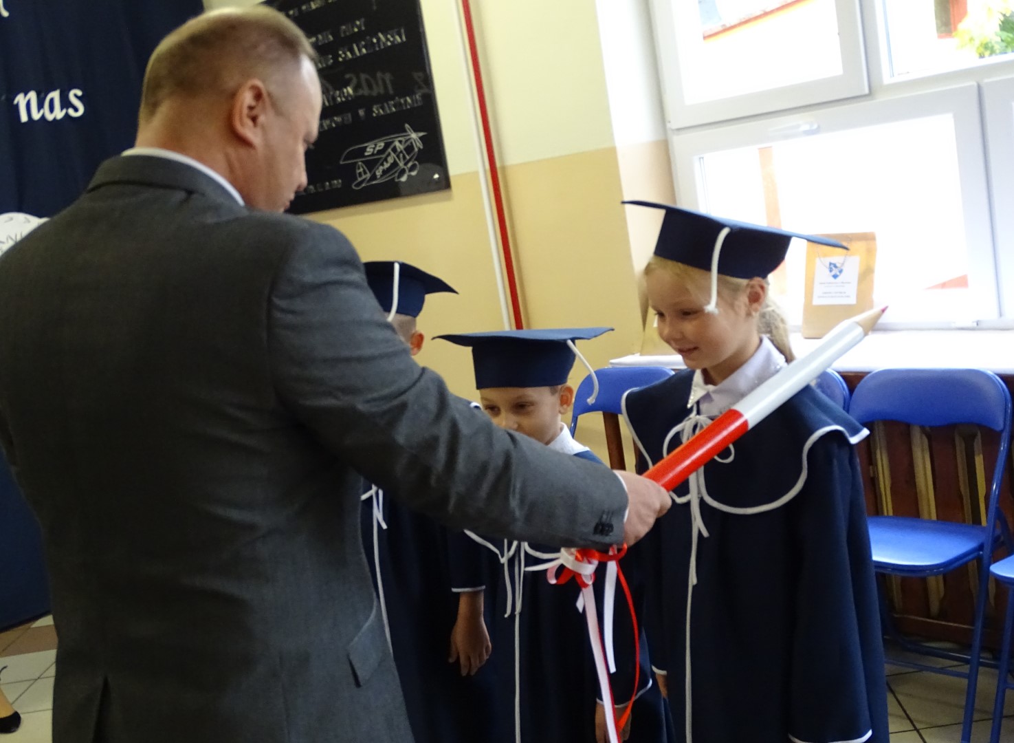 Po złożeniu ślubowania każdy z pierwszoklasistów został pasowany przez dyrektora szkoły p. Krzysztofa Jesionka  na ucznia Szkoły Podstawowej im. płk. pil. St. J. Skarżyńskiego w Skarżynie. Od tej chwili stali się oni nowymi członkami naszej szkolnej społeczności.