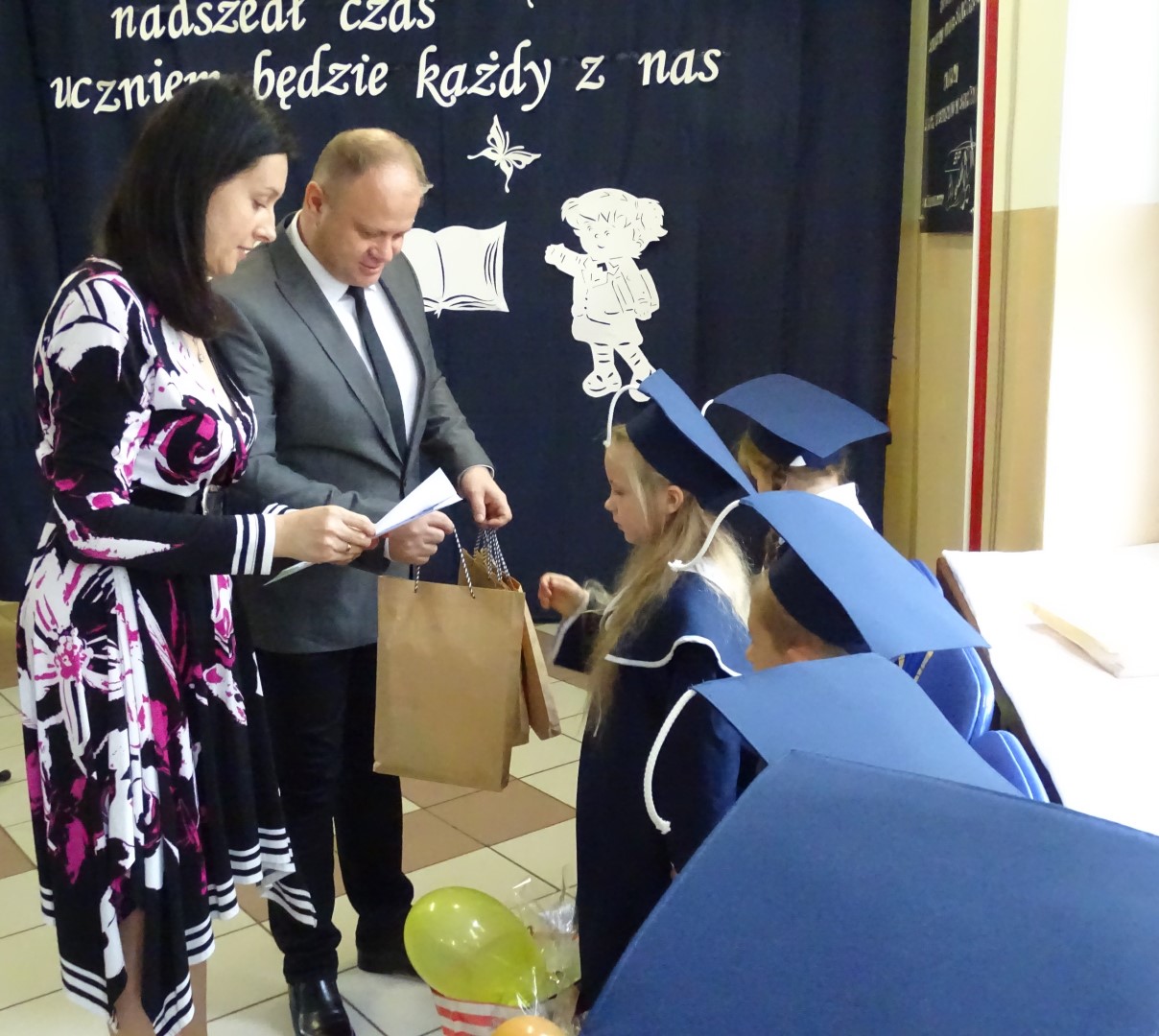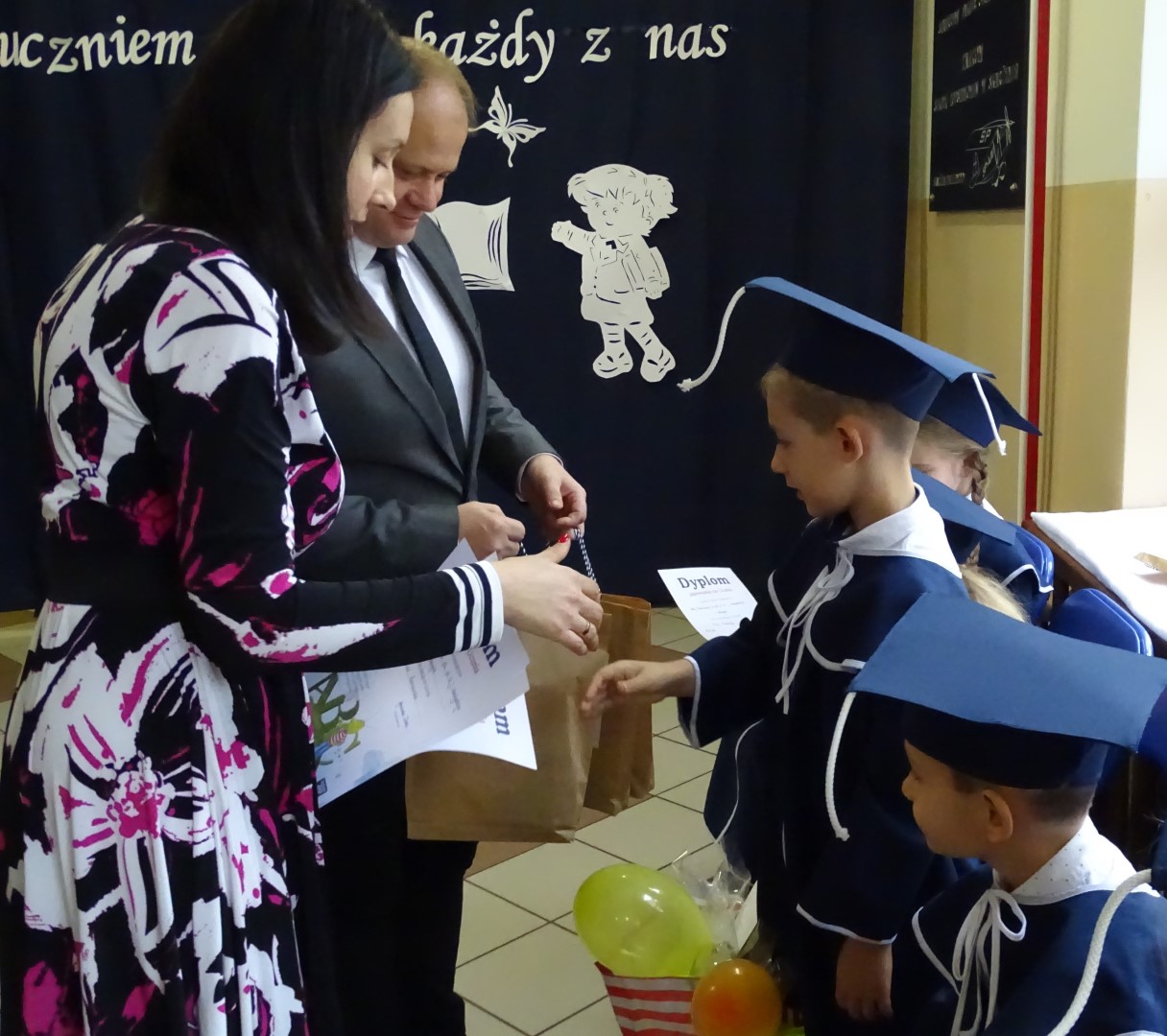 Po akcie pasowania nastąpiły okolicznościowe przemówienia, składanie życzeń oraz wręczanie pamiątkowych upominków. Uroczystość zakończyła się słodkim poczęstunkiem przygotowanym przez rodziców, którym serdecznie dziękujemy za ogromne wsparcie i zaangażowanie. Ten dzień na długo zostanie w pamięci wszystkich, a szczególnie uczniów klasy I naszej szkoły.