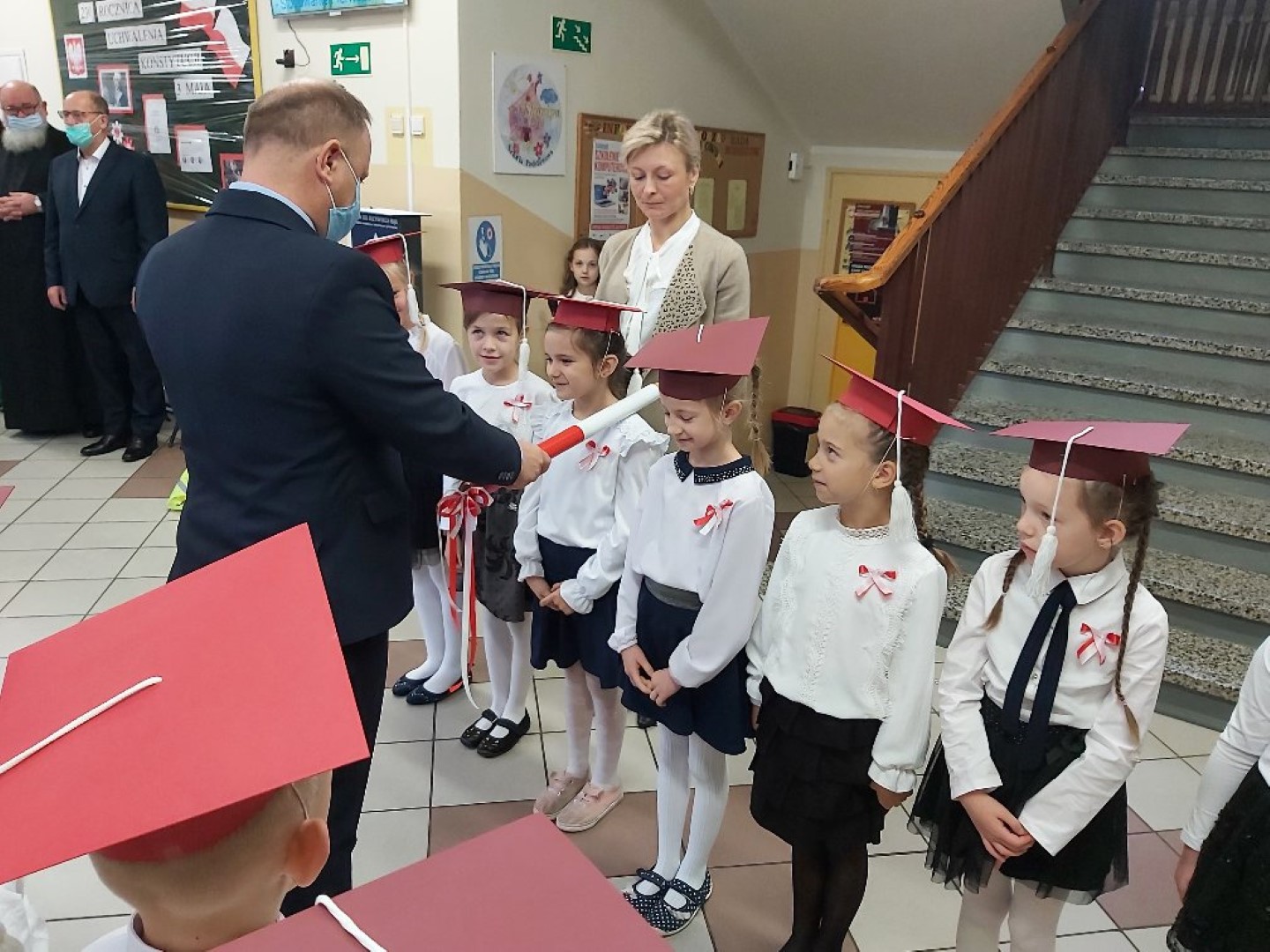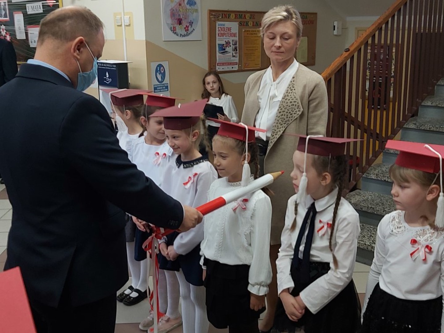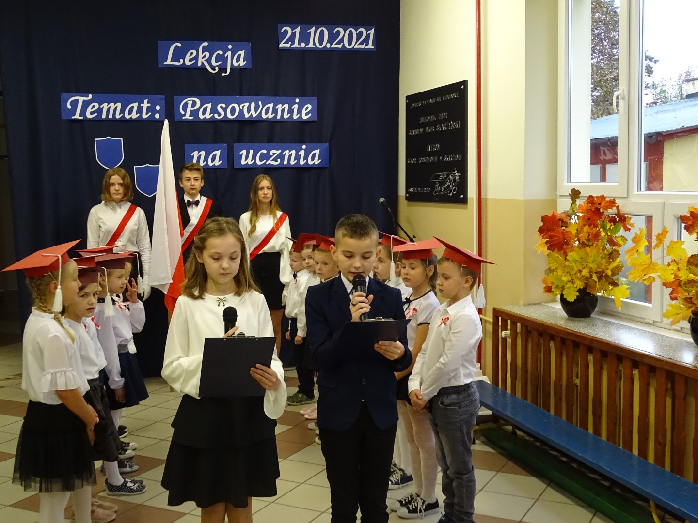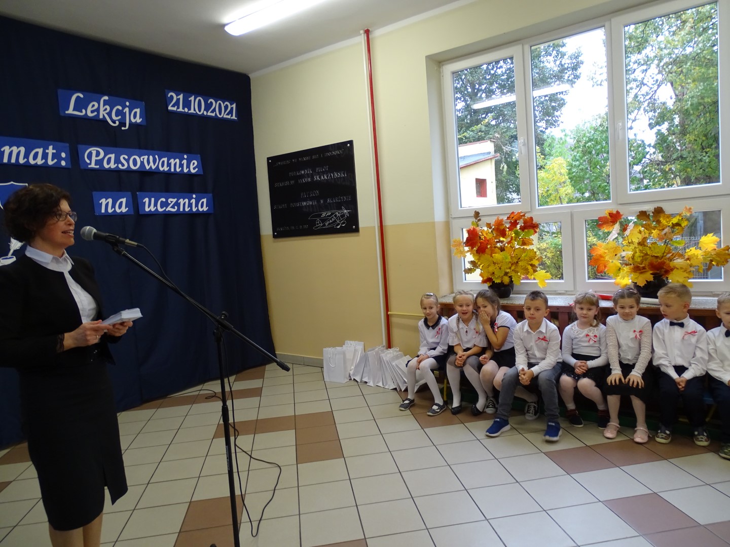 21 października 2021r. najmłodsi uczniowie Szkoły Podstawowej im. płk. pil. Stanisława Jakuba Skarżyńskiego w Skarżynie brali udział w bardzo ważnym i podniosłym dla nich wydarzeniu. W obecności rodziców, nauczycieli, zaproszonych gości, przedstawicieli Samorządu Uczniowskiego, pierwszoklasiści ślubowali być dobrymi Polakami, uczniami, kolegami i dziećmi dla swoich rodziców. Po ślubowaniu rodzice dzieci złożyli przyrzeczenie. W kolejnym punkcie uroczystości dyrektor szkoły pan Krzysztof Jesionek pasował pierwszoklasistów na uczniów skarżyńskiej szkoły. Po pasowaniu uczniowie z klasy I przedstawili bogaty i ciekawy program artystyczny, w którym wspaniale zaprezentowali swoje umiejętności i talenty. Dzieci otrzymały życzenia, gratulacje i upominki od zaproszonych gości: pana Jana Nowaka - Wójta Gminy Kawęczyn, pani Jolanty Cajdler - przedstawicielki Rejonowego Banku Spółdzielczego w Malanowie, pani Róży Froncali – przewodniczącej Rady Rodziców, księdza Piotra Bamberskiego – proboszcza parafii w Przespolewie oraz rodziców, którym serdecznie dziękujemy za ogromne zaangażowanie w przygotowanie uroczystości.