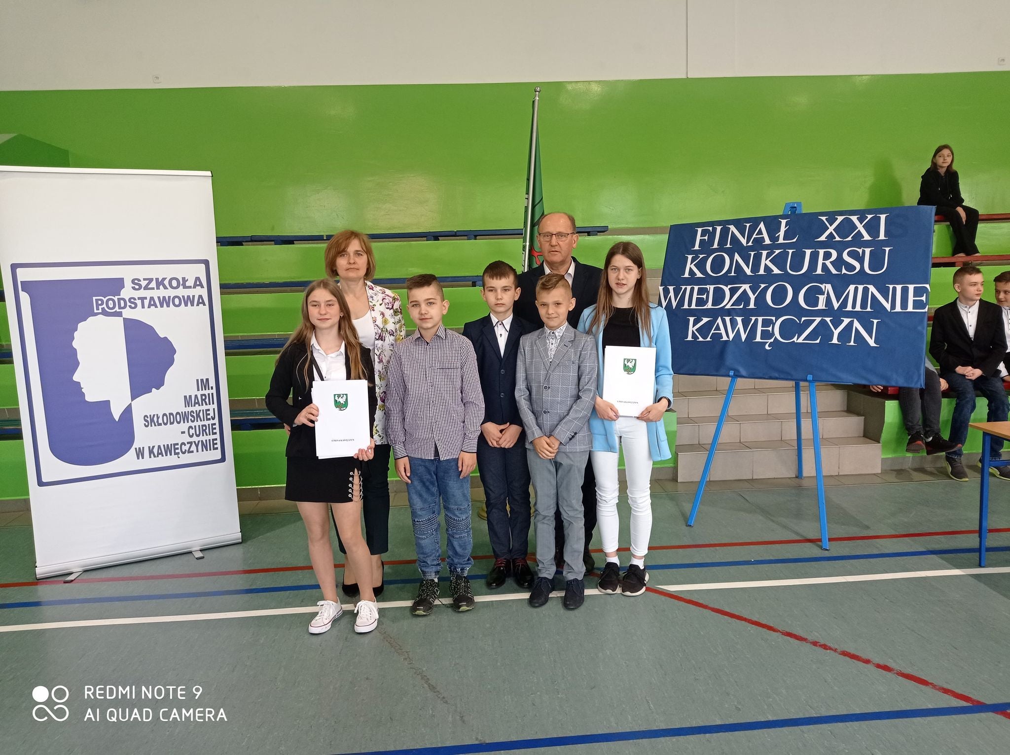 W dniu 13 maja 2022 r. uczniowie naszej szkoły wzięli udział w XXI Konkursie Wiedzy o Gminie Kawęczyn. Naszą placówkę reprezentowali uczniowie: Sebastian Laksander, Jakub Grzywacz, Kacper Werbiński, Kamila Michalak, Patrycja Szymańska. W kategorii klas IV-VI  miejsce I zajął Sebastian Laksander, natomiast miejsce III zajął Kacper Werbiński.  Warto dodać, iż wszyscy uczniowie biorący udział w tegorocznym konkursie wykazali się wysokim poziomem wiedzy. Życzymy dalszych sukcesów.