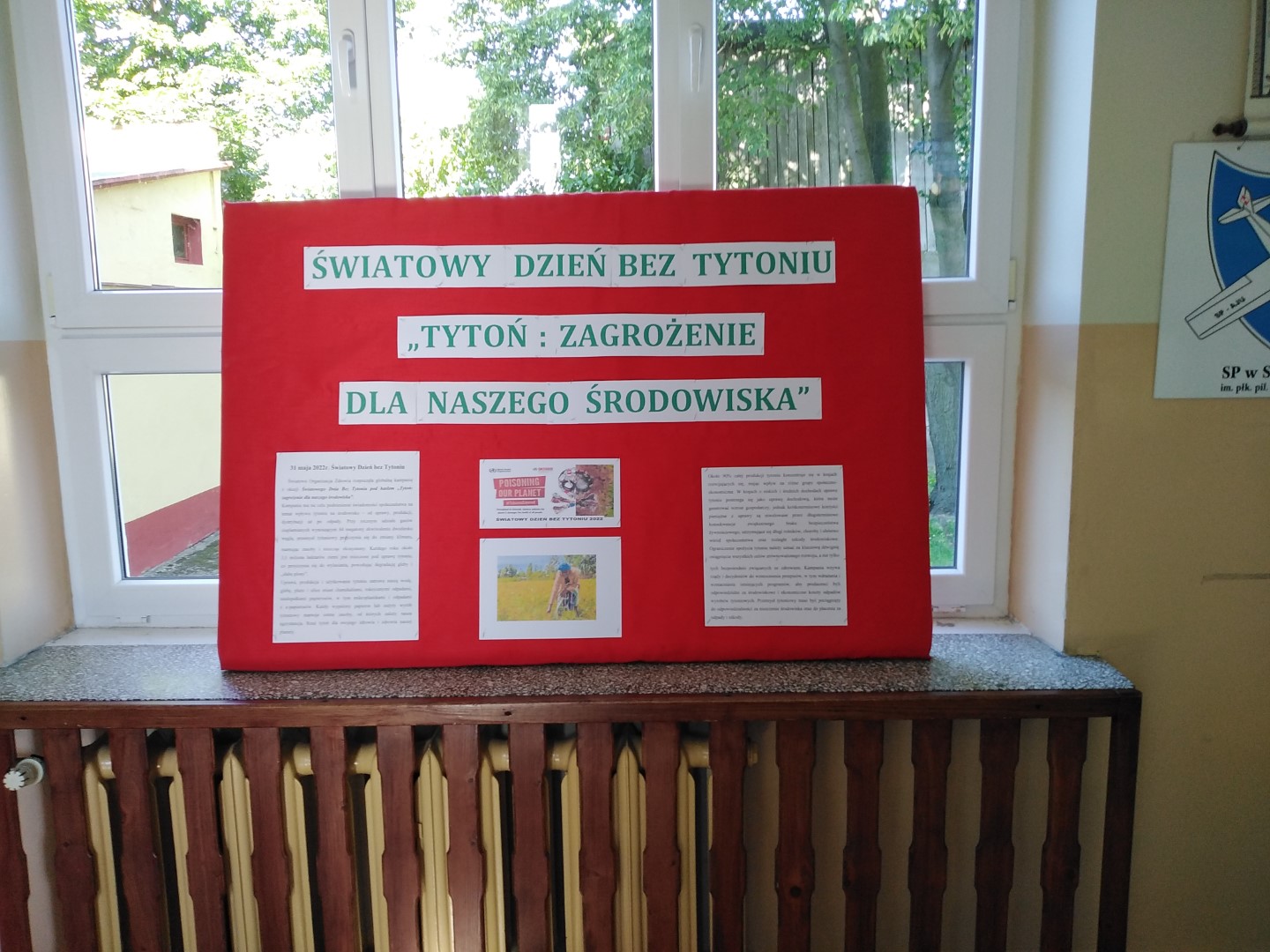 Szkoła od wielu lat włącza się w obchody Światowego Dnia bez Tytoniu,  który przypada 31 maja. Światowa Organizacja Zdrowia prowadzi globalną kampanię z okazji Światowego Dnia Bez Tytoniu pod hasłem „Tytoń: zagrożenie dla naszego środowiska”. Działanie to miało na celu podniesienie świadomości społeczeństwa na temat wpływu tytoniu na środowiskopocząwszy od uprawy, produkcji, dystrybucji aż po odpady. W ramach akcji uczniowie naszej szkoły przygotowali plakaty, które zostały wyeksponowane na korytarzu szkolnym. Wzięli również udział w pogadance na temat negatywnego wpływu nikotyny na organizm człowieka.