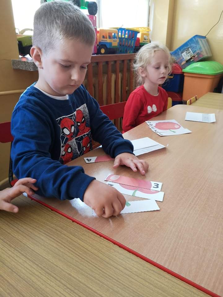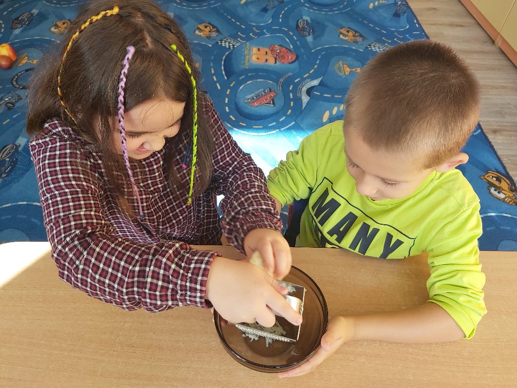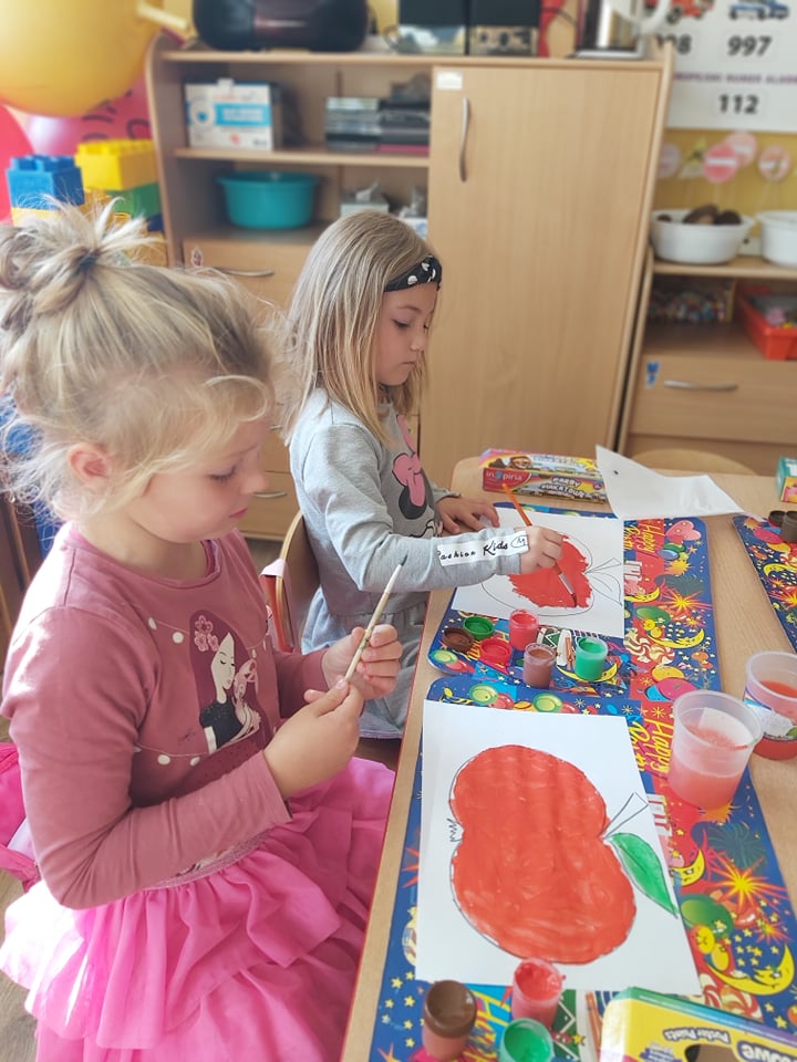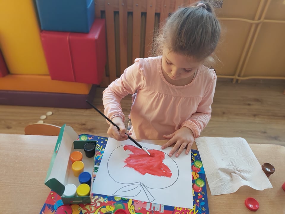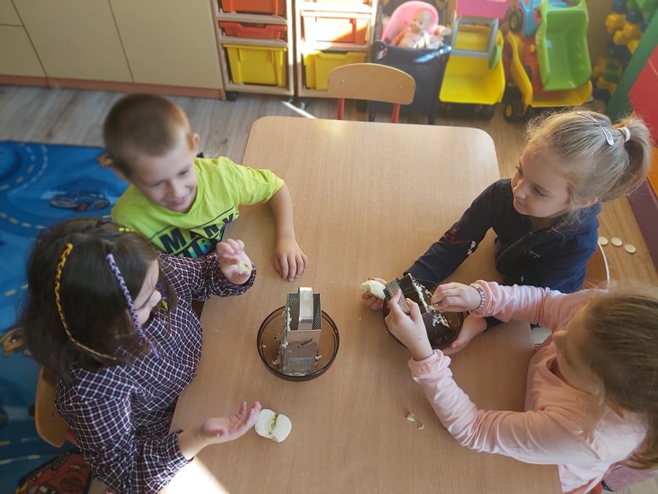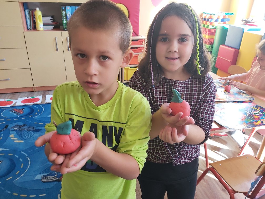 Tego dnia wszystkie gry i zabawy zarówno te ruchowe jak i dydaktyczne były związane tematycznie z jabłkiem, m.in.: „Kelnerzy”, „Gdzie schowało się jabłko?”, „Jabłko – puzzle”. Wszystkie dzieci tańczyły do piosenek „Jabłuszko rumiane” i „Małe czerwone jabłuszko”. Po wspólnych zabawach nadszedł czas na poczęstunek – oczywiście w roli głównej z jabłkami.