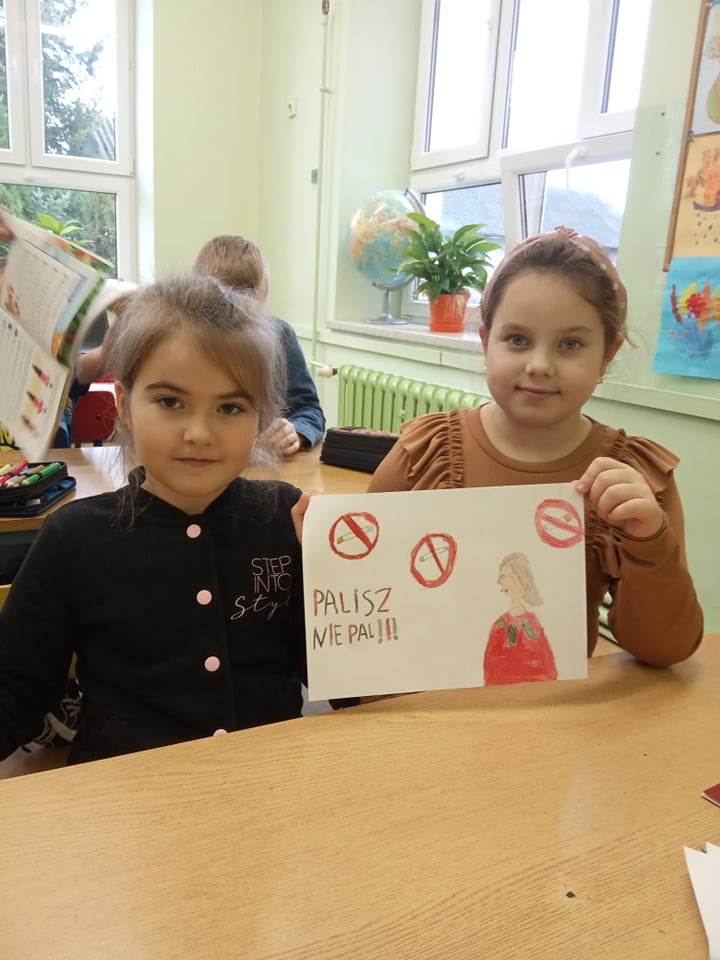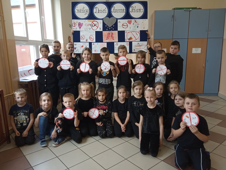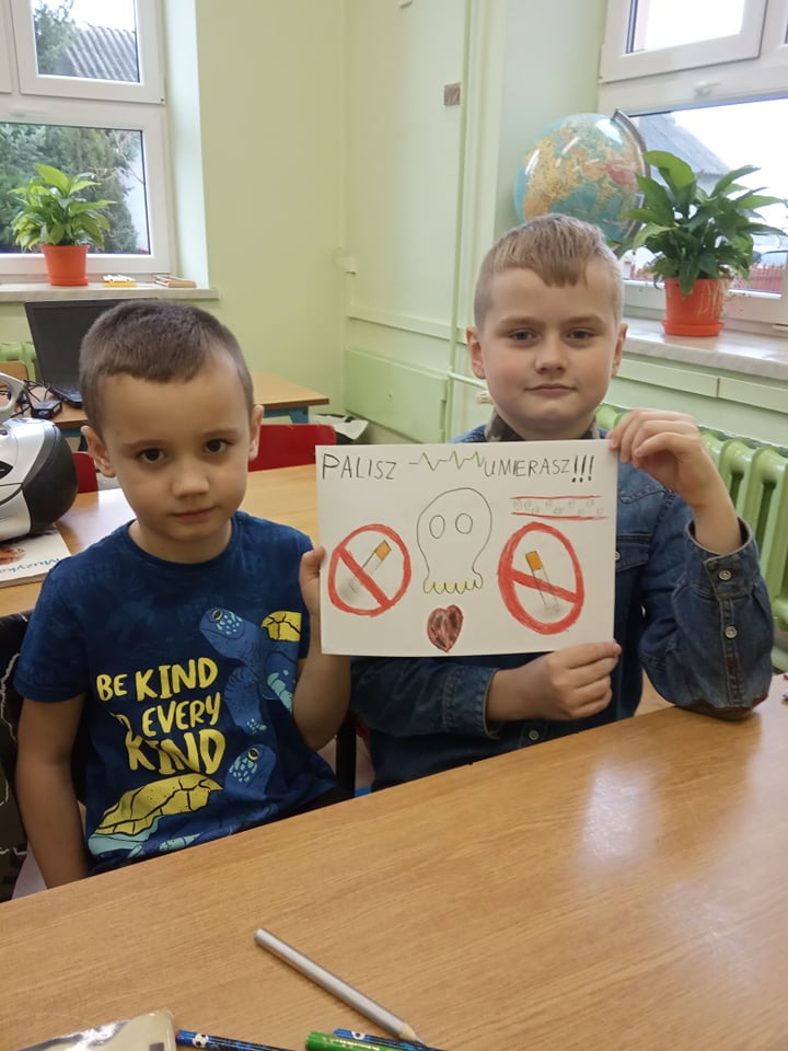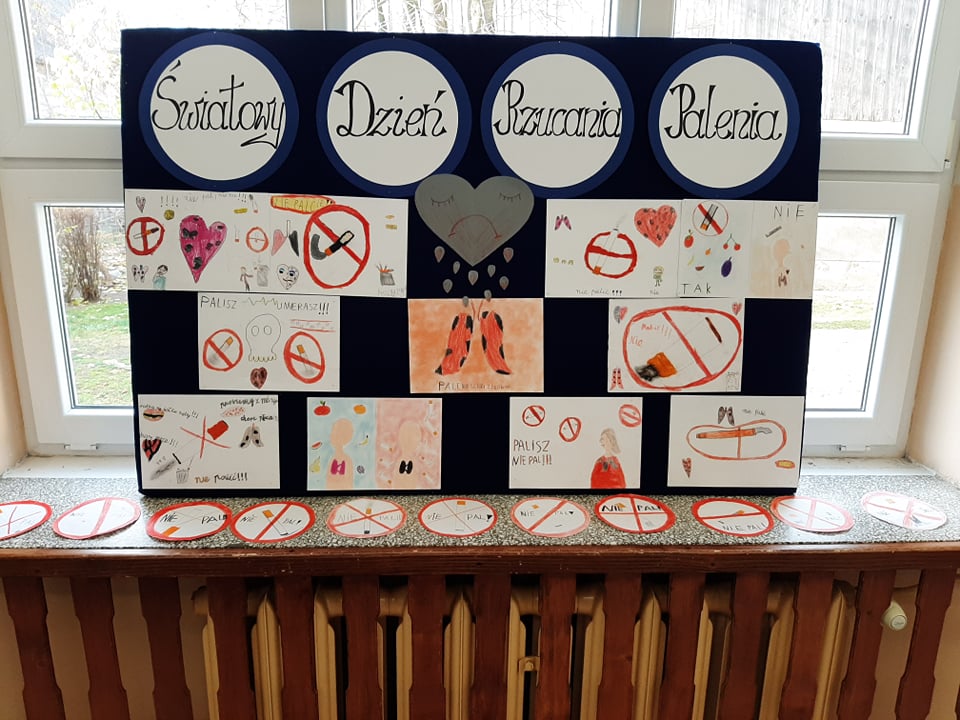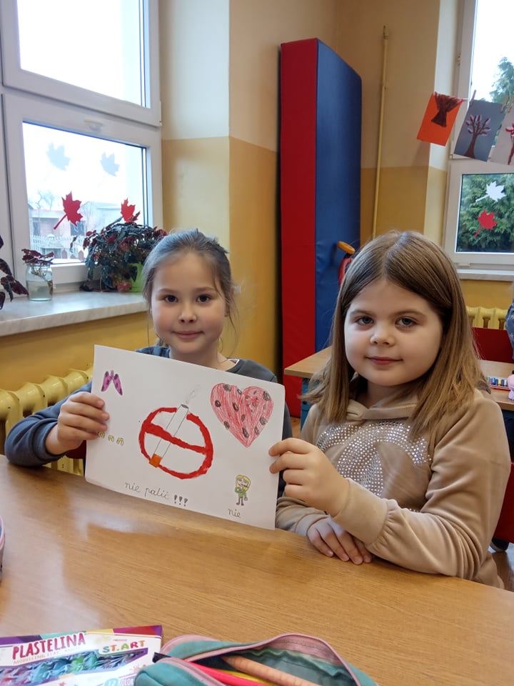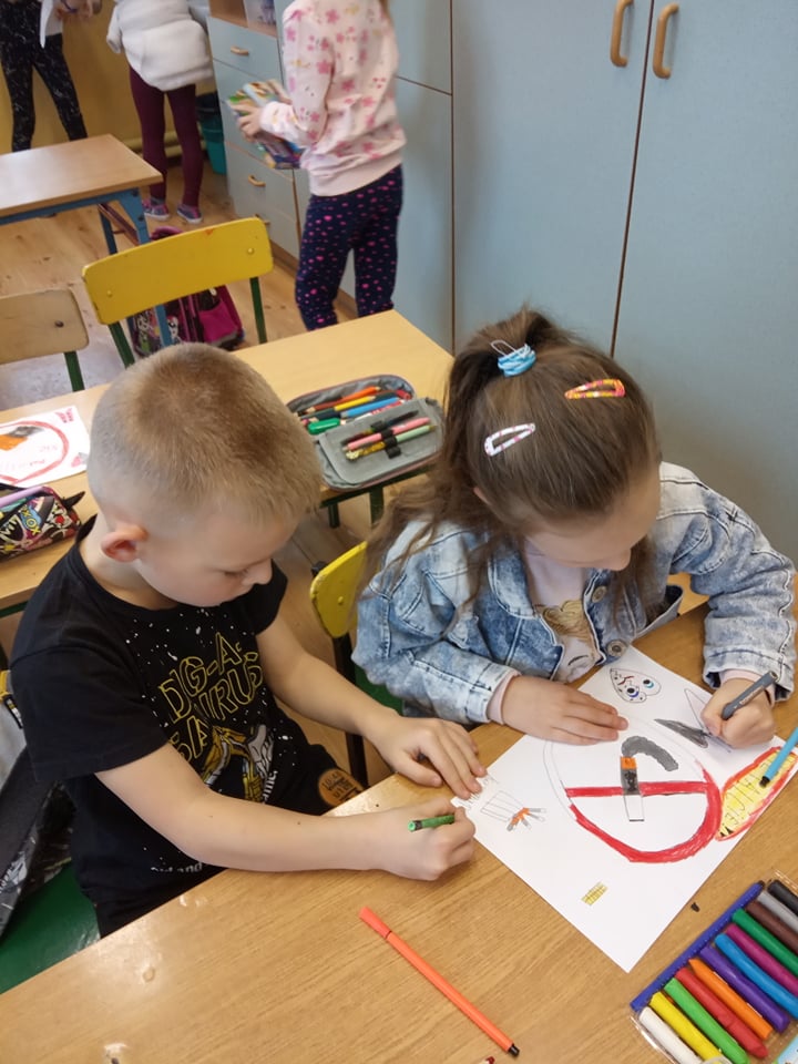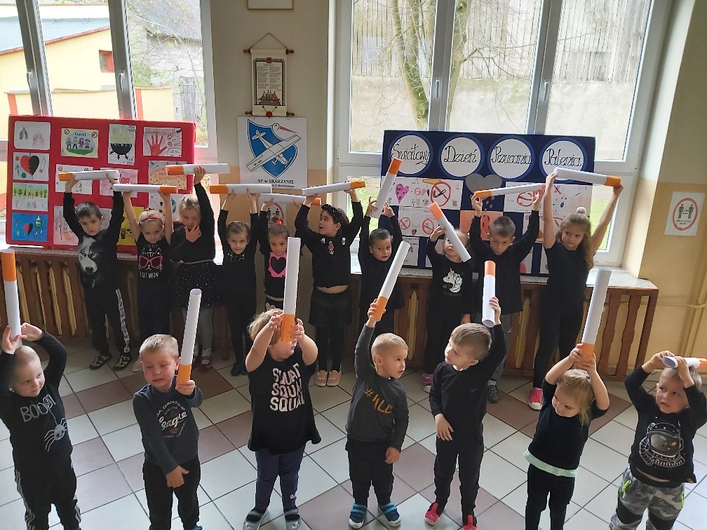 W ramach profilaktyki antytytoniowej 18 listopada 2021r. w oddziale przedszkolnym obchodziliśmy  Światowy Dzień Rzucania Palenia Tytoniu. Tego dnia zostały przeprowadzone zajęcia edukacyjne, podczas których wychowawczynie oraz pielęgniarka szkolna przybliżyły przedszkolakom zagadnienia dotyczące palenia papierosów oraz ich negatywnych skutków. Nie zabrakło też wierszy i piosenek nawiązujących do tego tematu. Podsumowaniem zajęć było symboliczne zniszczenie papierosów wykonanych przez dzieci z  papieru.