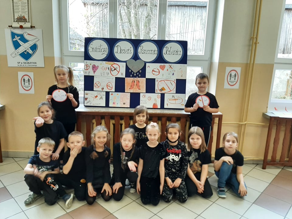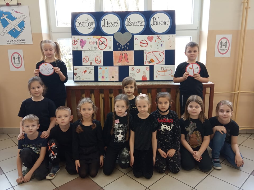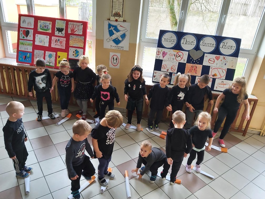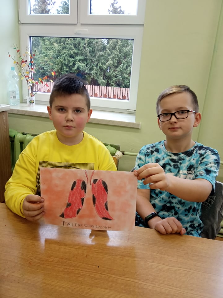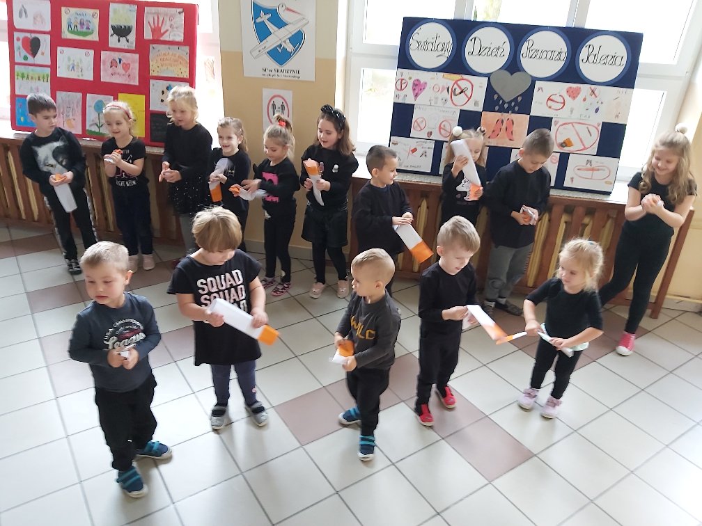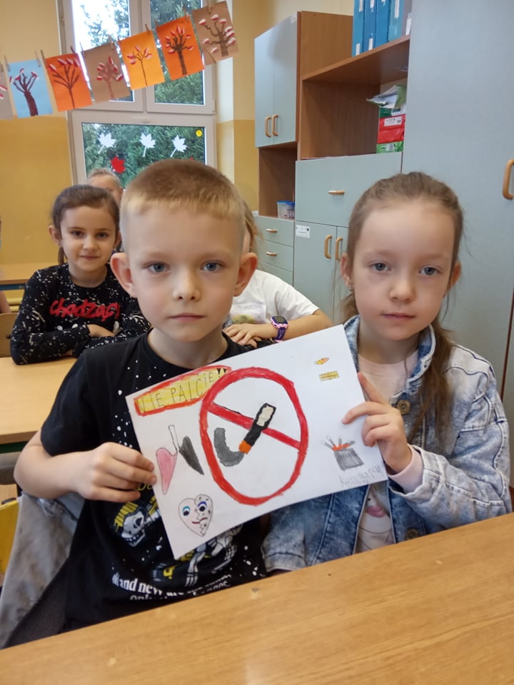 W ramach profilaktyki antytytoniowej 18 listopada 2021r. w oddziale przedszkolnym obchodziliśmy  Światowy Dzień Rzucania Palenia Tytoniu. Tego dnia zostały przeprowadzone zajęcia edukacyjne, podczas których wychowawczynie oraz pielęgniarka szkolna przybliżyły przedszkolakom zagadnienia dotyczące palenia papierosów oraz ich negatywnych skutków. Nie zabrakło też wierszy i piosenek nawiązujących do tego tematu. Podsumowaniem zajęć było symboliczne zniszczenie papierosów wykonanych przez dzieci z  papieru.