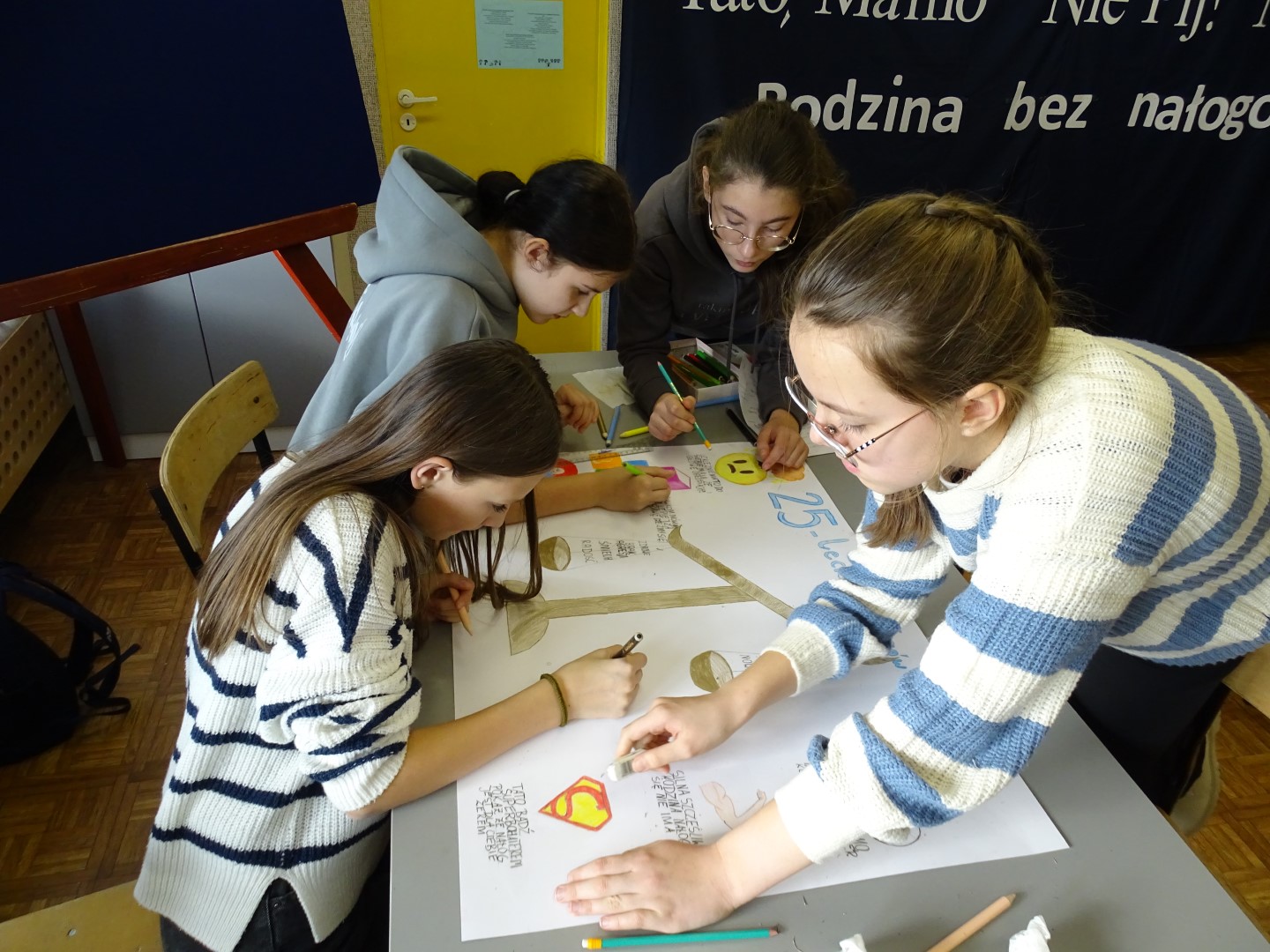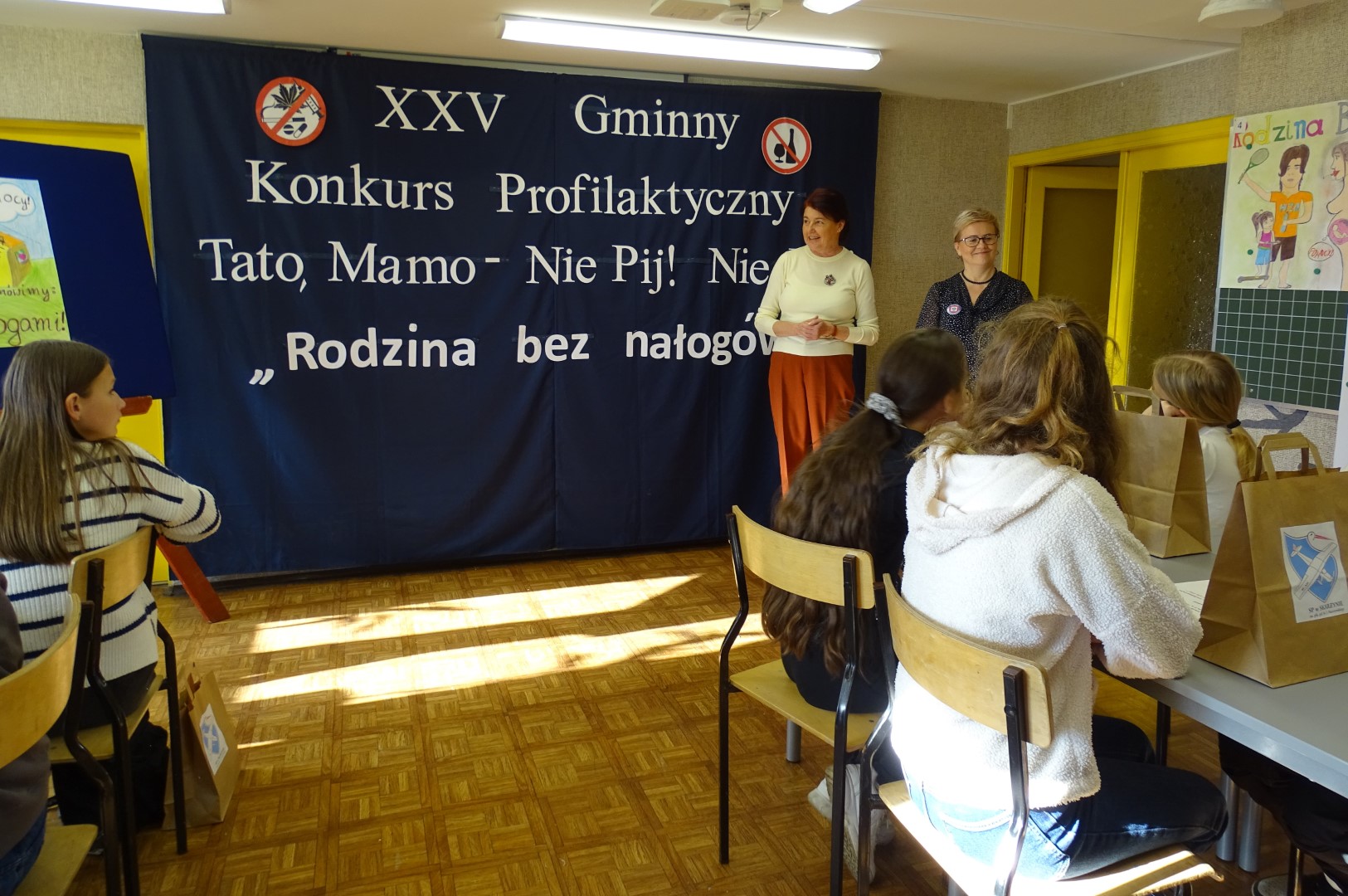 Osobami odpowiedzialnymi za organizację XXV jubileuszowego konkursu były pani Magdalena Czerniak szkolny koordynator programów oświatowo - zdrowotnych i pani Aneta Jesionek – członek Gminnej Komisji ds. Rozwiązywania Problemów Alkoholowych w Kawęczynie oraz panie Milena Mąka i Beata Walasek.