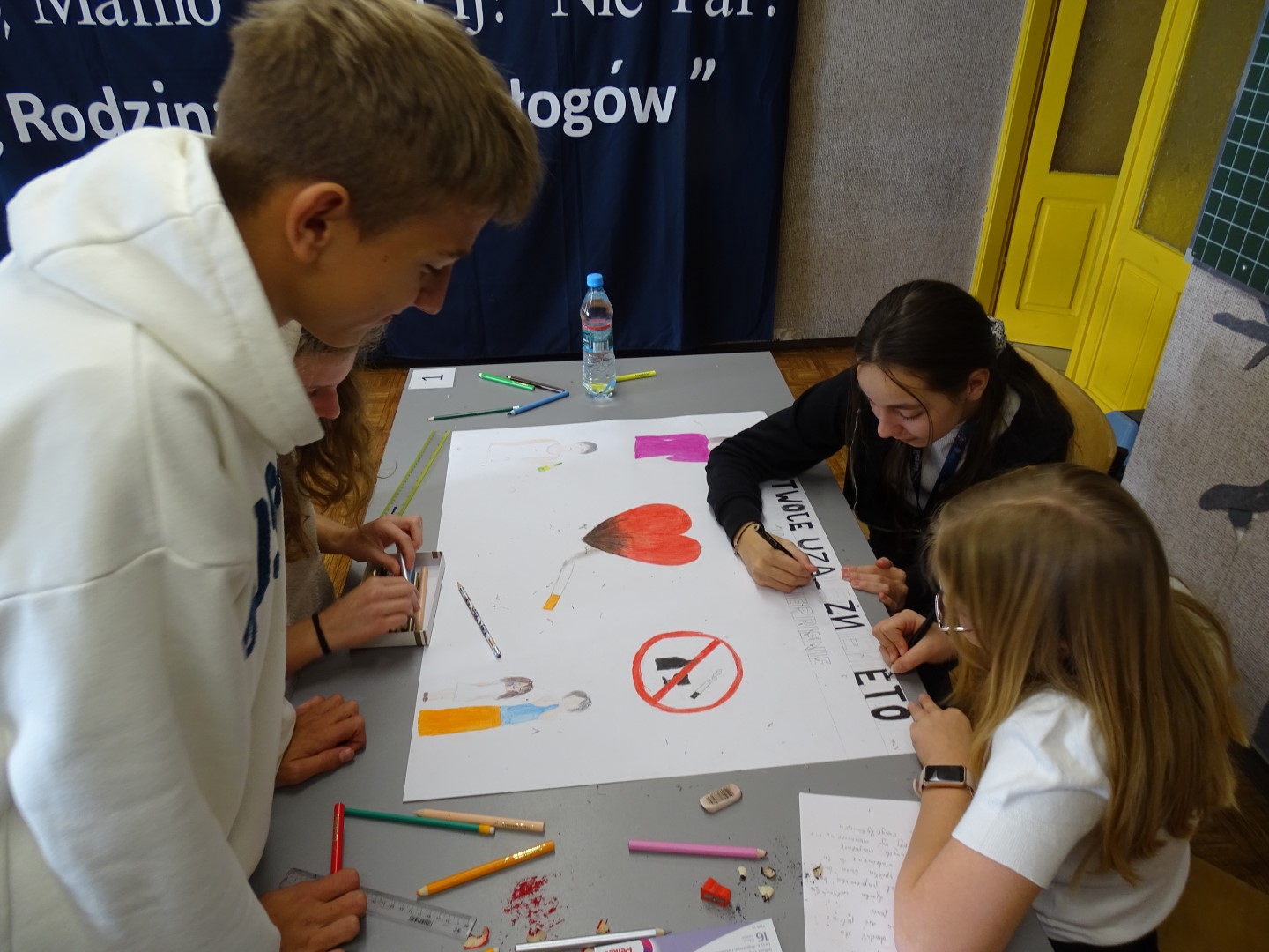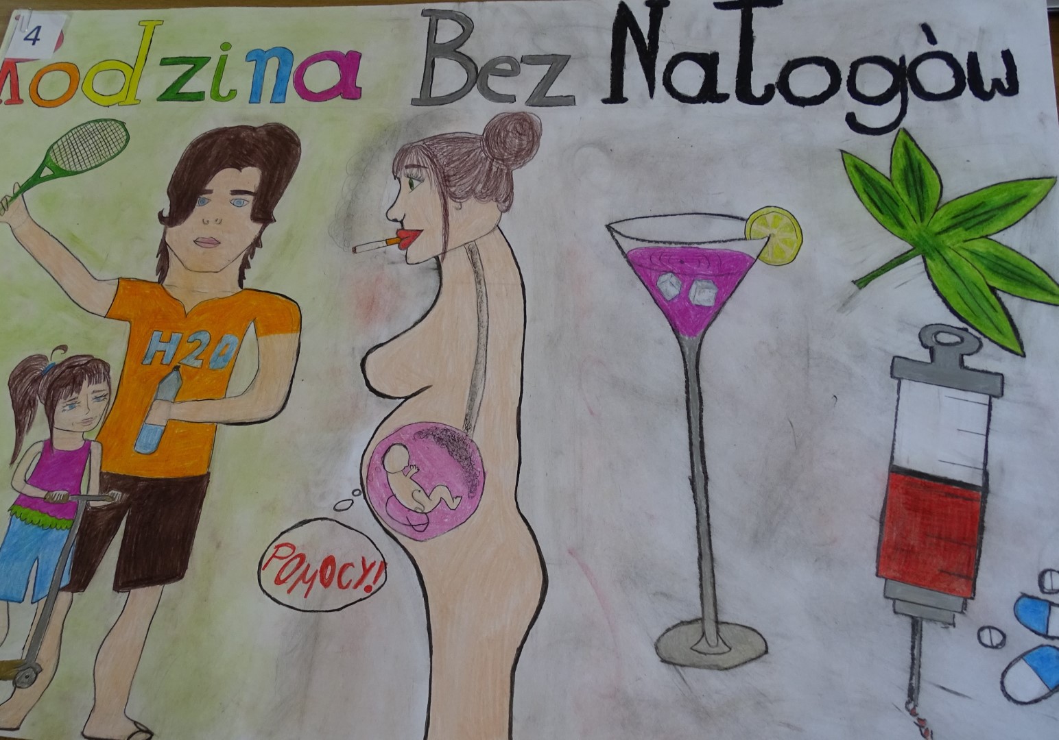 Zadaniem uczestników konkursu było wykonanie pracy plastycznej w formie plakatu do hasła „ Rodzina bez nałogów ”.