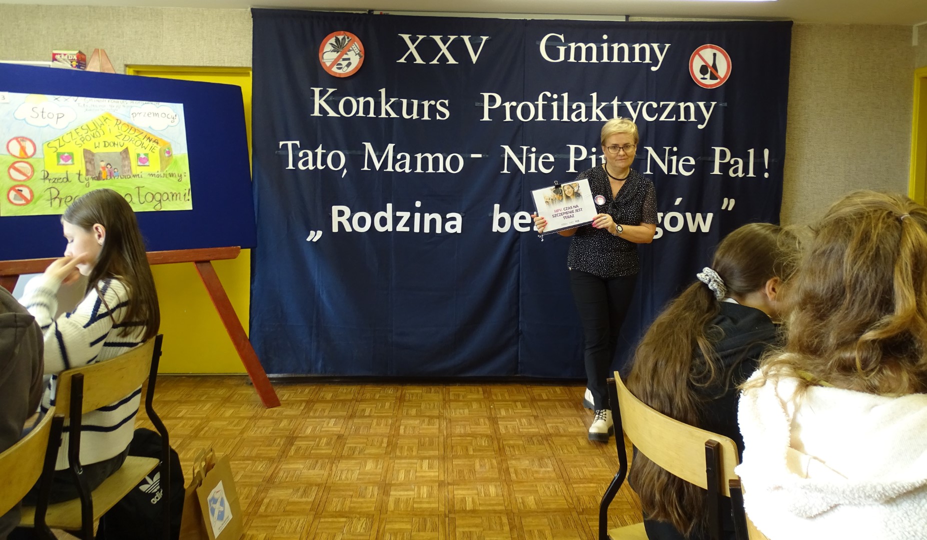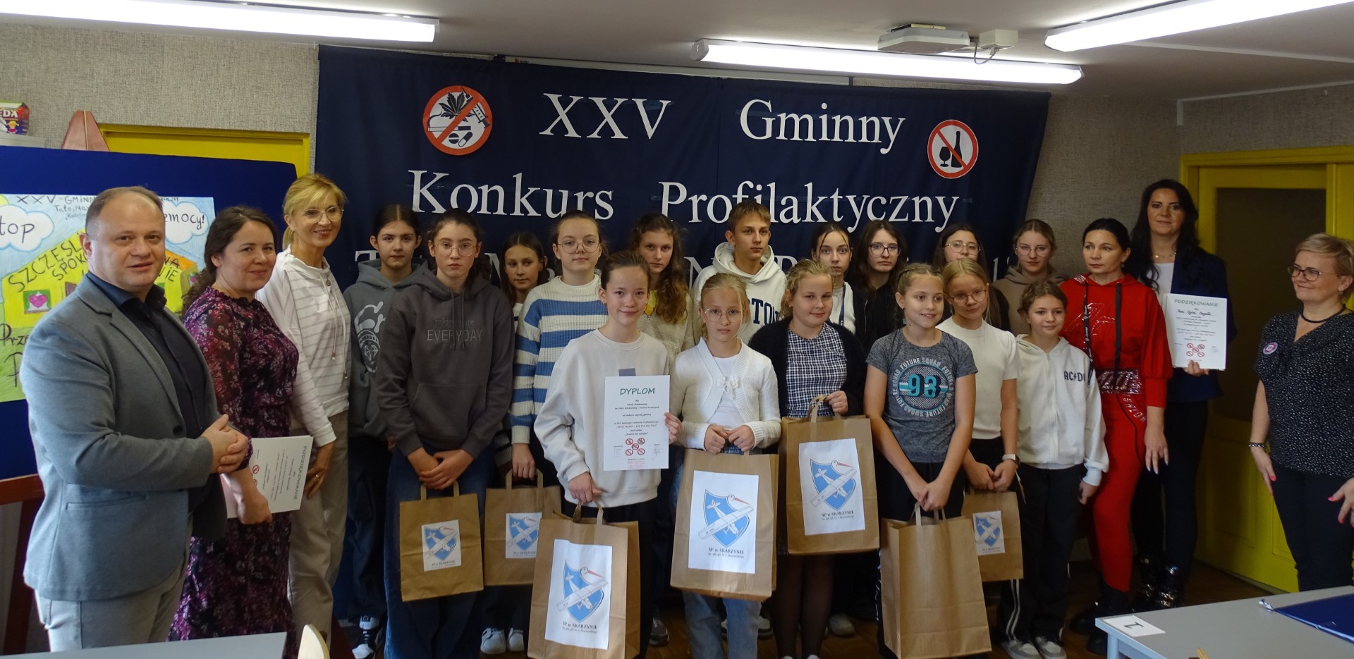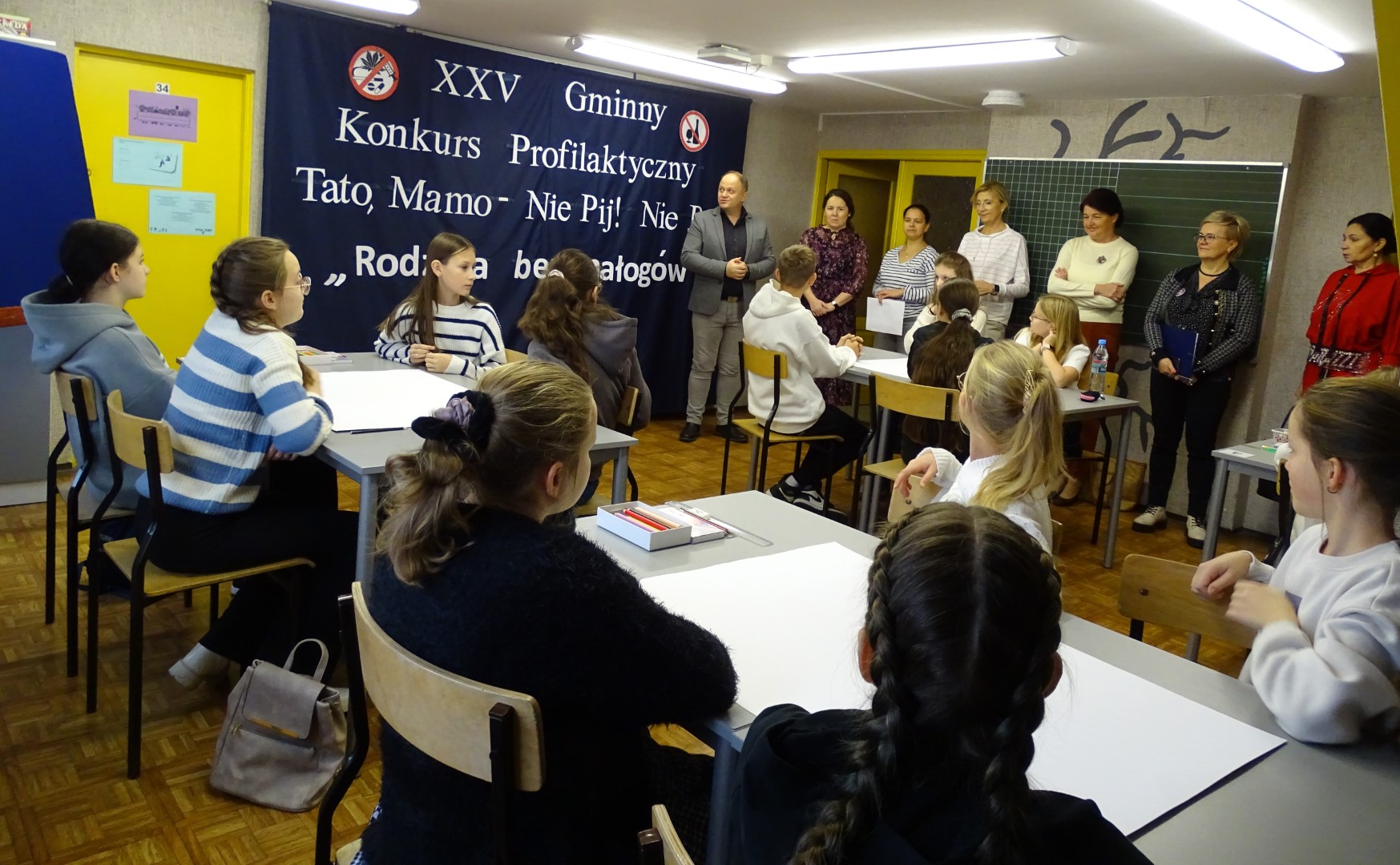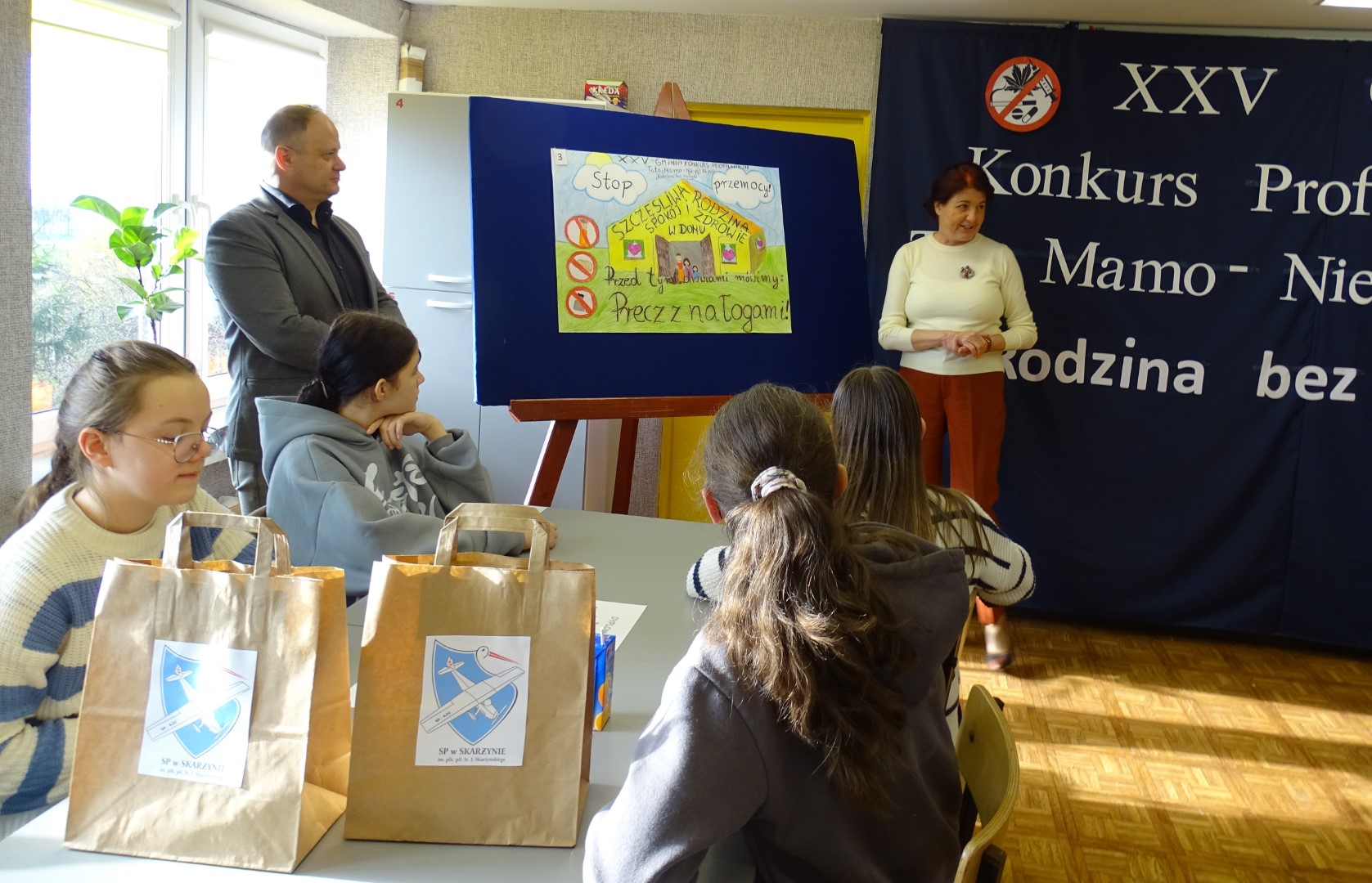 W dniu 21 listopada 2024 roku w Szkole Podstawowej im. płk. Pil. St. J. Skarżyńskiego w Skarżynie odbył się jubileuszowy XXV Gminny Konkurs Profilaktyczny „TATO, MAMO – NIE PIJ! NIE PAL!”- pod hasłem ,,Rodzina bez nałogów!’’. Do udziału w konkursie przystąpili uczniowie z klas od V do VIII ze wszystkich placówek oświatowych z terenu Gminy Kawęczyn.