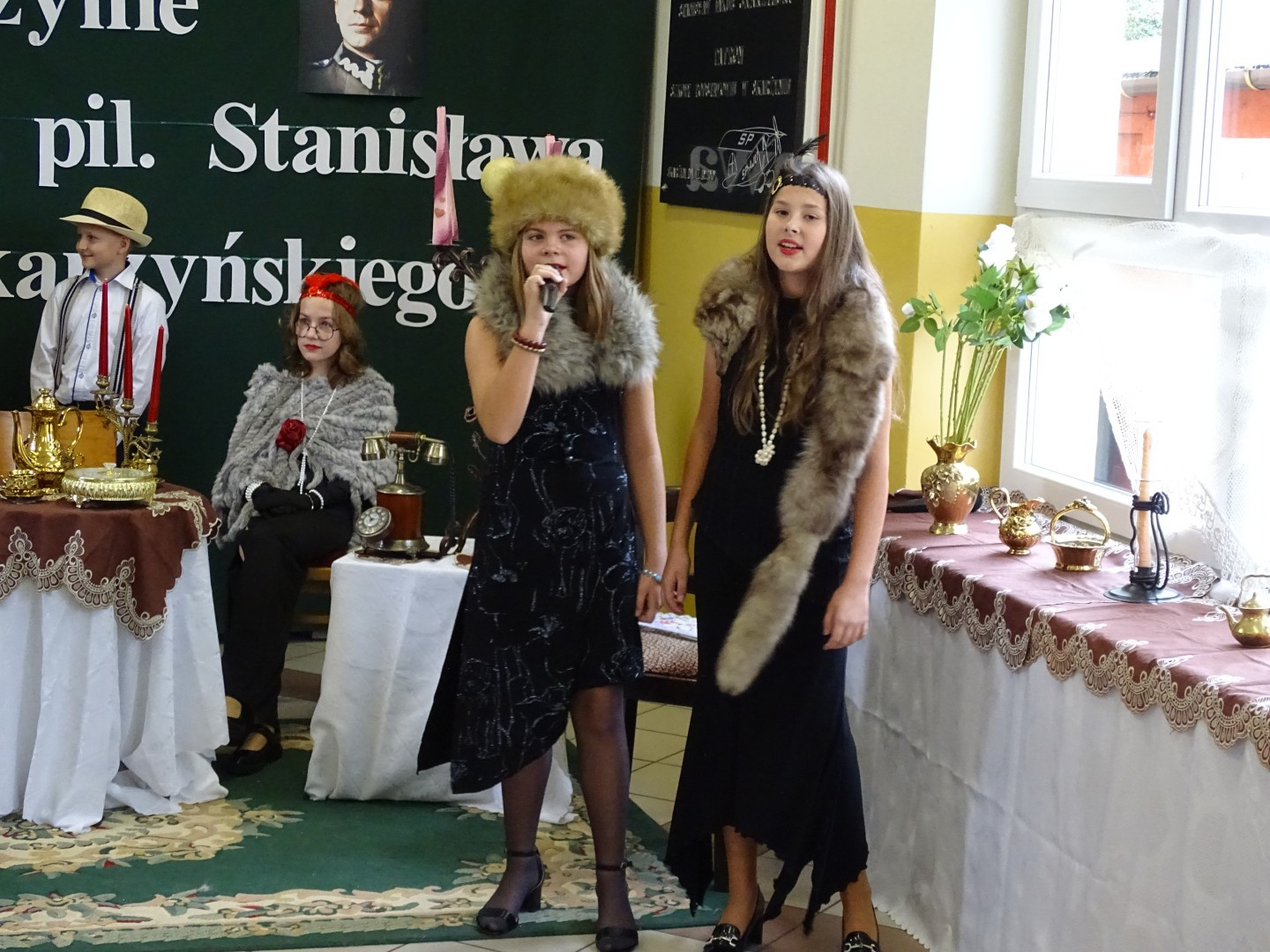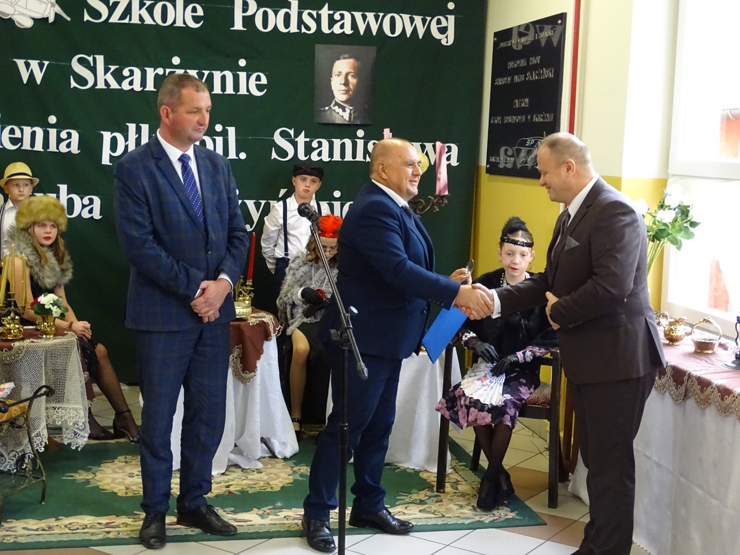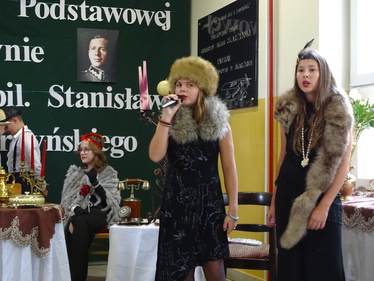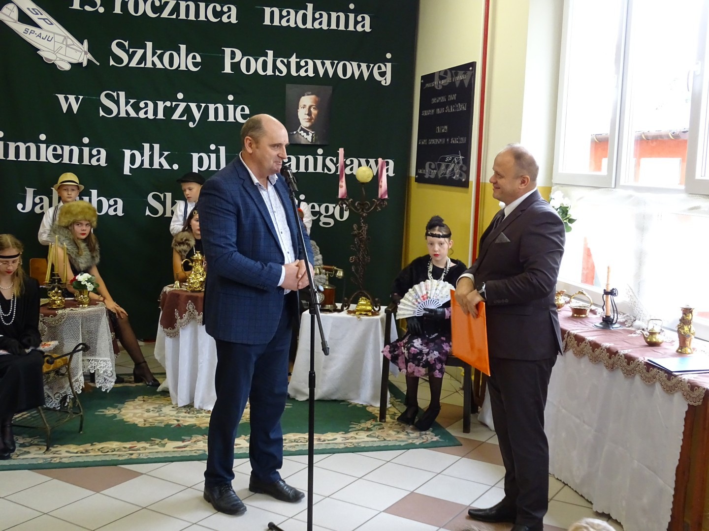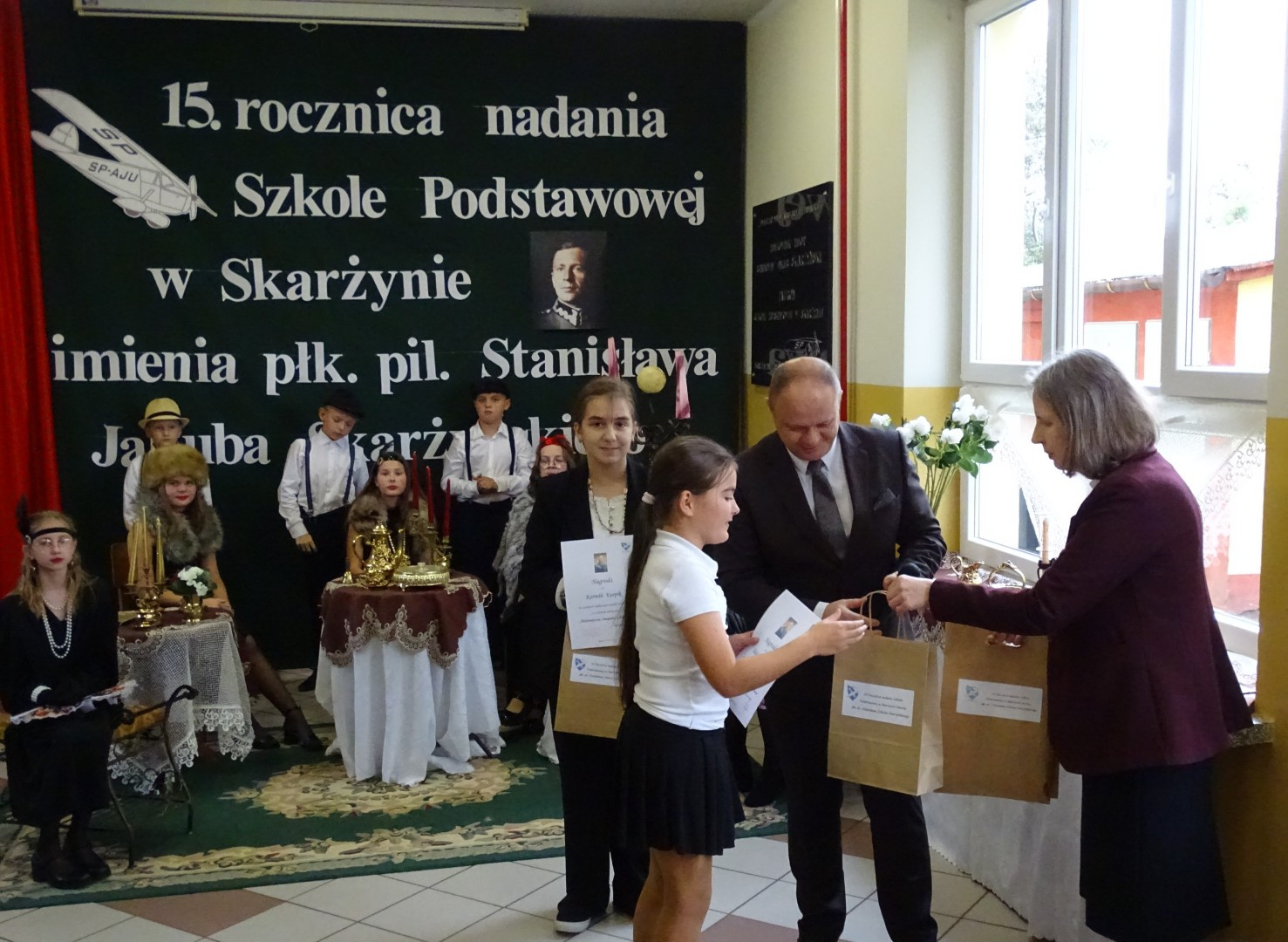 Kulminacyjnym punktem uroczystości była część artystyczna pt. „Śladami naszego Patrona” w wykonaniu uczniów klasy V przygotowana przez p. Angelikę Dzikowską. Barwna, słowno – muzyczna inscenizacja przedstawiająca scenki z życia Stanisława Jakuba Skarżyńskiego zaprosiła widzów do klimatycznej kawiarni dwudziestolecia międzywojennego i została nagrodzona gromkimi brawami.