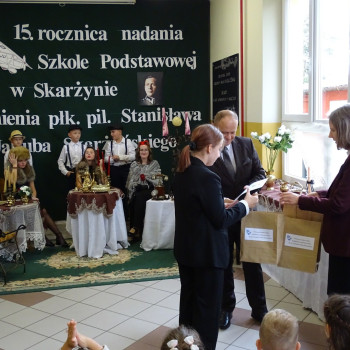 Doskonałą nagrodą za trud i serce włożone w przygotowanie uroczystości, z pewnością były słowa uznania i podziękowania kierowane przez zaproszonych gości: p. Jana Grucę – Wójta Gminy Kawęczyn, p. Jana Nowaka – byłego Wójta Gminy Kawęczyn oraz p. Marię Antoszczyk – byłą dyrektor naszej szkoły pod adresem wszystkich tych którzy przyczynili się do organizacji obchodów 15-lecia nadania imienia szkole.