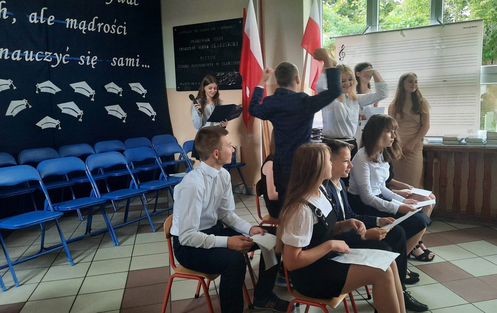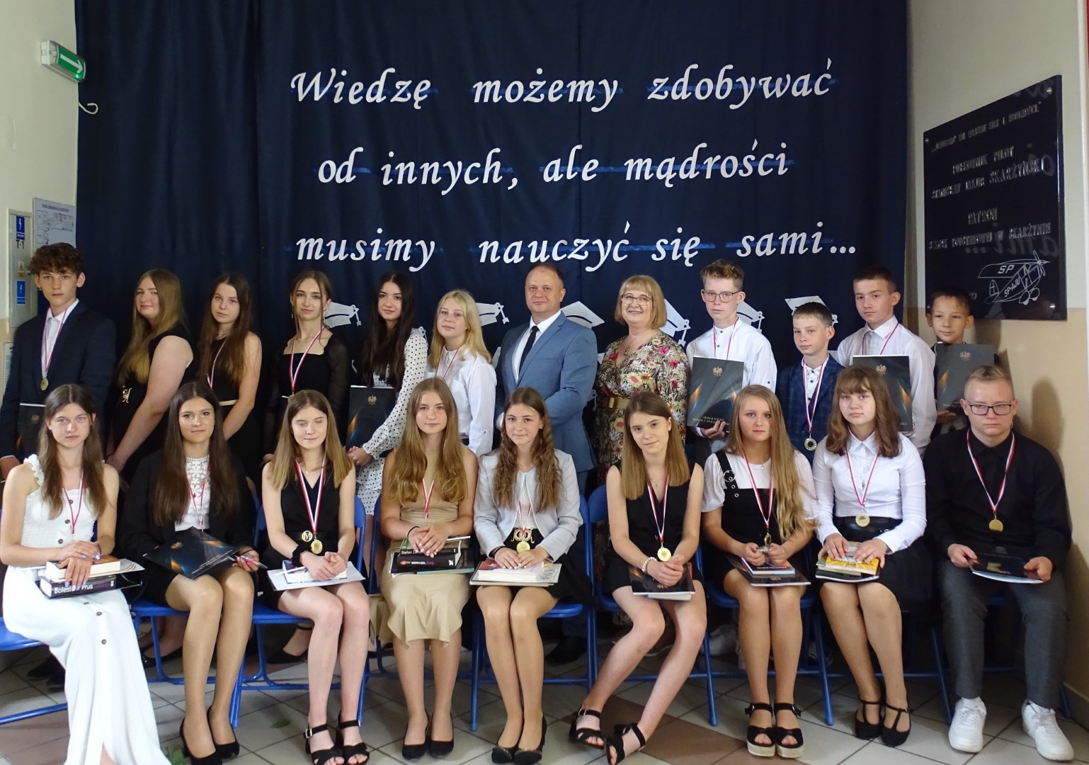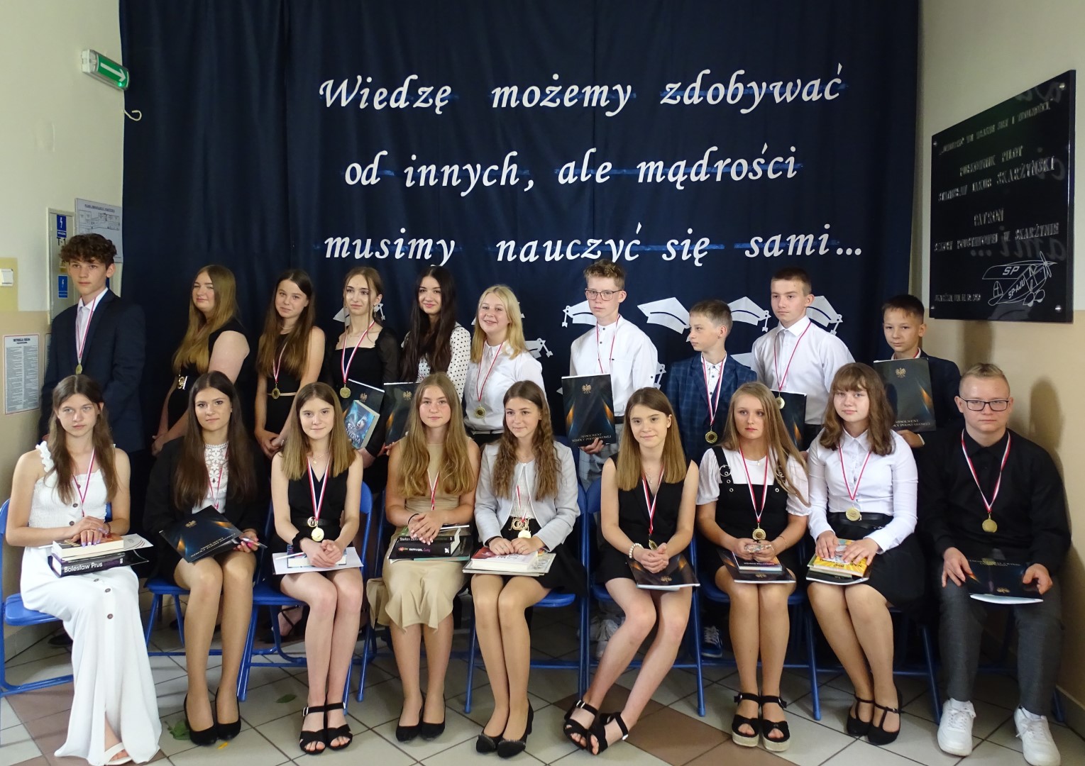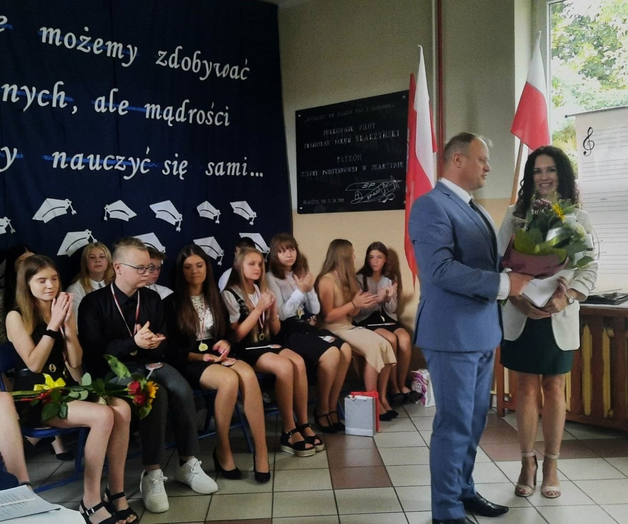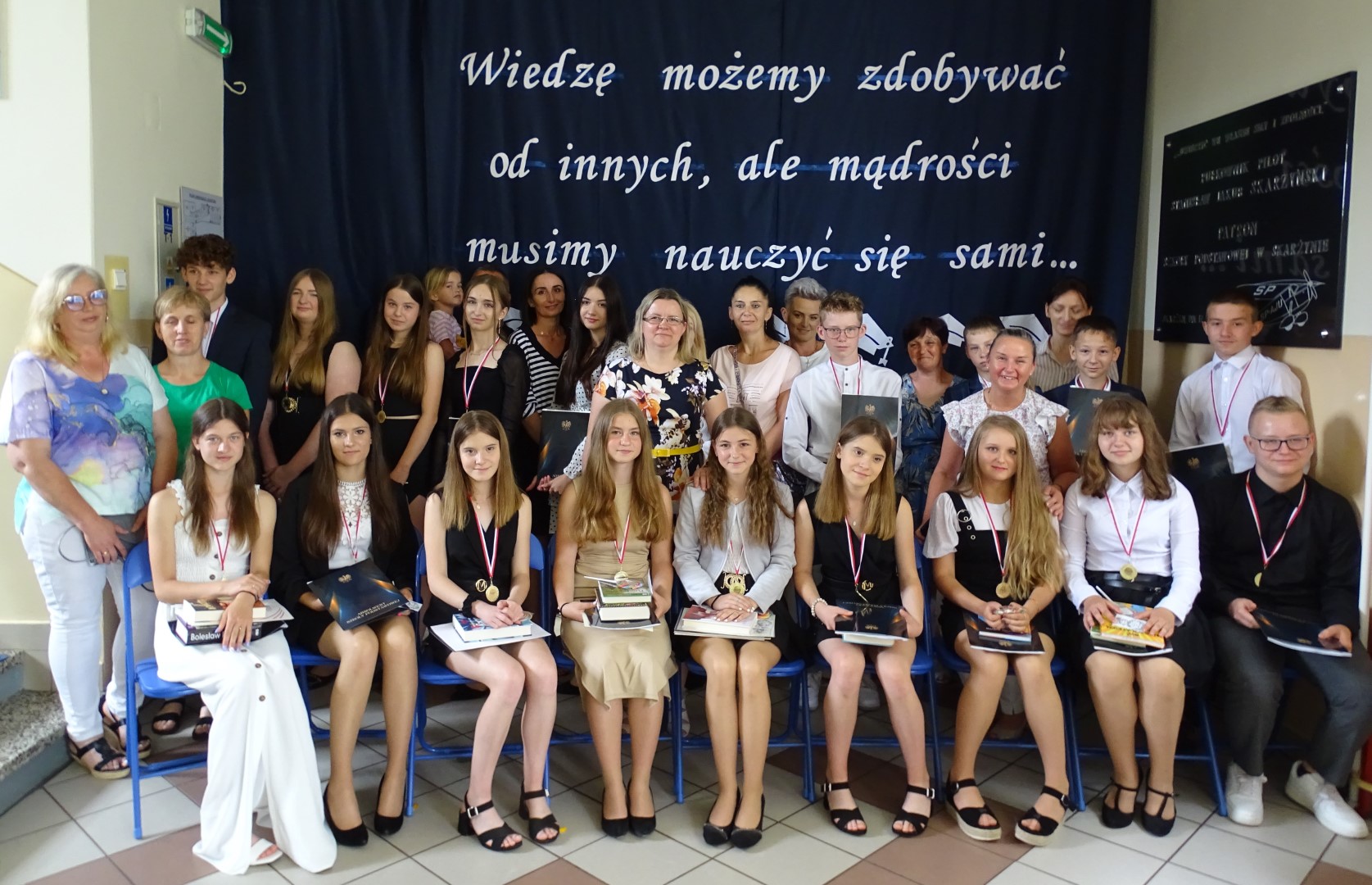 „Wiedzę możemy zdobywać od innych, ale mądrości musimy nauczyć się sami” pod takim hasłem 23 czerwca 2023 roku w Szkole Podstawowej im. płk. pil. St. J. Skarżyńskiego w Skarżynie odbyło się uroczyste zakończenie roku szkolnego, połączone z pożegnaniem uczniów klasy VIII. Uroczystość poprzedziła msza święta odprawiona w kościele parafialnym pw. Św, Katarzyny i Matki Bożej Pocieszenia w Przespolewie.