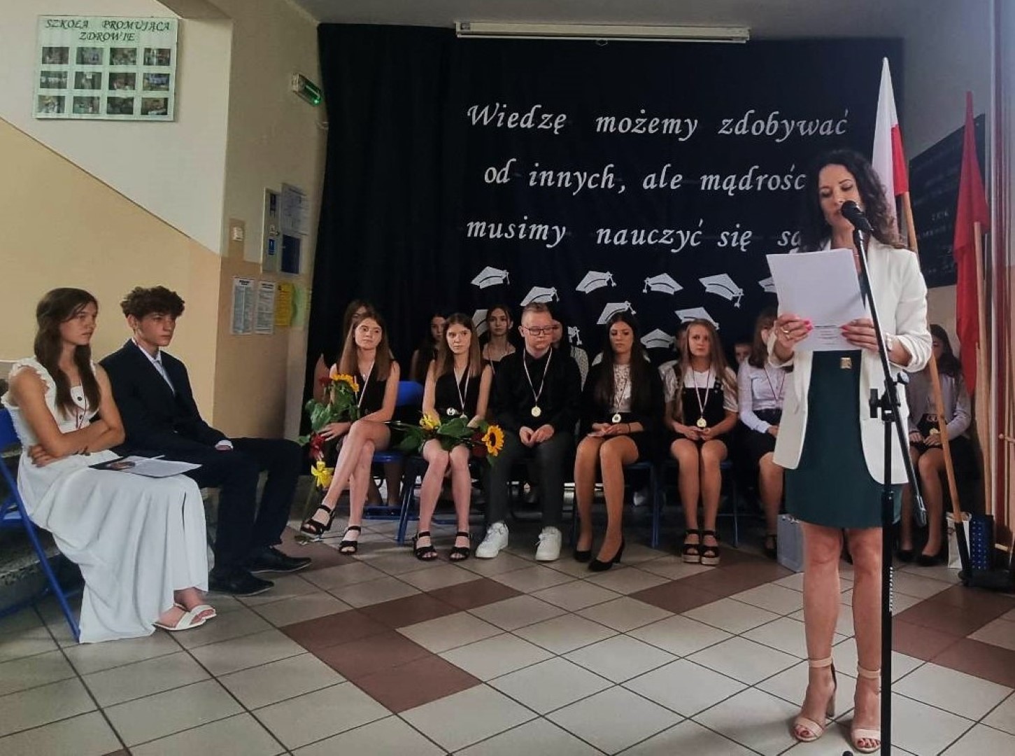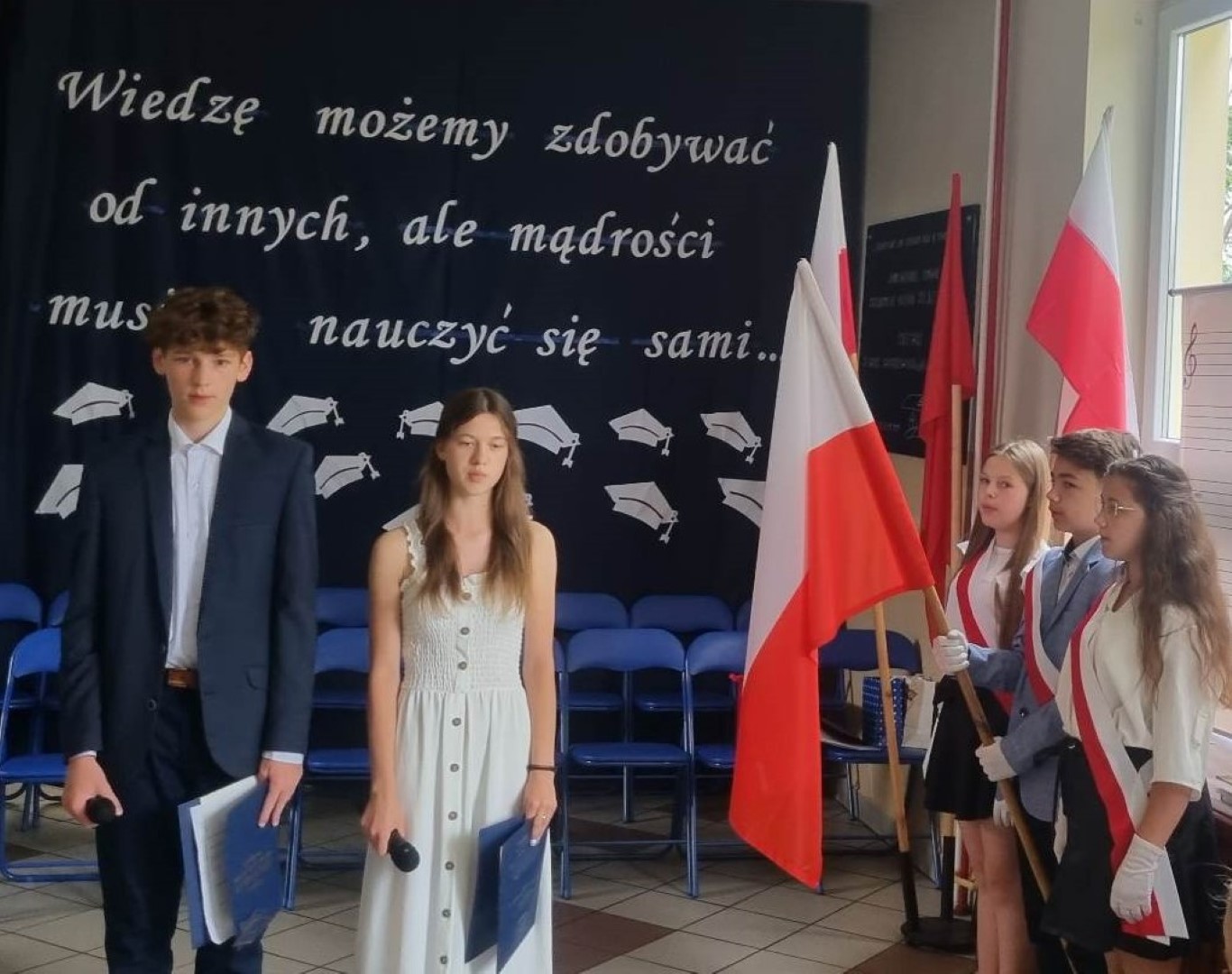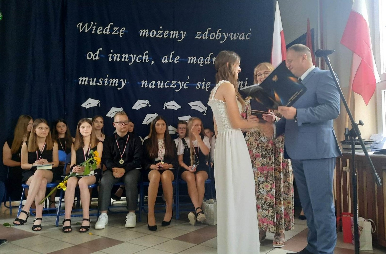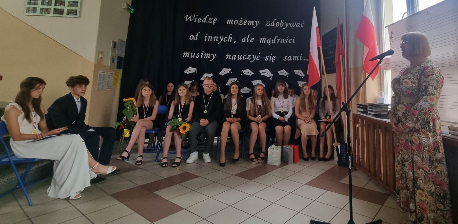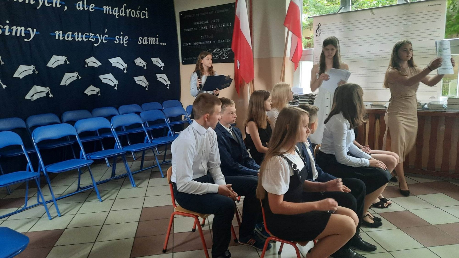 „Wiedzę możemy zdobywać od innych, ale mądrości musimy nauczyć się sami” pod takim hasłem 23 czerwca 2023 roku w Szkole Podstawowej im. płk. pil. St. J. Skarżyńskiego w Skarżynie odbyło się uroczyste zakończenie roku szkolnego, połączone z pożegnaniem uczniów klasy VIII. Uroczystość poprzedziła msza święta odprawiona w kościele parafialnym pw. Św, Katarzyny i Matki Bożej Pocieszenia w Przespolewie.
