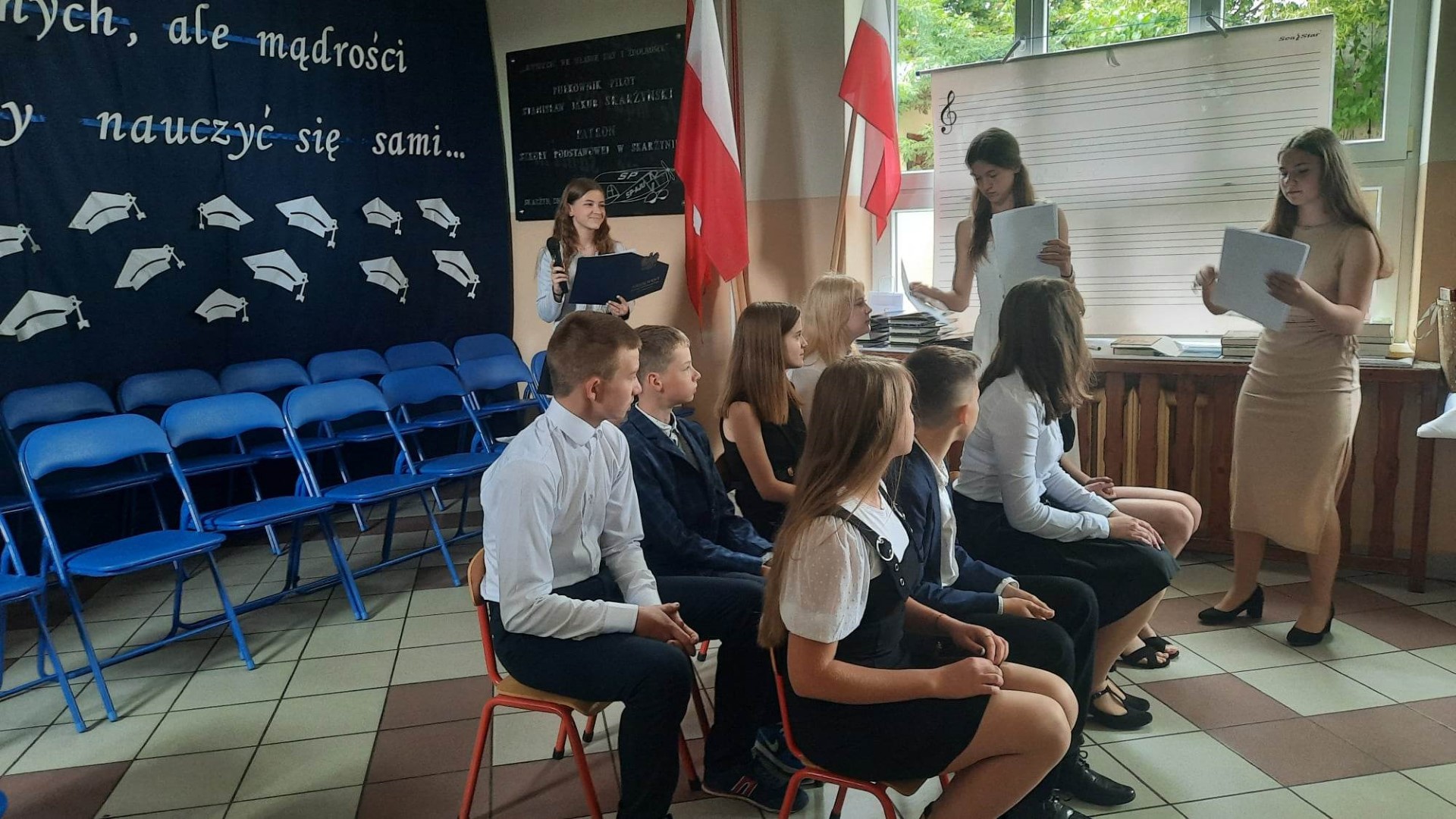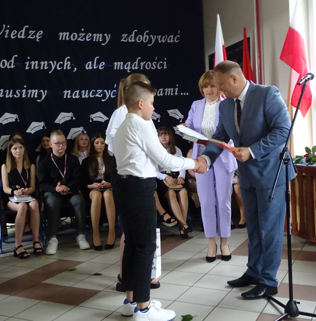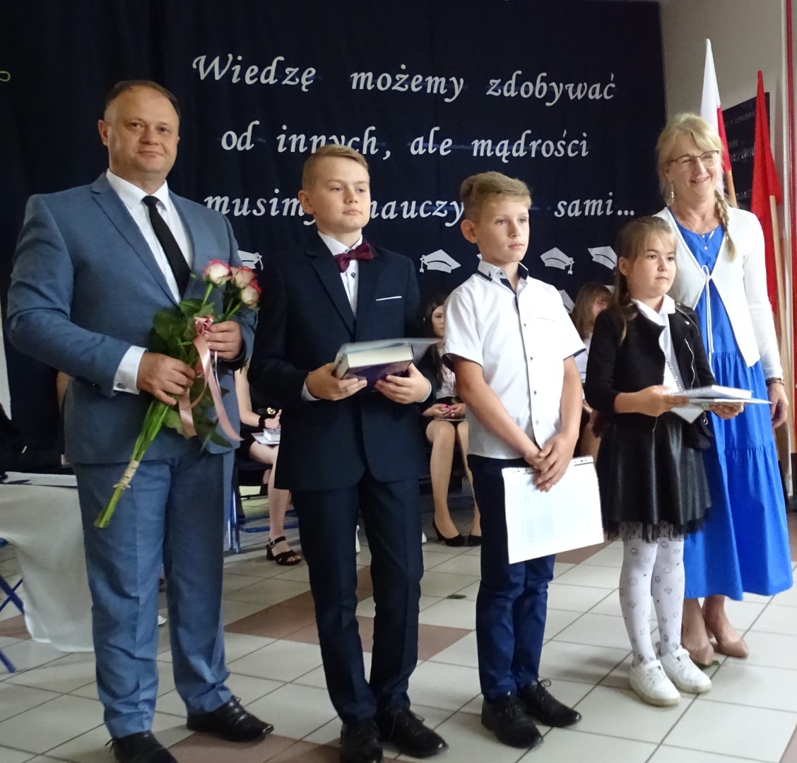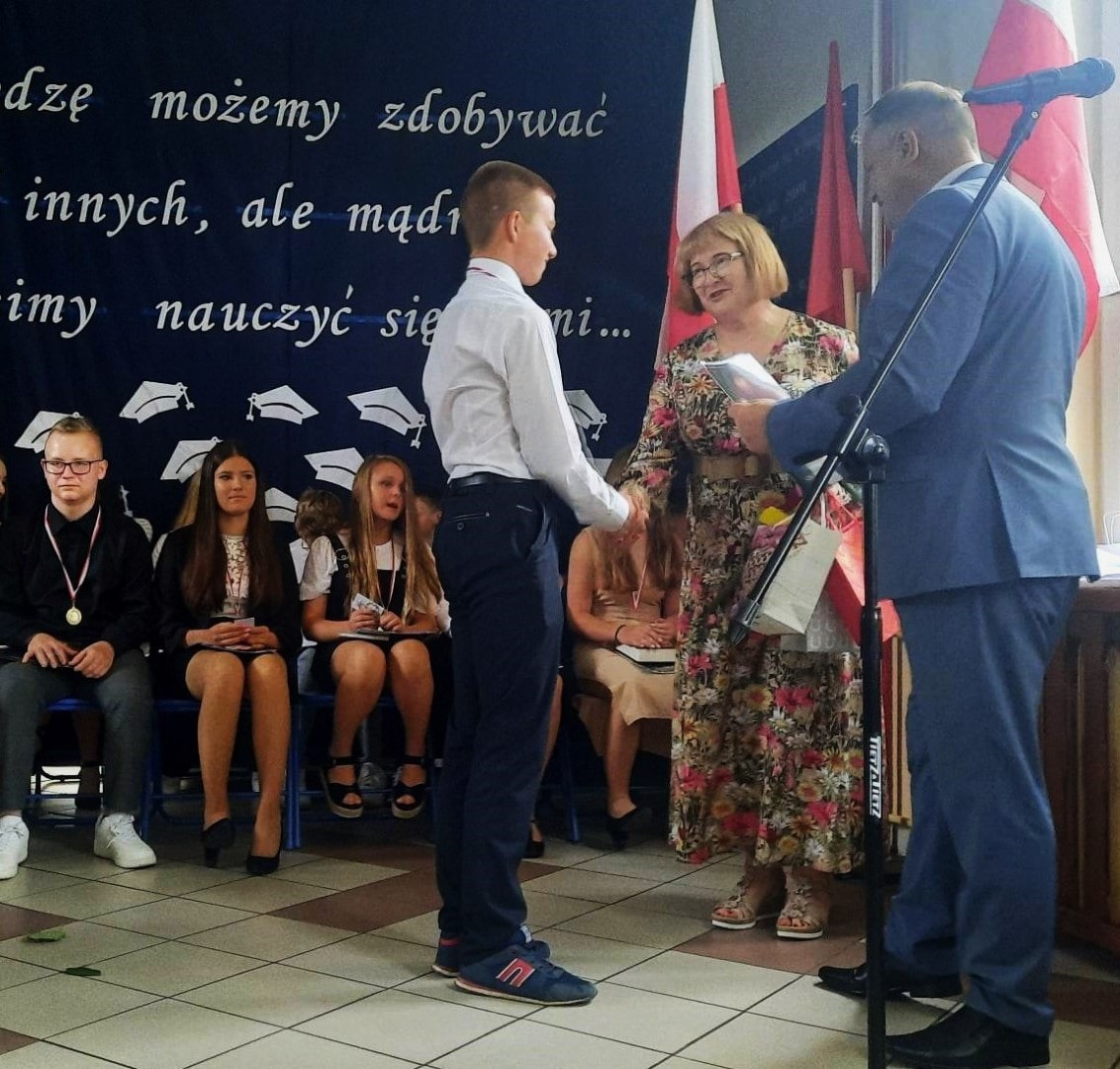 Dumni rodzice nagrodzonych uczniów otrzymali listy gratulacyjne. Pozostali uczniowie klasy ósmej otrzymali świadectwa oraz tytuł absolwenta Szkoły Podstawowej im. płk. pil. St. J. Skarżyńskiego w Skarżynie wraz z najlepszymi życzeniami. Ceremonii wręczenia dokonał dyrektor szkoły wraz z wychowawczynią klasy ósmej.