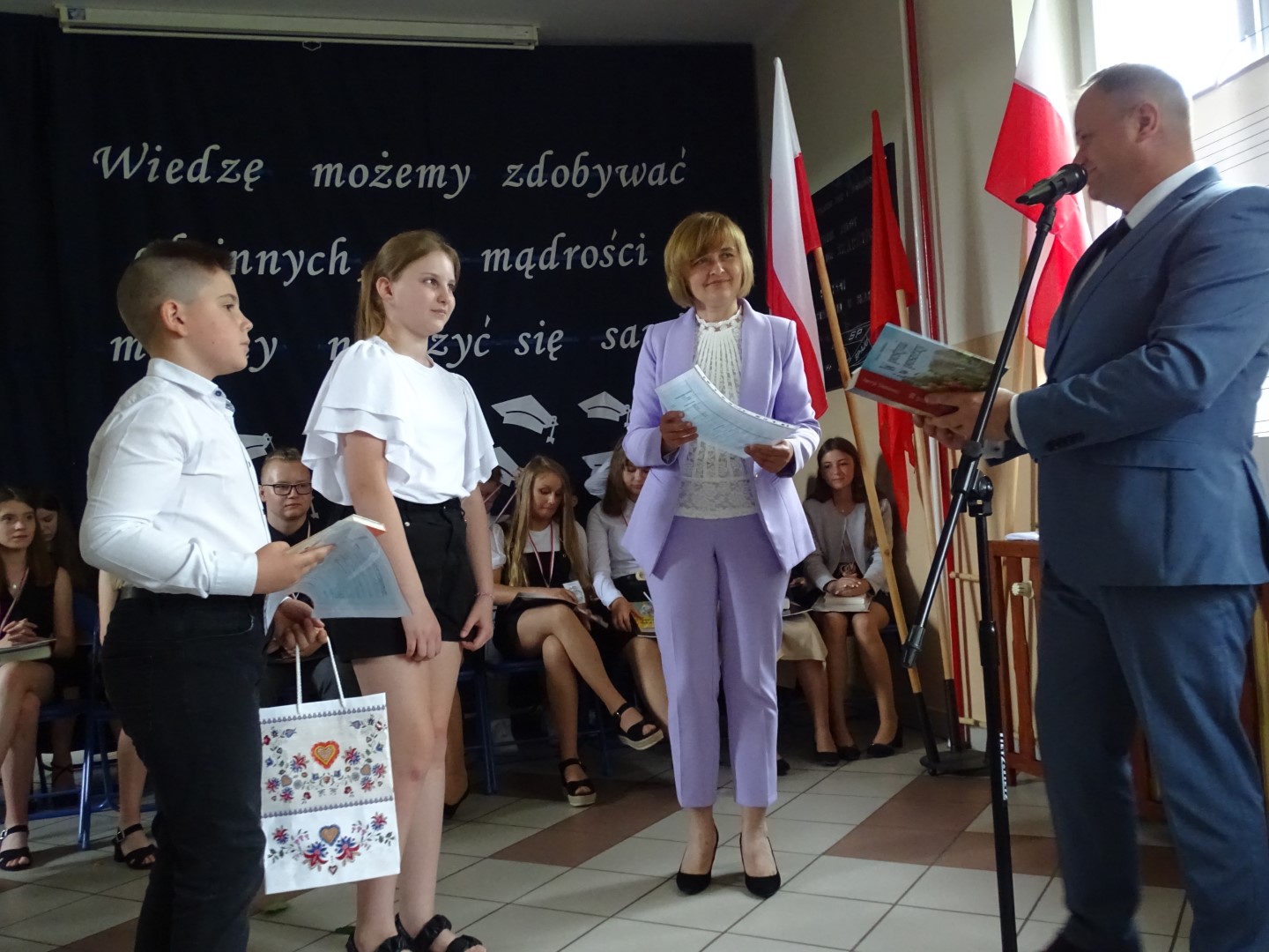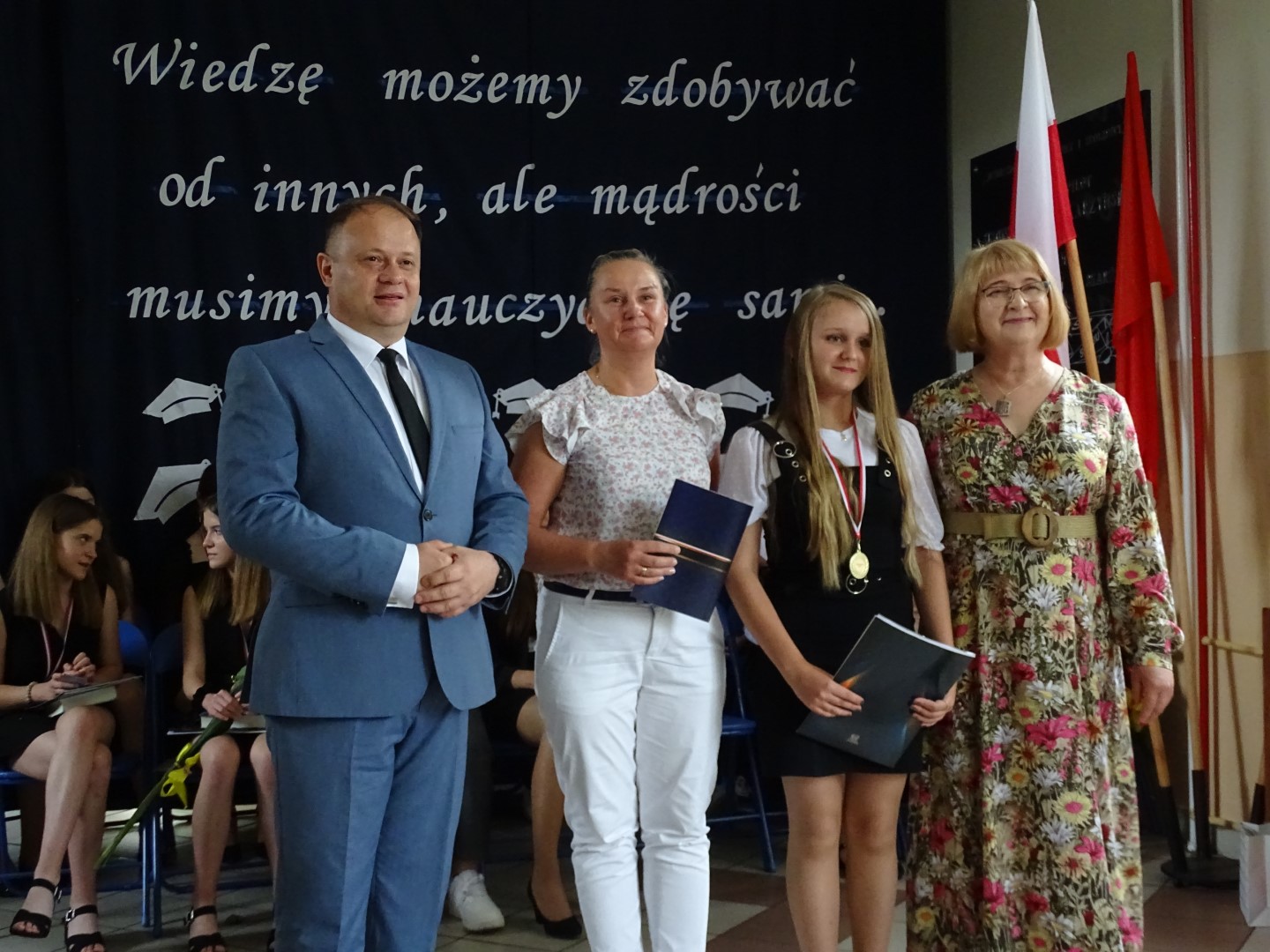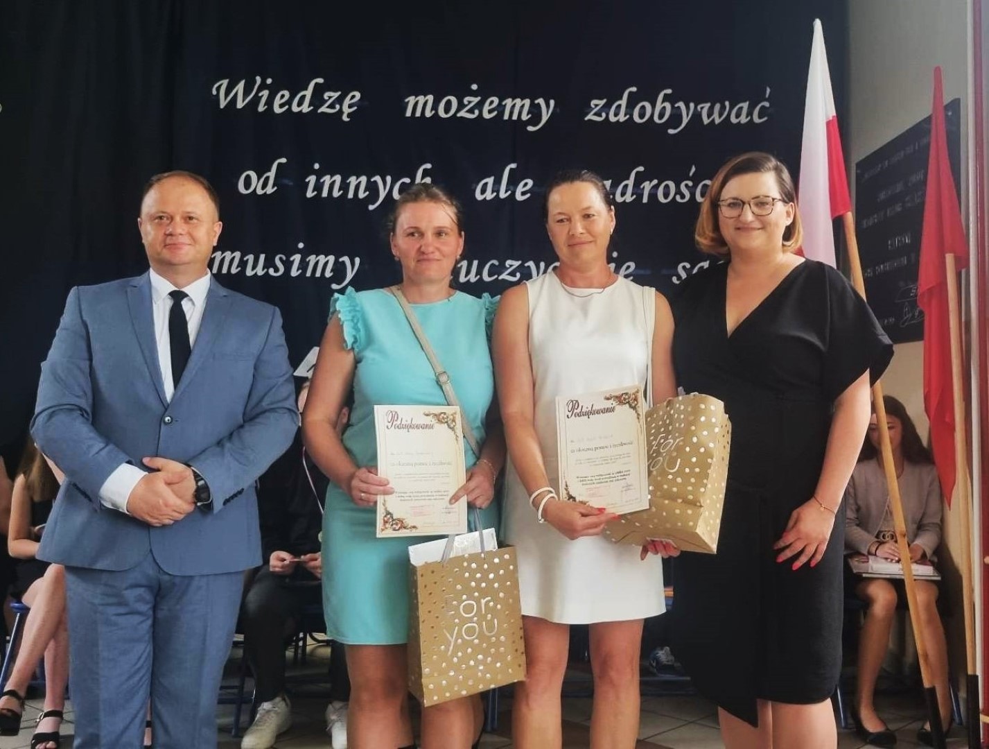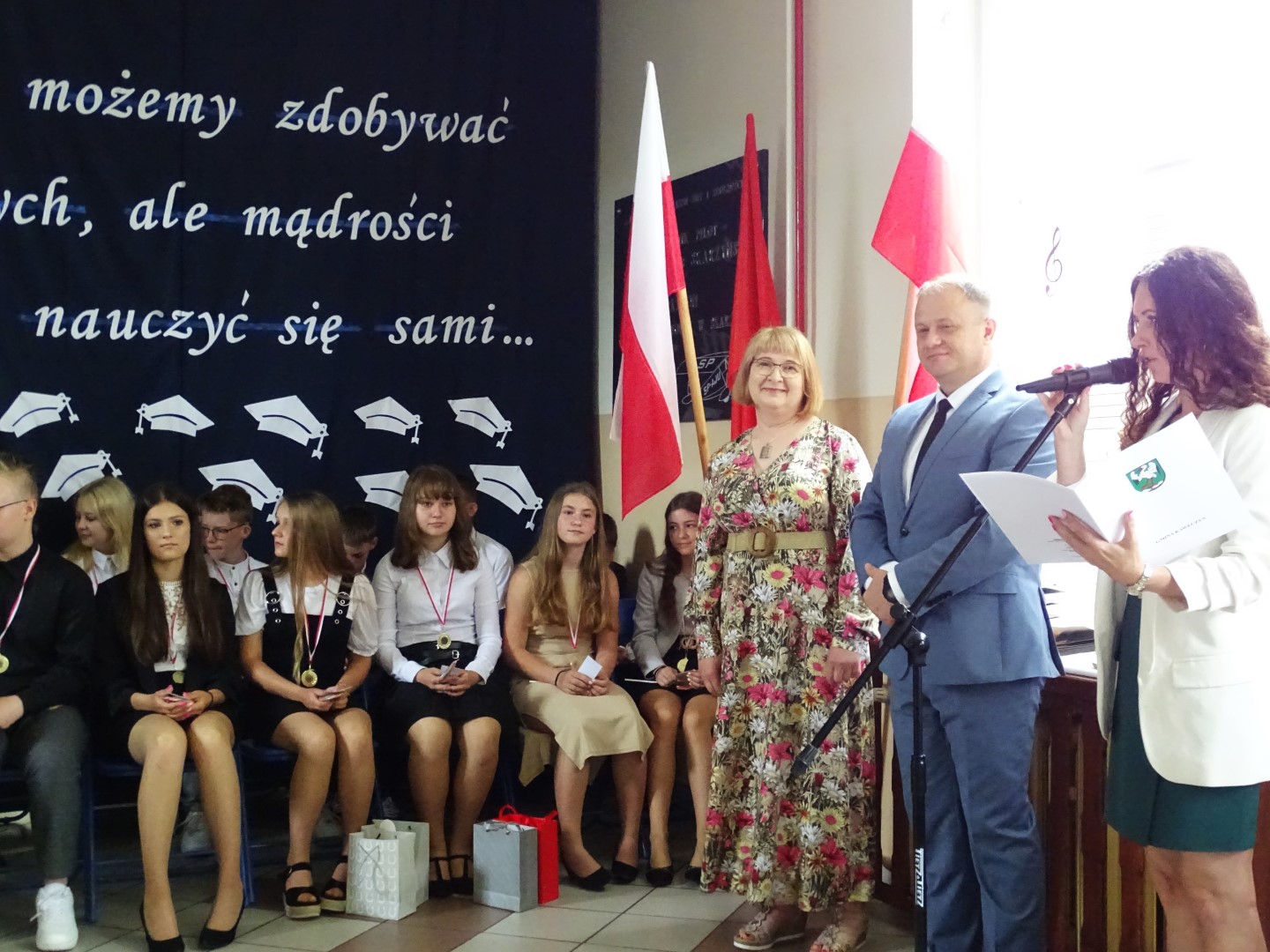 Dumni rodzice nagrodzonych uczniów otrzymali listy gratulacyjne. Pozostali uczniowie klasy ósmej otrzymali świadectwa oraz tytuł absolwenta Szkoły Podstawowej im. płk. pil. St. J. Skarżyńskiego w Skarżynie wraz z najlepszymi życzeniami. Ceremonii wręczenia dokonał dyrektor szkoły wraz z wychowawczynią klasy ósmej.
