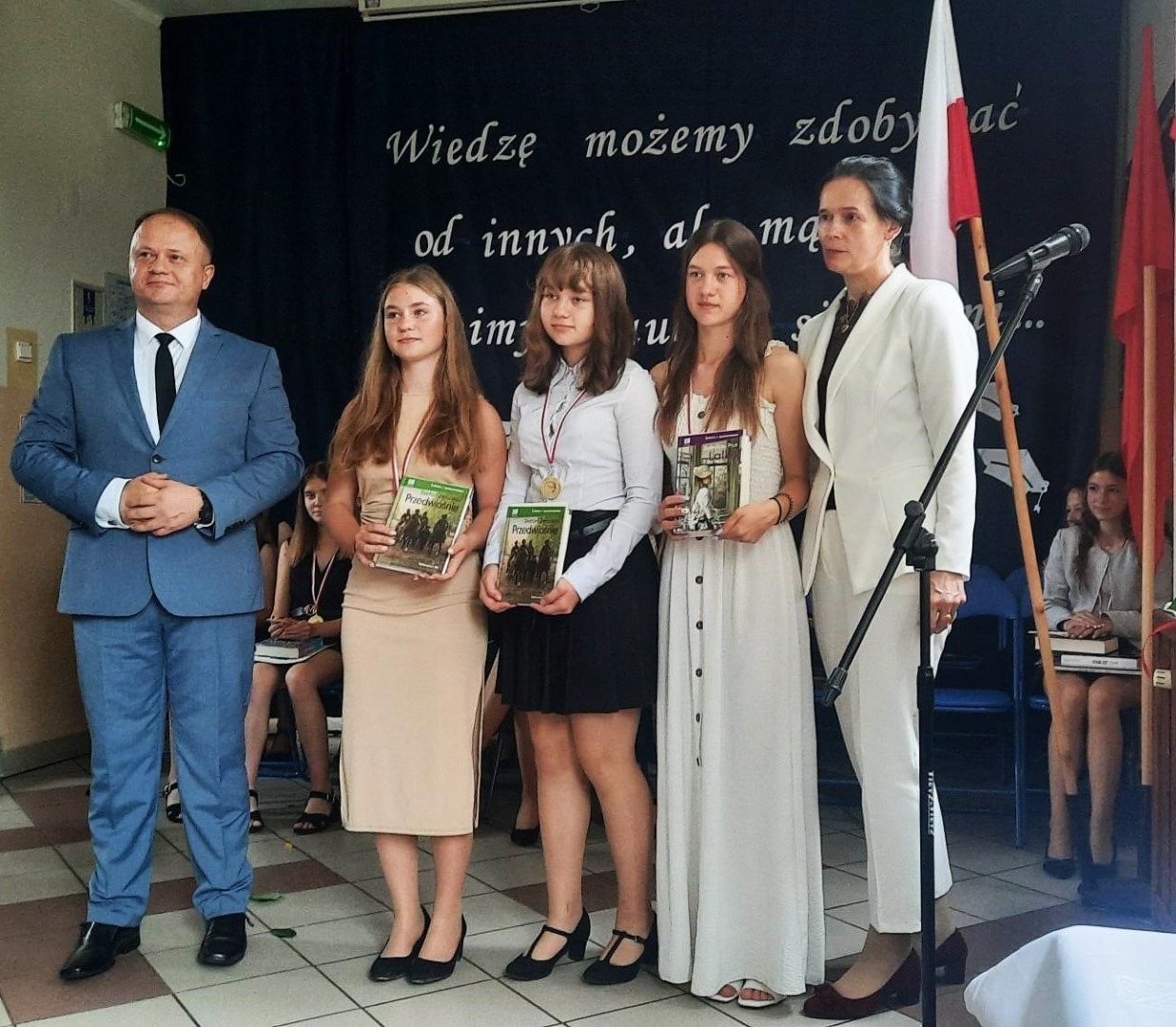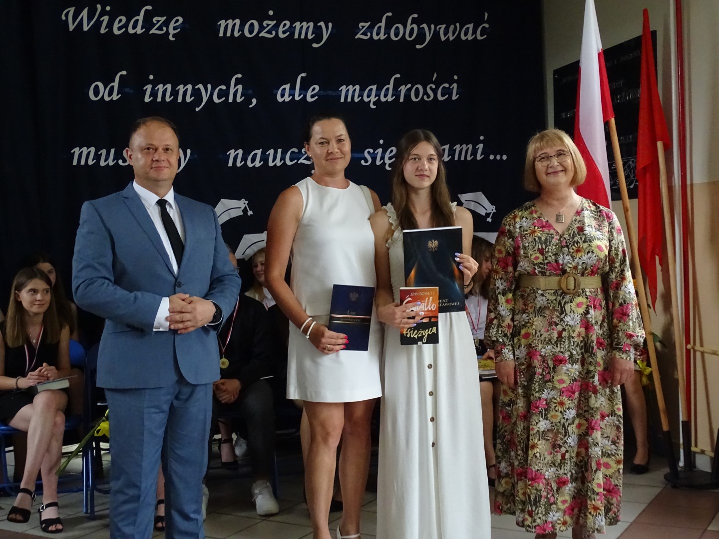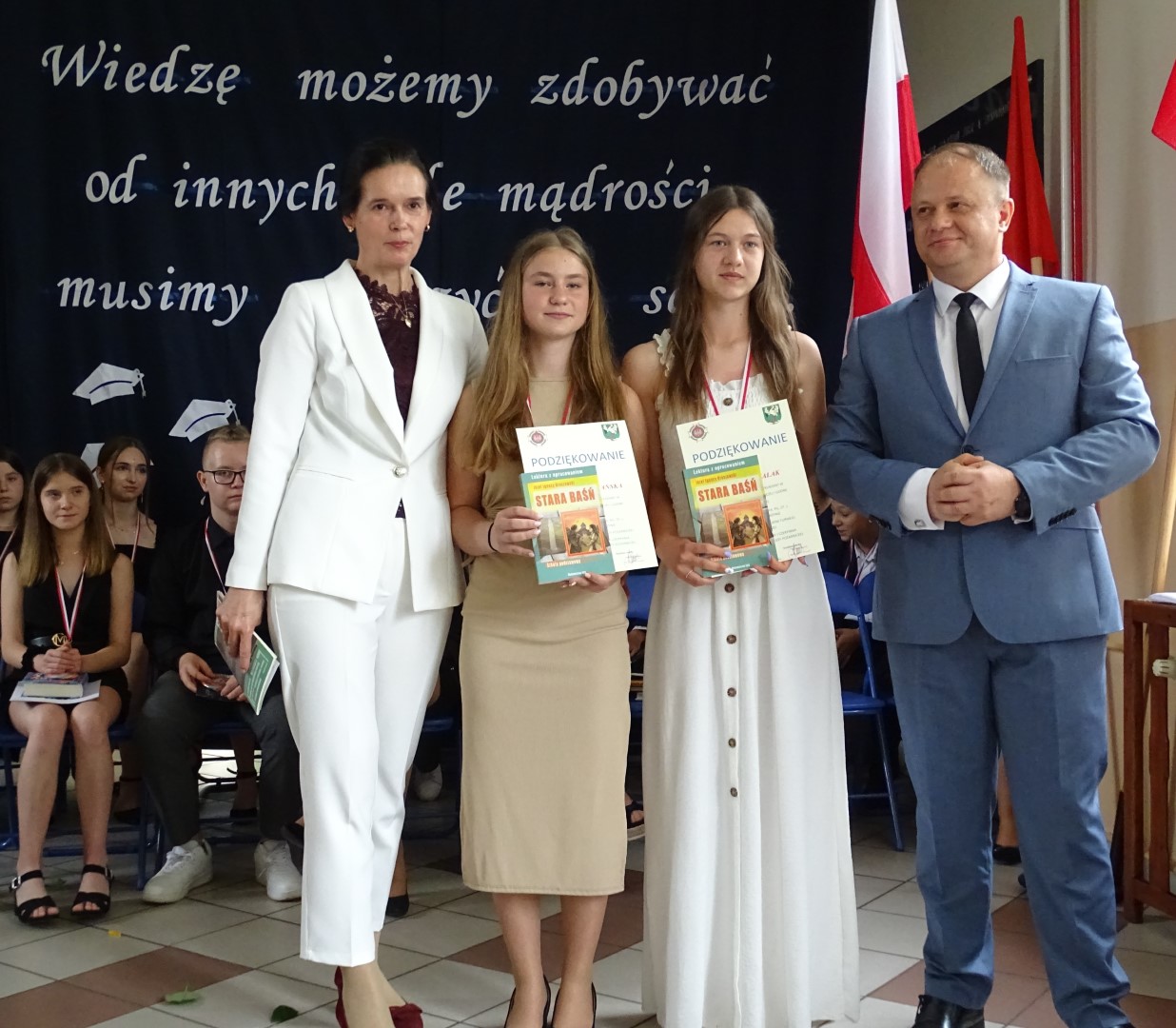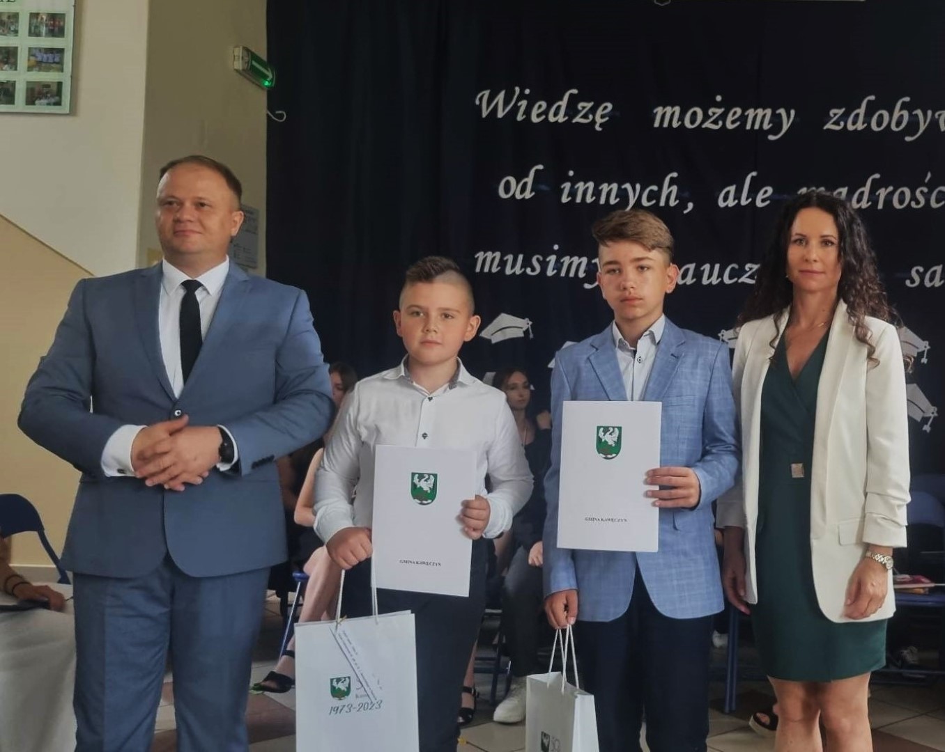 Dumni rodzice nagrodzonych uczniów otrzymali listy gratulacyjne. Pozostali uczniowie klasy ósmej otrzymali świadectwa oraz tytuł absolwenta Szkoły Podstawowej im. płk. pil. St. J. Skarżyńskiego w Skarżynie wraz z najlepszymi życzeniami. Ceremonii wręczenia dokonał dyrektor szkoły wraz z wychowawczynią klasy ósmej.