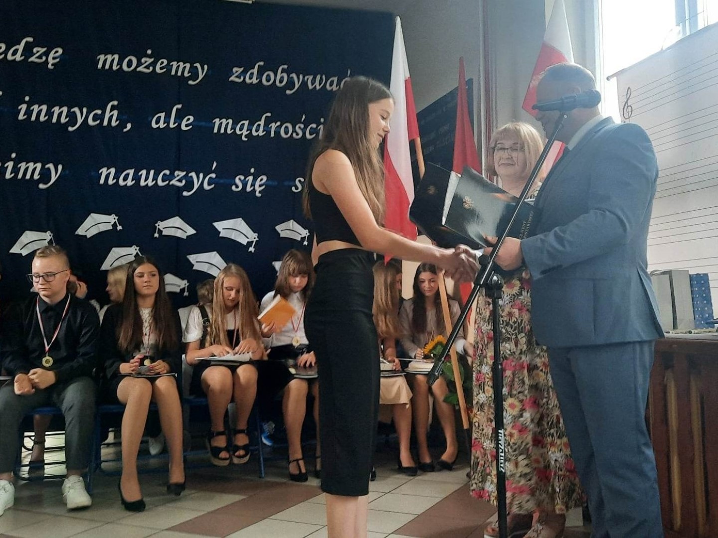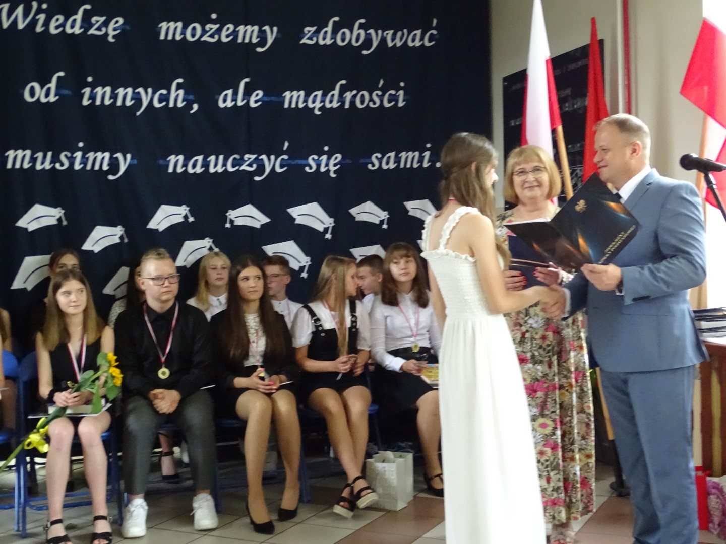 Na zakończenie został wyświetlony krótki film ’’Za nami osiem lat nauki’’ przygotowany przez absolwentkę Kingę Błaszczyk.